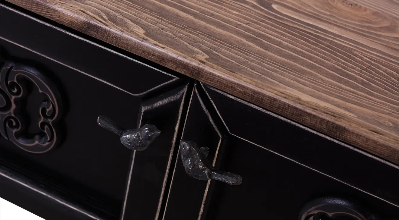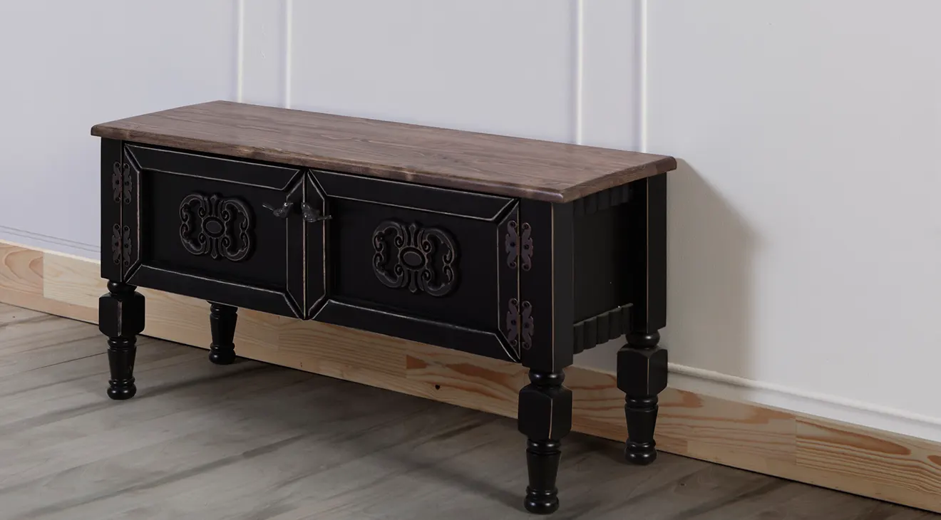 Ada Mini TV Sehpası, masif görünümlü ahşap kapak çerçeveleri, kabartma motifleri ve döner ayaklarıyla vintage bir şıklık sunar. Kompakt yapısı küçük salon ve genç odalarında televizyon, uydu alıcısı/oyun konsolu ve aksesuarlar için düzenli bir alan oluşturur. Üst tabla günlük kullanıma dayanıklıdır; çift kapaklı bölme kablo ve kumandaları gizleyerek sade bir görünüm sağlar.