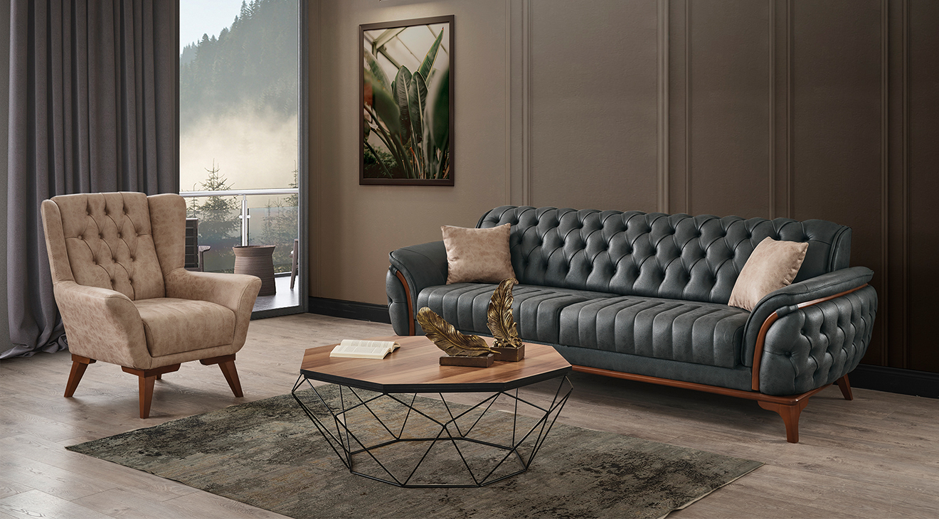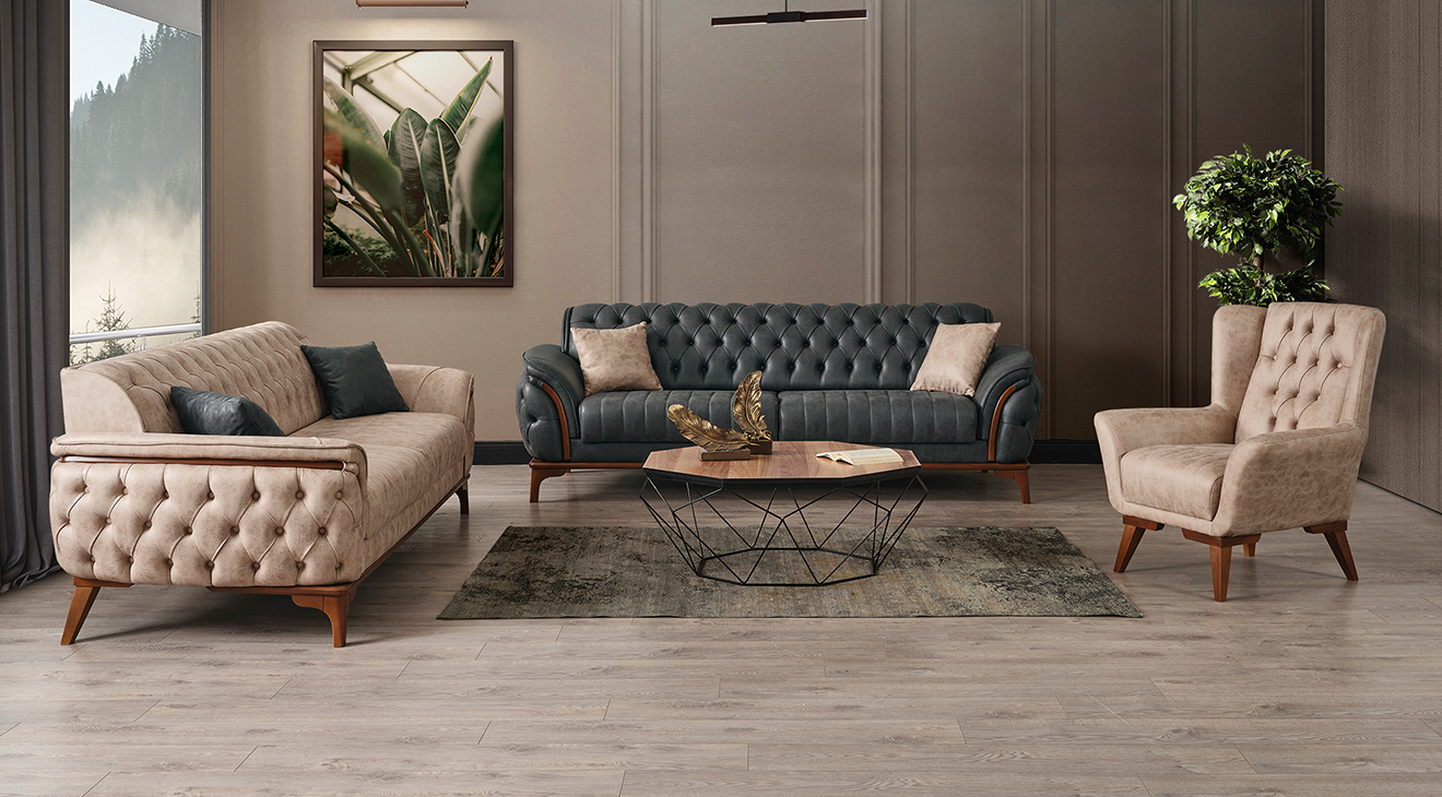 Alyans Krem Ahşap Ayaklı Koltuk Takımı, içerisinde 2 adet üçlü koltuk ve 1 adet berjer bulunmaktadır. Kendinizi en iyi hissettiğiniz yerler, aynı zamanda en çok vakit geçirdiniz yerlerdir. Yaşadınız alanları sahiplenmek, kişisel zevk ve deneyimlerinizle zenginleşmek yaşam alanlarınızda aidiyet duygusunu arttırır.