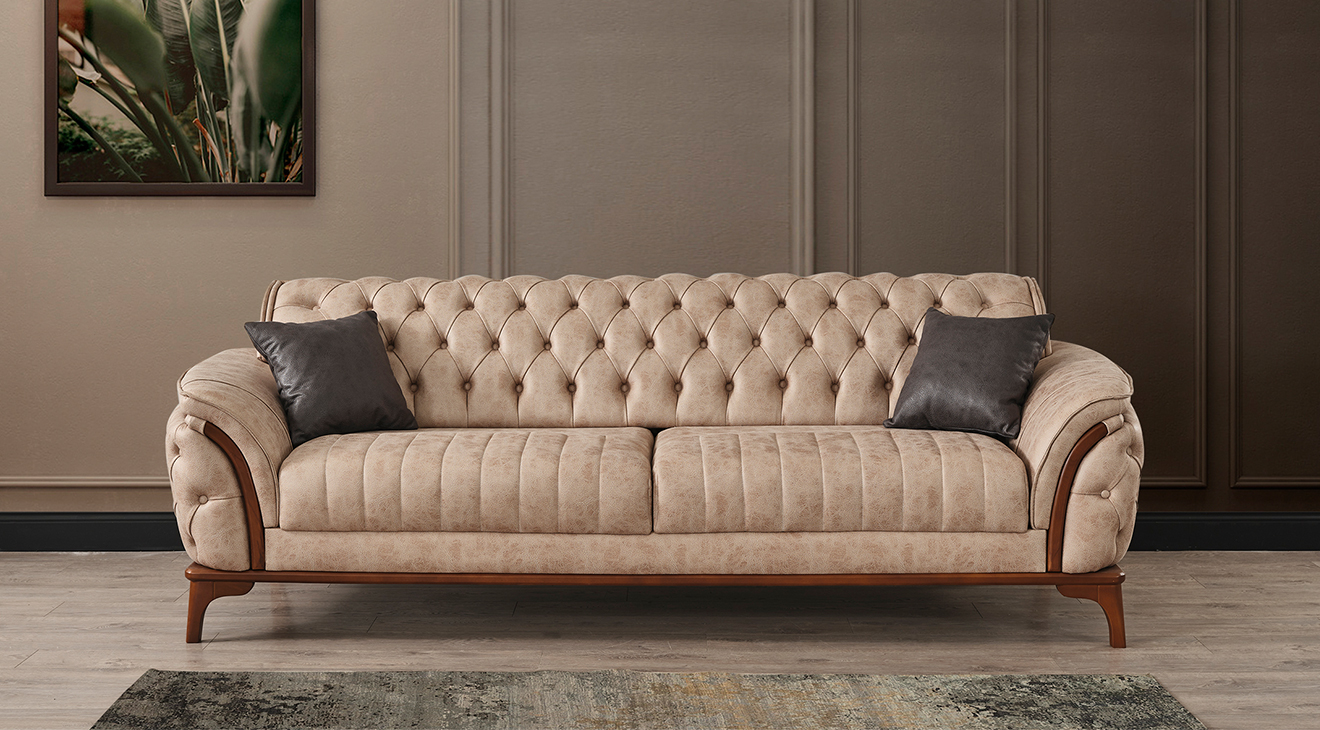 Alyans Krem Ahşap Ayaklı Koltuk Takımı