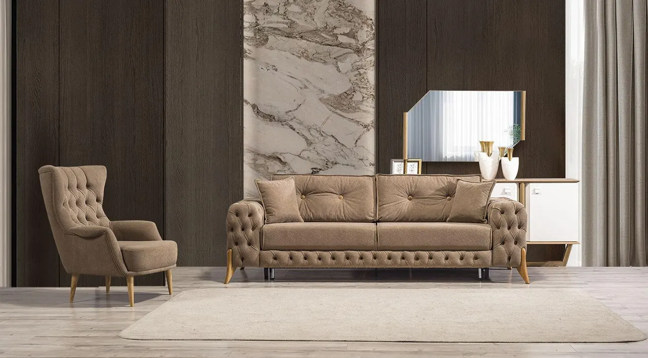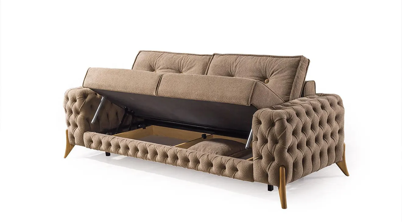 Bade Sandıklı Chester Koltuk Takımı, klasik Chester kapitone şıklığını modern işlevsellikle buluşturur. Sandıklı yapısı ekstra depolama sunarken, yatak olabilen mekanizması misafirler için pratik çözüm sağlar. Yüksek ahşap ayaklar kolay temizlik ve zarif bir duruş kazandırır; yumuşak, dayanıklı kumaşıyla konforu uzun süre korur.