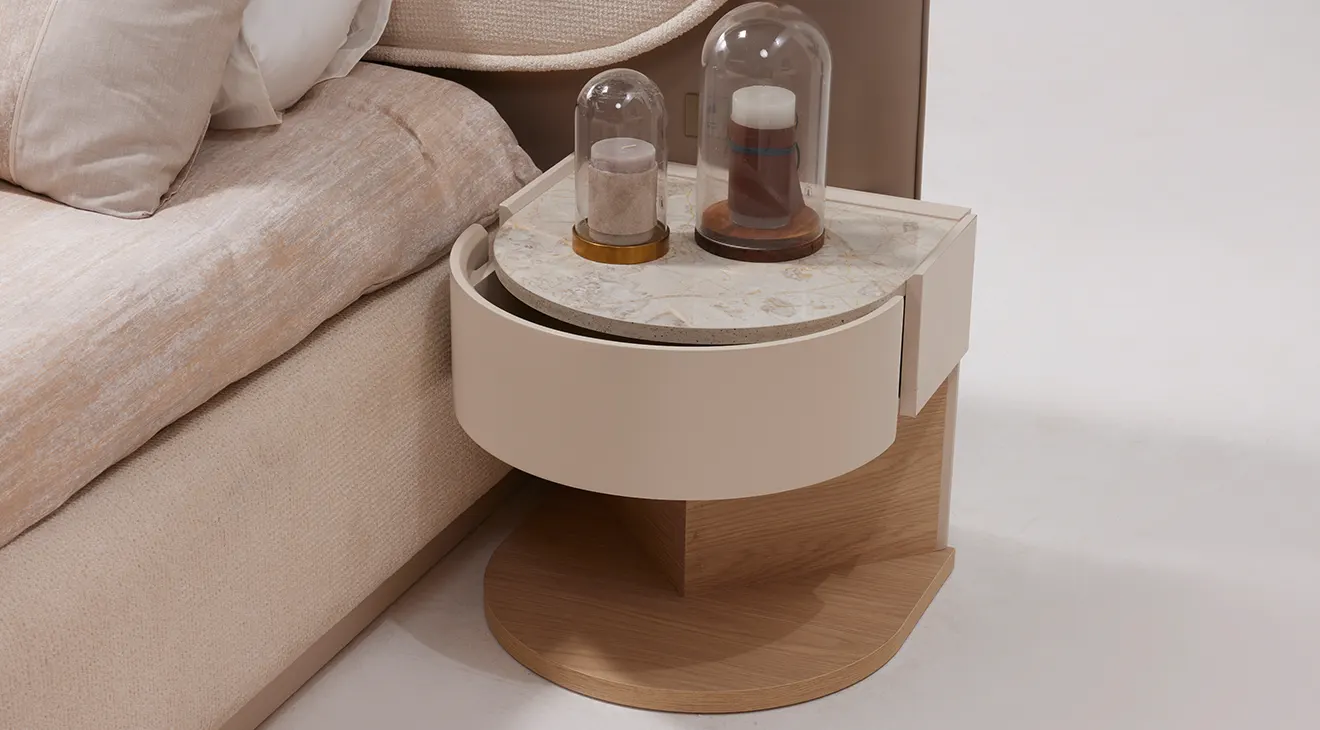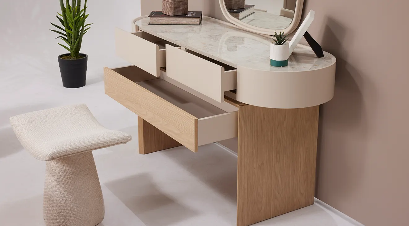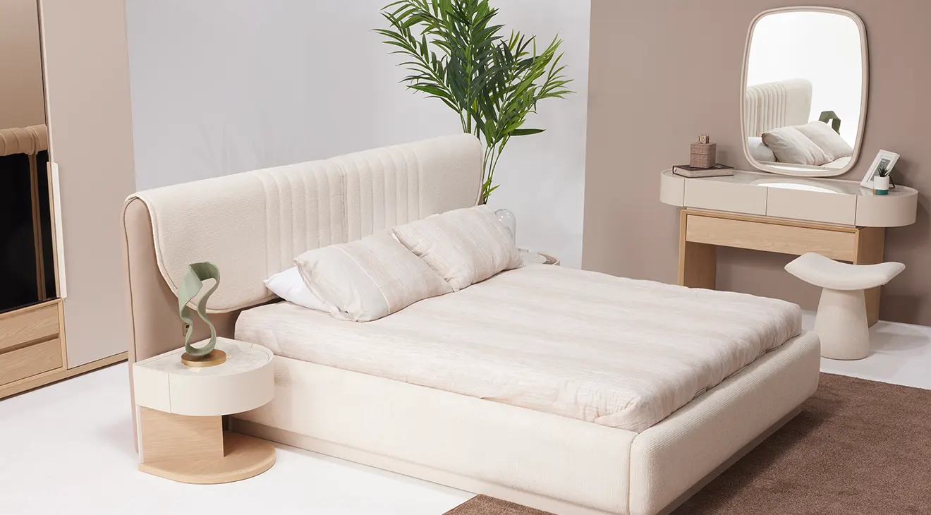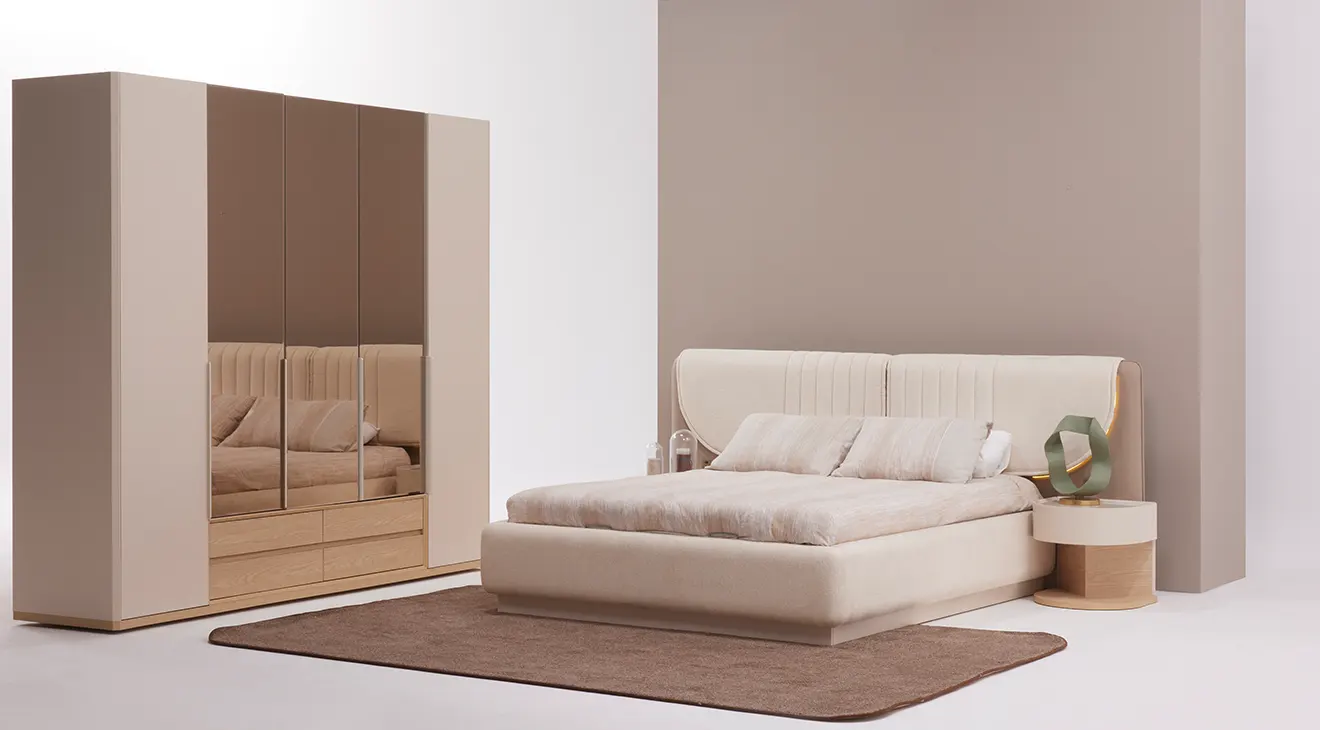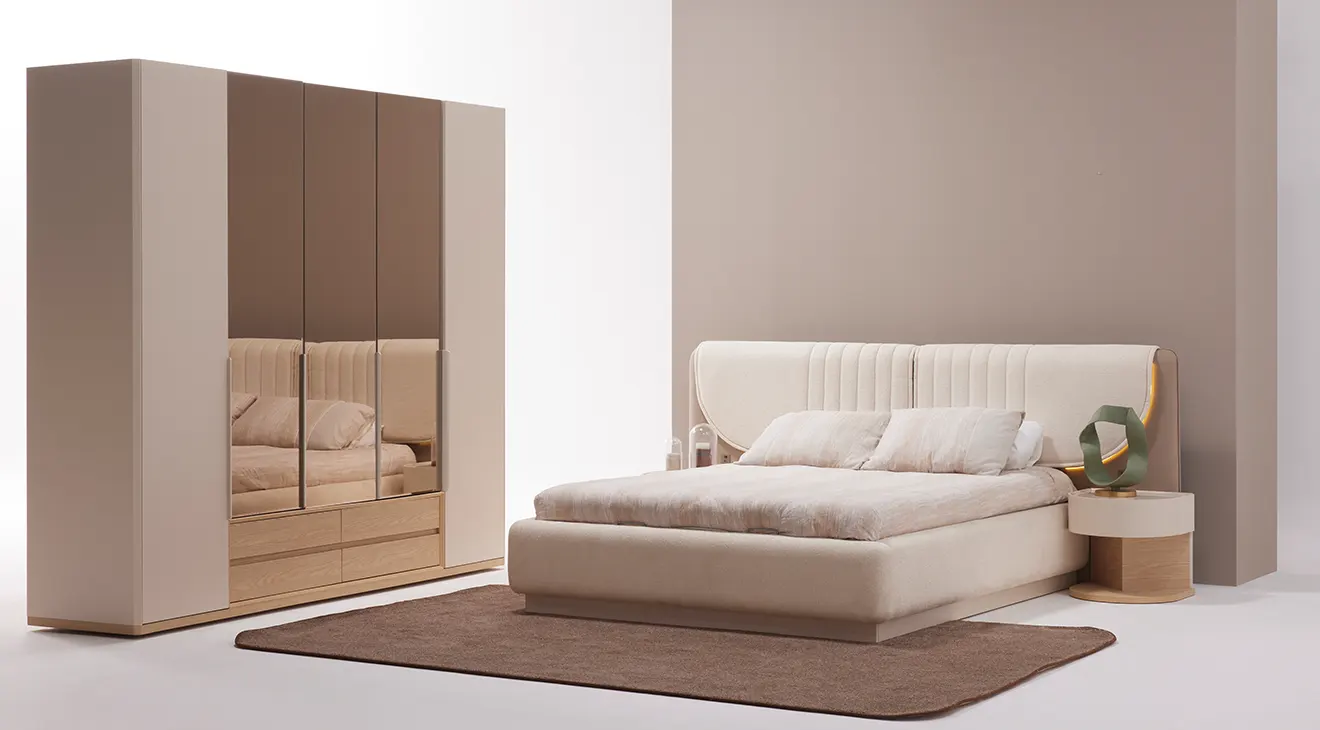 Bonita 5 Kapaklı Yatak Odası Takımı, sıcak ahşap tonları ve krem dokusuyla zarif bir uyum sunuyor. Minimal çizgilerle tasarlanan gardırop, LED aydınlatmalı başlık ve şık konsoluyla fonksiyonelliği ve konforu bir araya getiriyor.