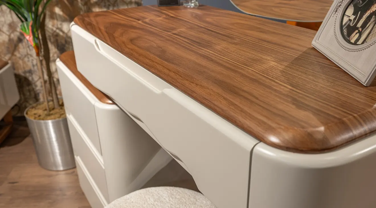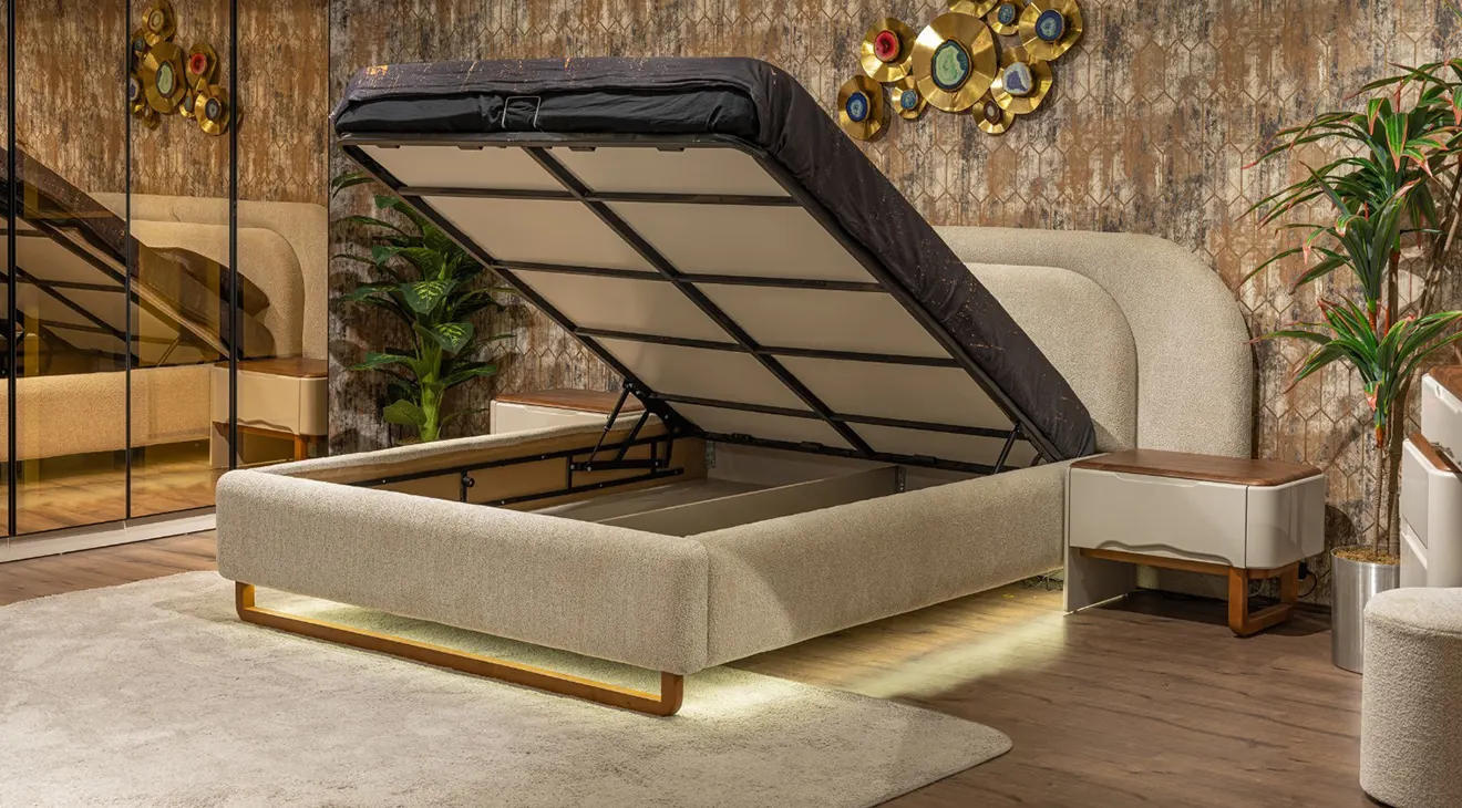 Calista 6 Kapaklı Yatak Odası Takımı, modern hatları ve altın bronz aynalı dolap tasarımıyla şıklığı yatak odanıza taşıyor. Geniş depolama alanı, bazalı karyola ve zarif detaylarıyla hem estetik hem işlevsel bir tercih.