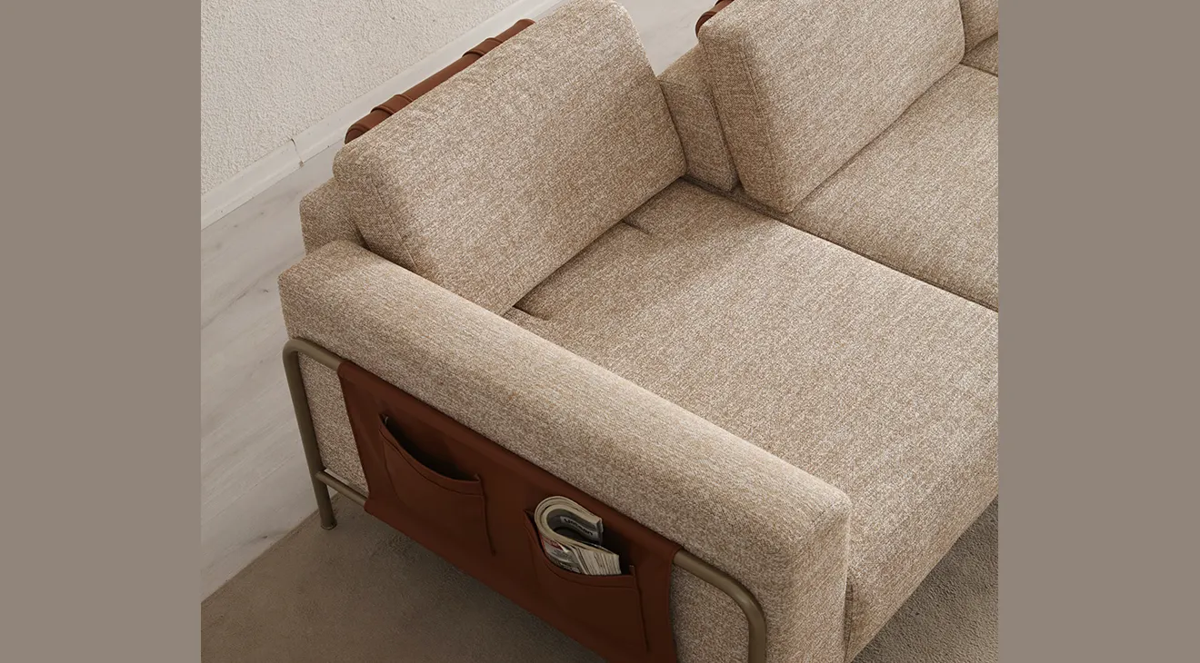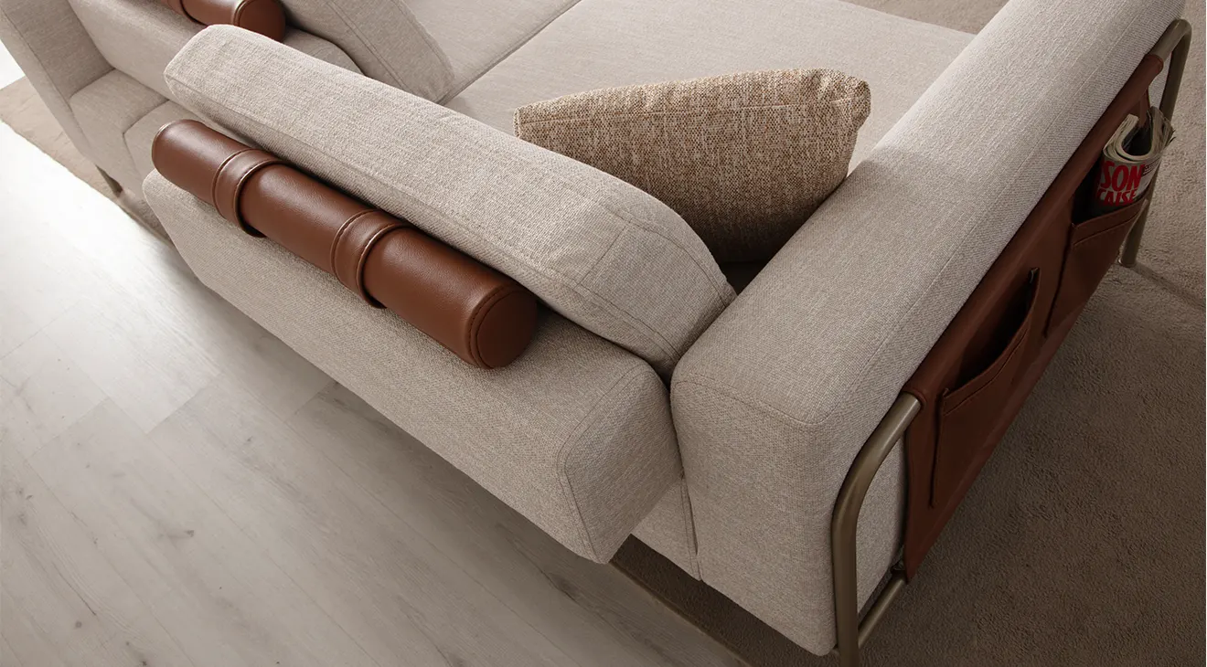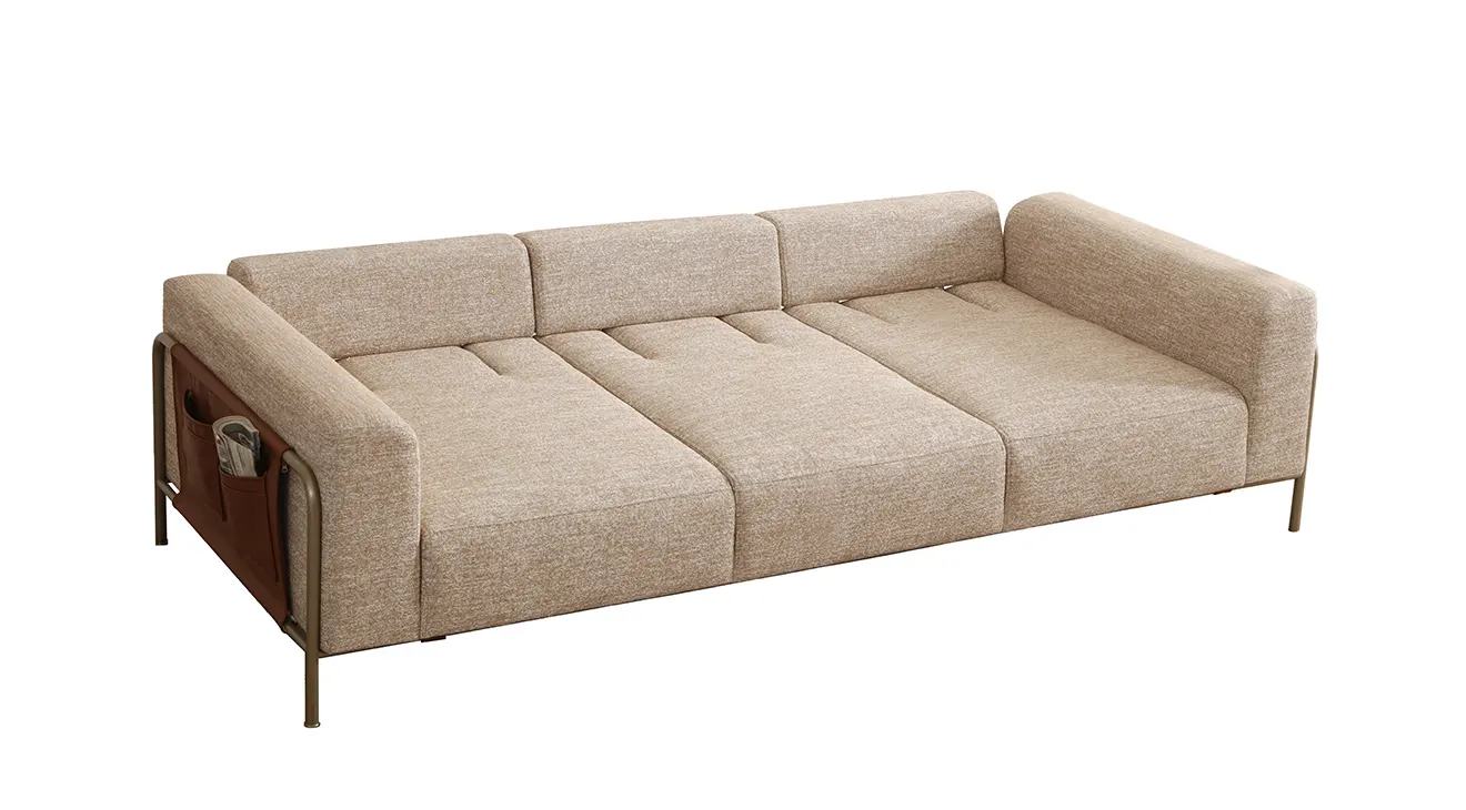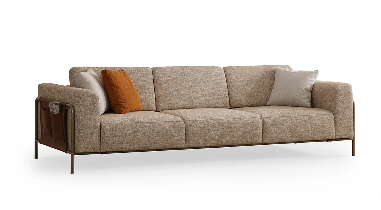 Colt Metal Ayaklı Koltuk Takımı, bej tonlarında dokulu kumaşı ve ince metal ayaklarıyla modern, zarif bir salon atmosferi oluşturur. Geniş oturum alanı ve dengeli sünger yapısı uzun süreli kullanımlarda konfor sunarken, kol yanındaki deri cepli organizer kitap ve dergiler için pratik bir alan sağlar. Sade çizgilere sahip üçlü koltuk, ikili koltuk ve berjer kombinasyonu farklı yerleşimlerde kolayca uyum sağlar. Dayanıklı metal iskelet ve kolay temizlenen döşeme, İnegöl mobilya kalitesini yıllarca korumanıza yardımcı olur.