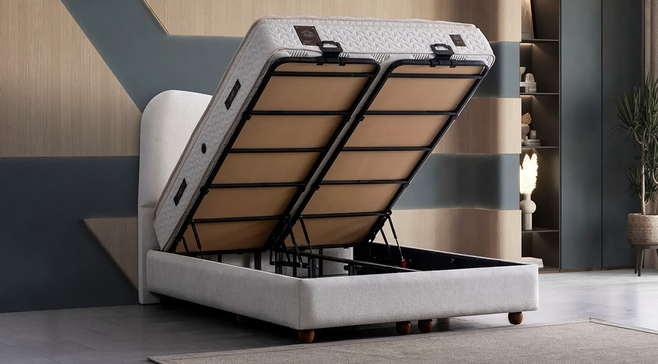 Takım içeriğindeki standart karyola bazalıdır.