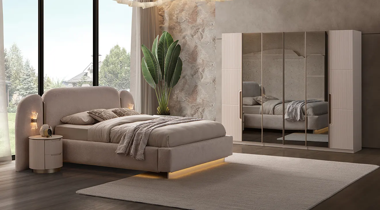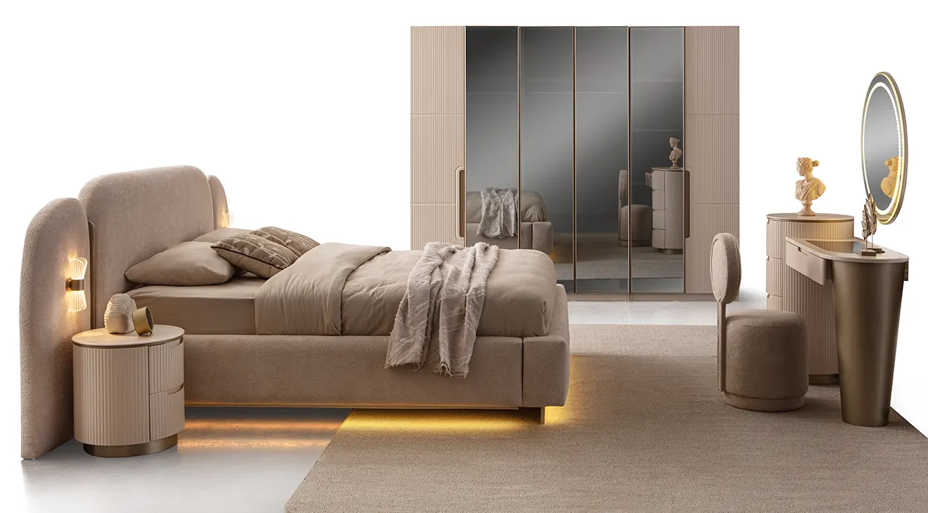 Defne yatak odası takımı sade ve modern tasarımı ile sizlerle. Led detayları sayesinde odanıza ayrı bir hava katmaktadır. sade ve şık tasarımı sayesinde odanızı boğmaz ve dolabın modüler özelliği sayesinde kendinize göre düzenleme imkanı sağlamaktadır..
