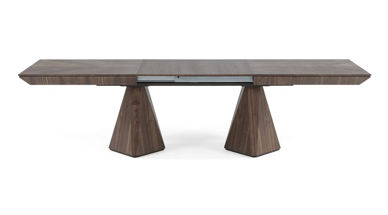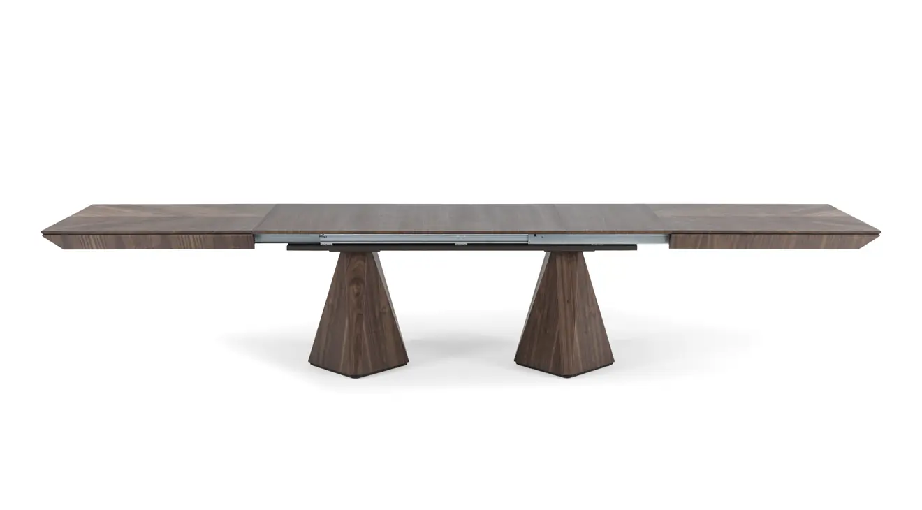 Diamond Ceviz Kaplamalı Açılır Masa, 1. sınıf kalite malzemeden üretilmiştir. 100 x 200 cm ölçüsünden 400 cm uzunluğa kadar 4 kademeli olarak genişletilebilir. Ahşap ayakları ve açılır mekanizmasıyla yemek masası olarak kullanabilirsiniz. Estetik ve dayanıklı tasarımı, modern mutfaklarda ve yemek odalarında ideal bir seçimdir.