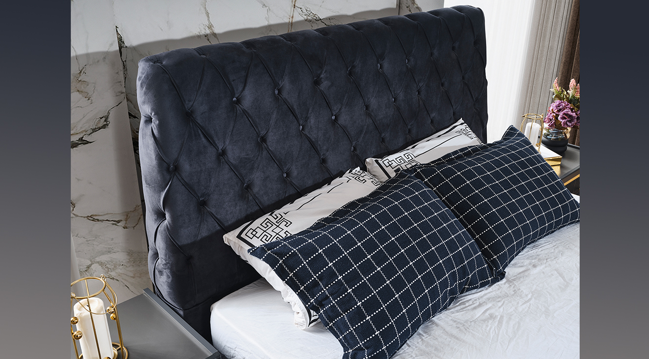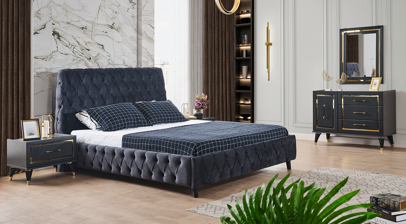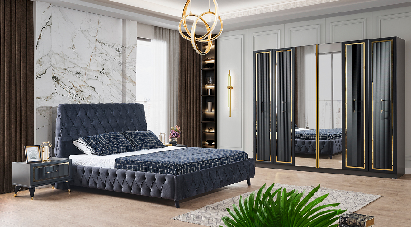 Antrasit rengi, gold detayları, 6 kapak özelliği, karyola kapitoneli işlemeleri ile bir çok özelliği Dora Antrasit 6 Kapaklı Yatak Odası Takımı mobilyamevime.com ve mobilyamevime mağazalarında sizlere sunuyoruz