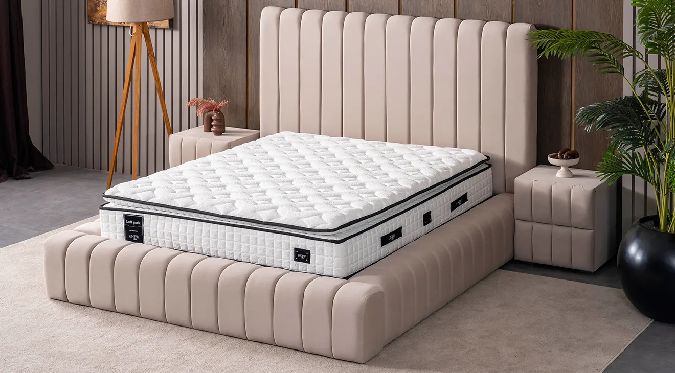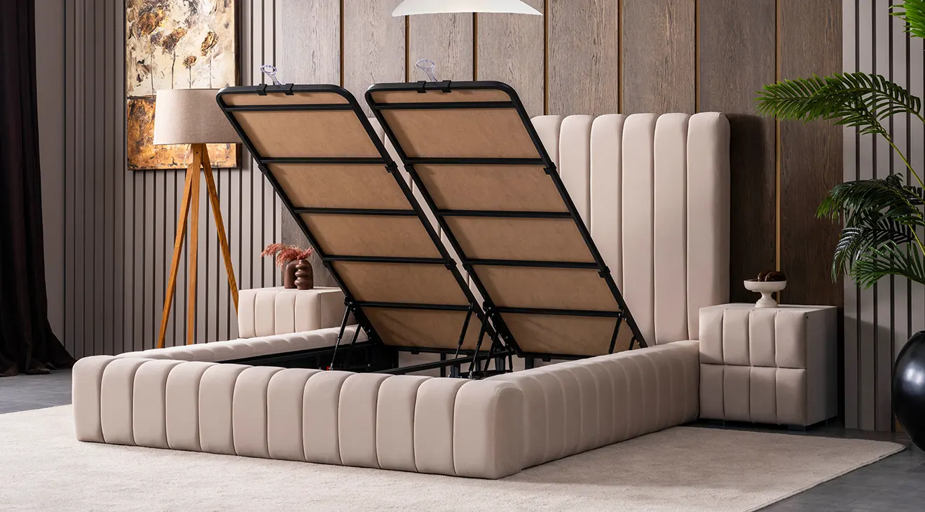 Takım içeriğindeki standart karyola bazalıdır.
