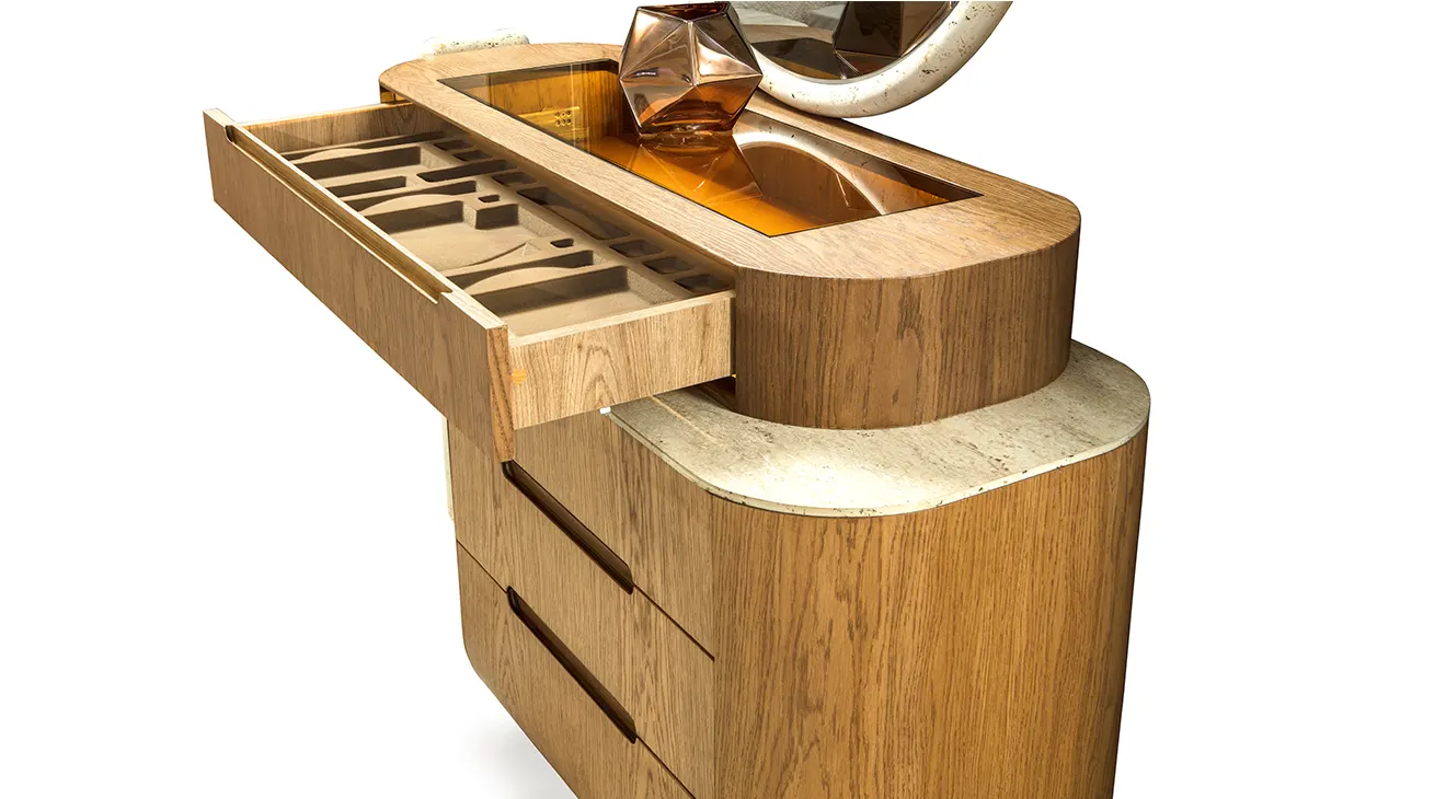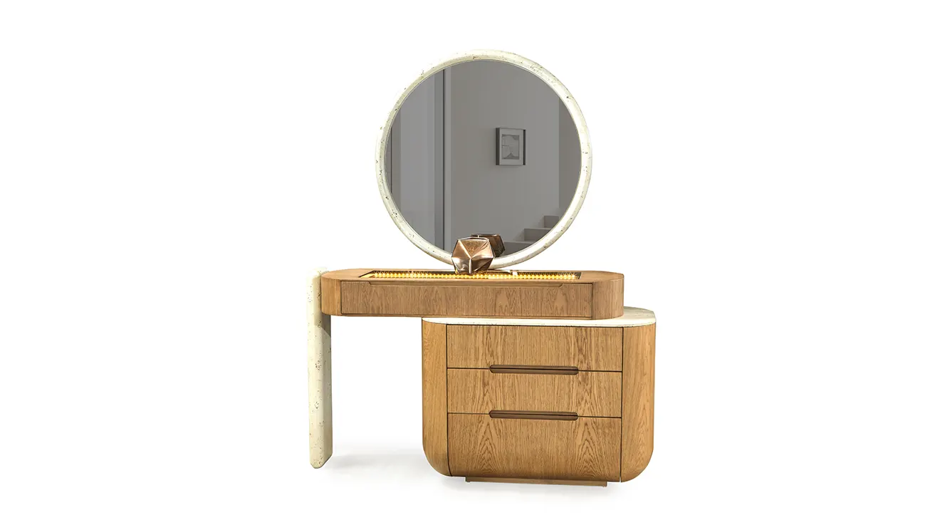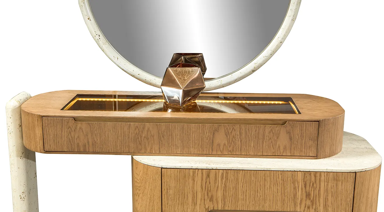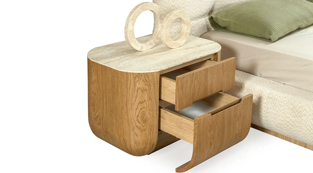 Era 6 Kapaklı Yatak Odası Takımı; altın tonlu cam kapaklı geniş gardırop, yumuşak dokulu başlıklı şık karyola ve zarif traverten detaylı şifonyeriyle fark yaratır. Sade ama lüks tasarımıyla yatak odanıza ferahlık ve konfor getirir.