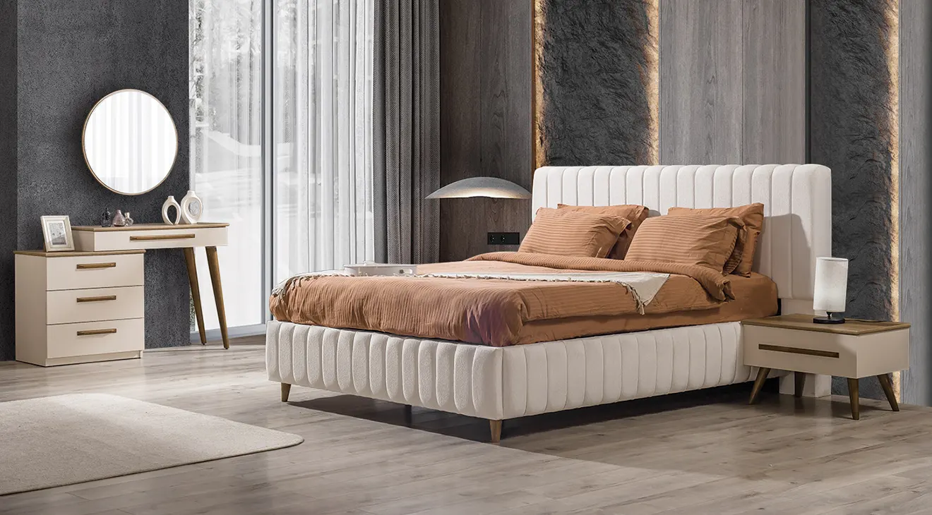 Eva Modern 6 Kapaklı Yatak Odası Takımı, modern ve zarif tasarımı ile yatak odanıza şıklık katıyor. Yüksek kaliteli malzemelerle üretilen bu takım, uzun ömürlü kullanım sunar. Geniş depolama alanları ve estetik detaylarıyla hem konforlu hem de şık bir uyku alanı sağlar. Eva Modern 6 Kapaklı Yatak Odası Takımı ile yatak
