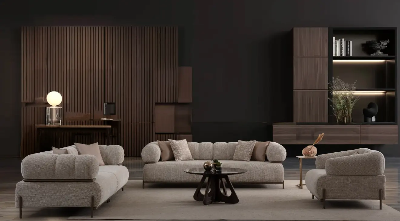 Eva Modern Koltuk Takımı, fırınlanmış gürgen ağacından ve 1. sınıf kalite malzemeden üretilmiştir. Metal ayaklar ile modern bir görünüm sağlar. Dilediğiniz takdirde adresinize kumaş numunesi gönderilir. Ürün tüm parçalar demonte olarak gönderilir. Modern ve şık bir oturma odası için idealdir.
