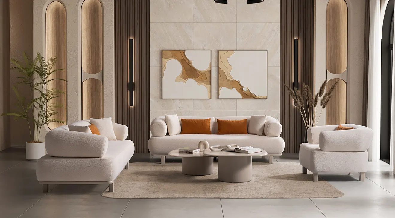 Exen Modern Koltuk Takımı, geniş oturma alanı ve yumuşak dokusuyla konforu ön plana çıkaran bir tasarıma sahiptir. Ahşap detayları ve zarif formu, modern mekanlara uyum sağlar.