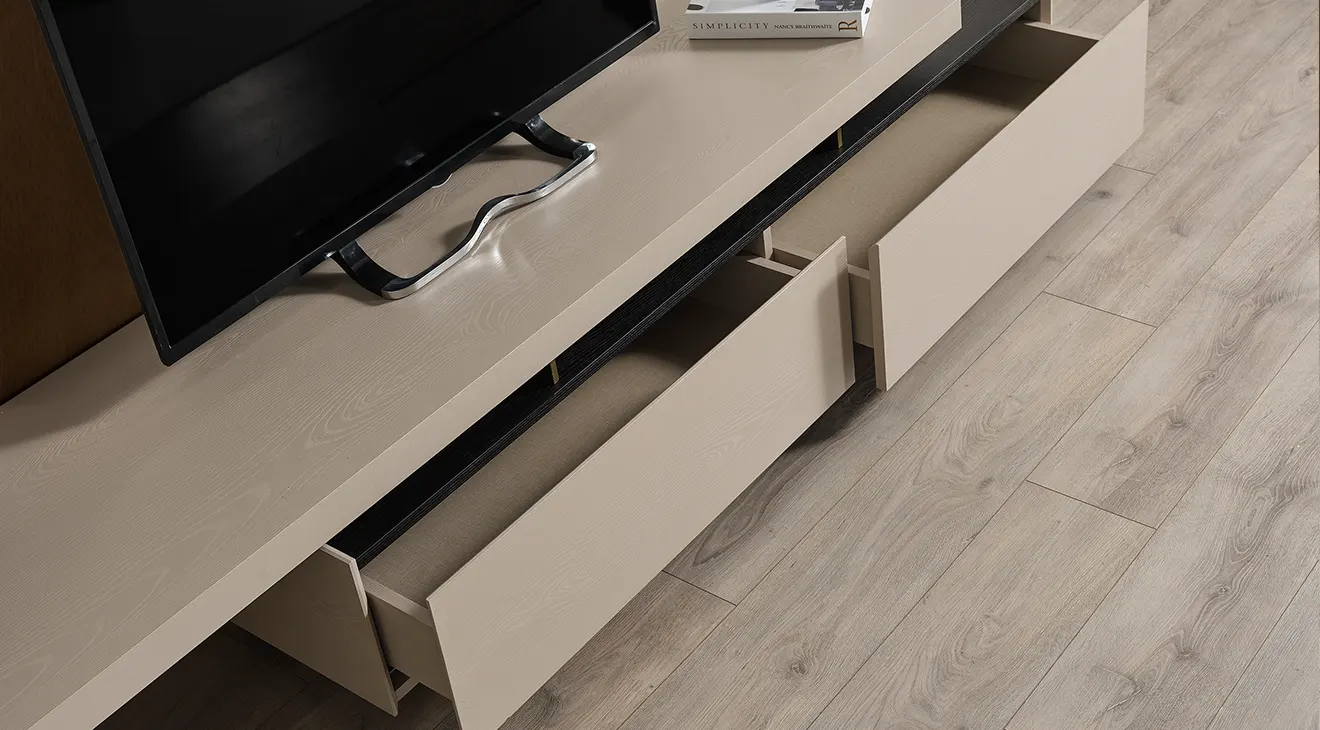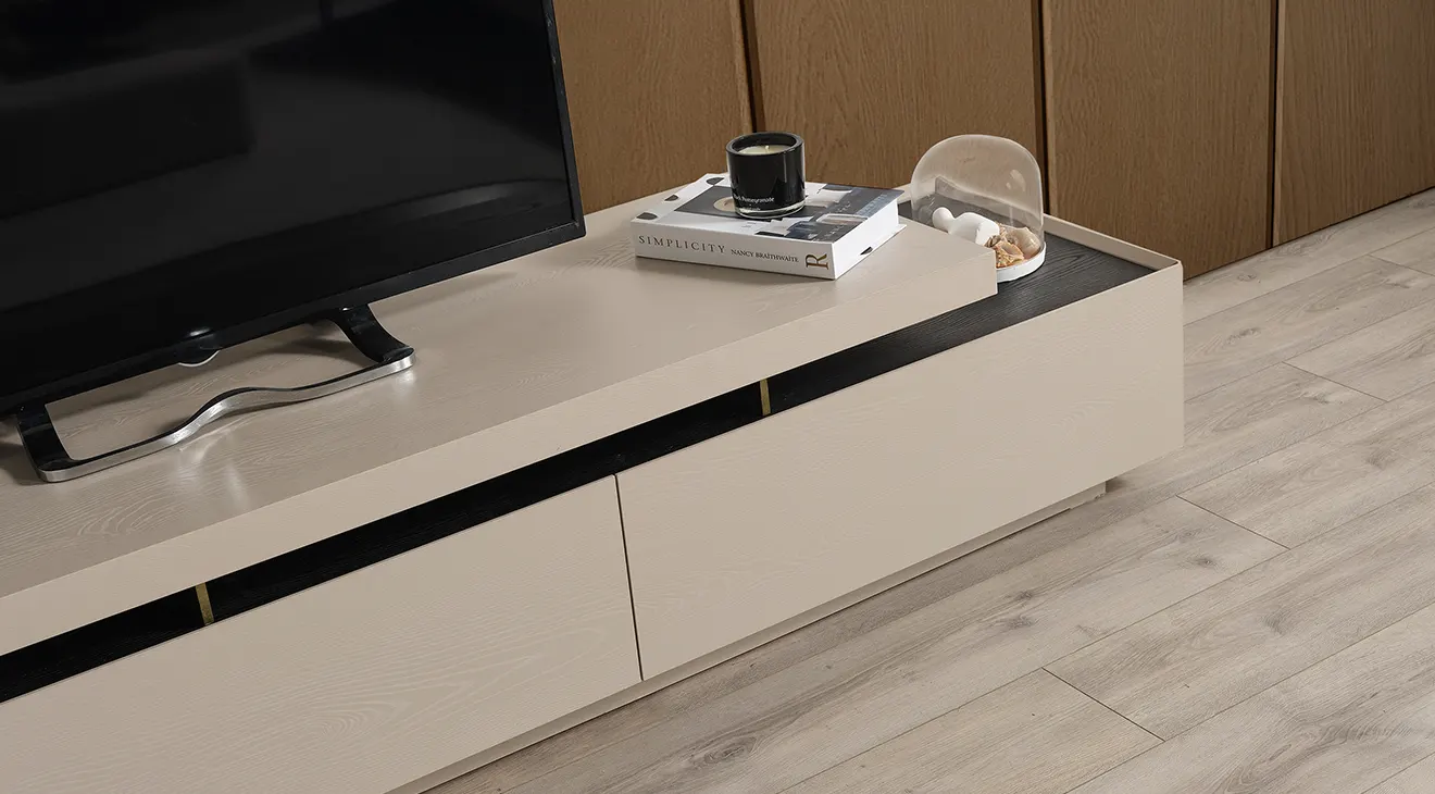Frida Modern TV Ünitesi, İnegöl’ün zarafetini minimal hatlarla buluşturuyor. Bej tonlu mat lake kaplaması ve ince metal ayaklarıyla mekânınıza hafiflik katarken, geniş çekmeceleri ve yan vitrin modülü günlük kullanımda pratik depolama sağlıyor. Şık tasarımıyla hem odak noktası hem de fonksiyonel bir çözüm olarak salonunuza modern bir dokunuş getirir.