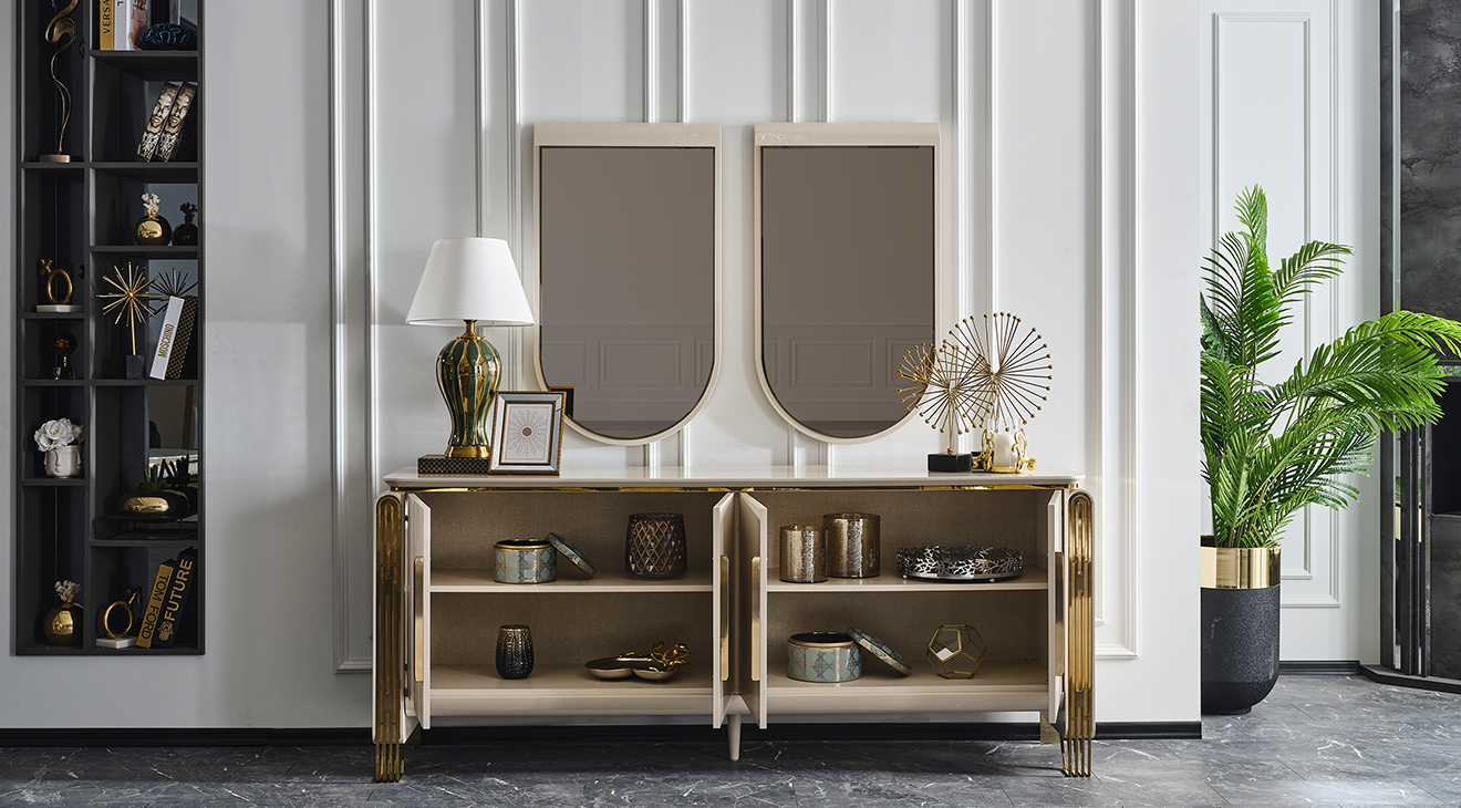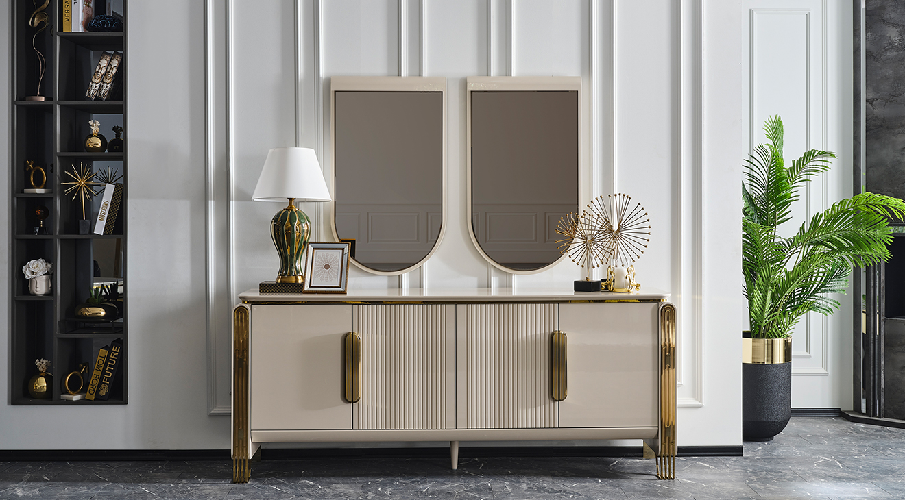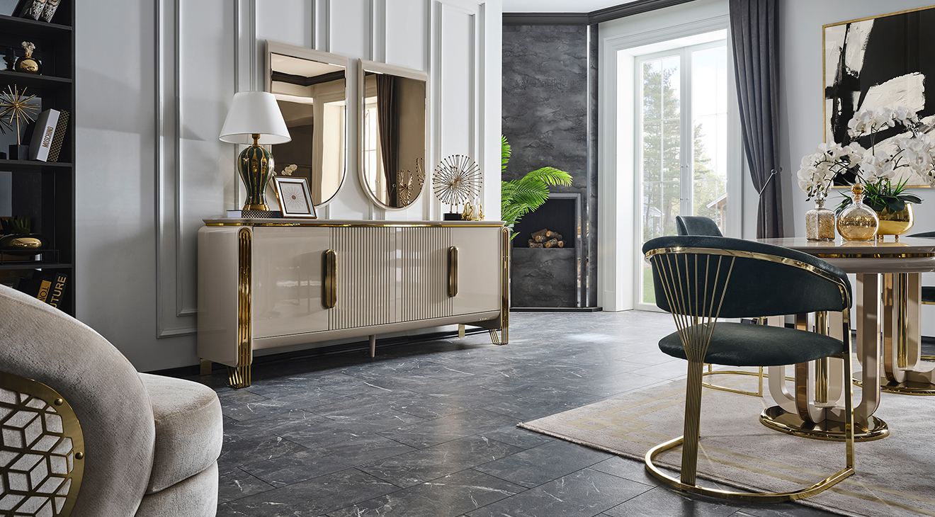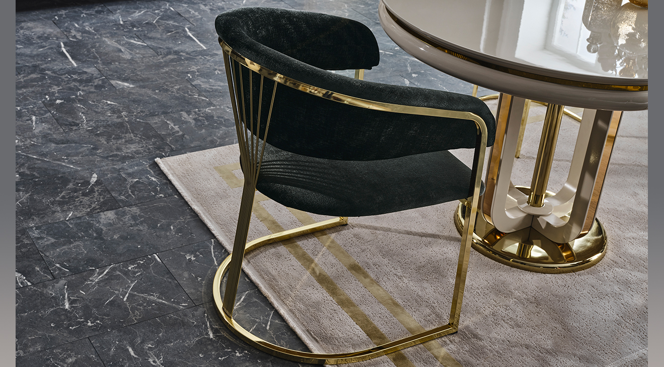 İnegöl mobilyasının özel üretimi Jaguar Luxury Yemek Odası Takımı, metal ayaklı ve luxury tasarımı ile şimdi Mobilyamevime'de!