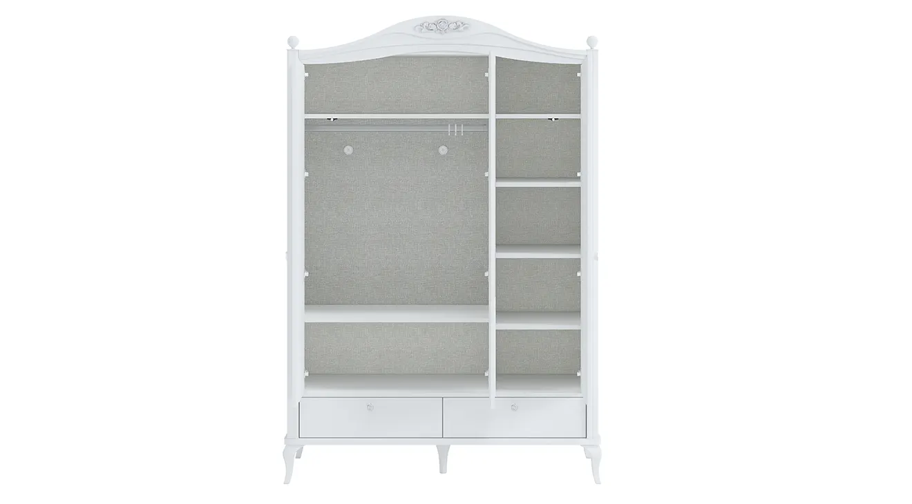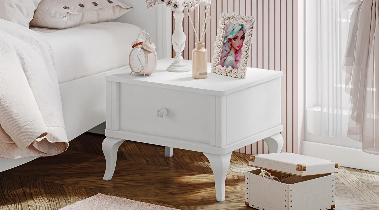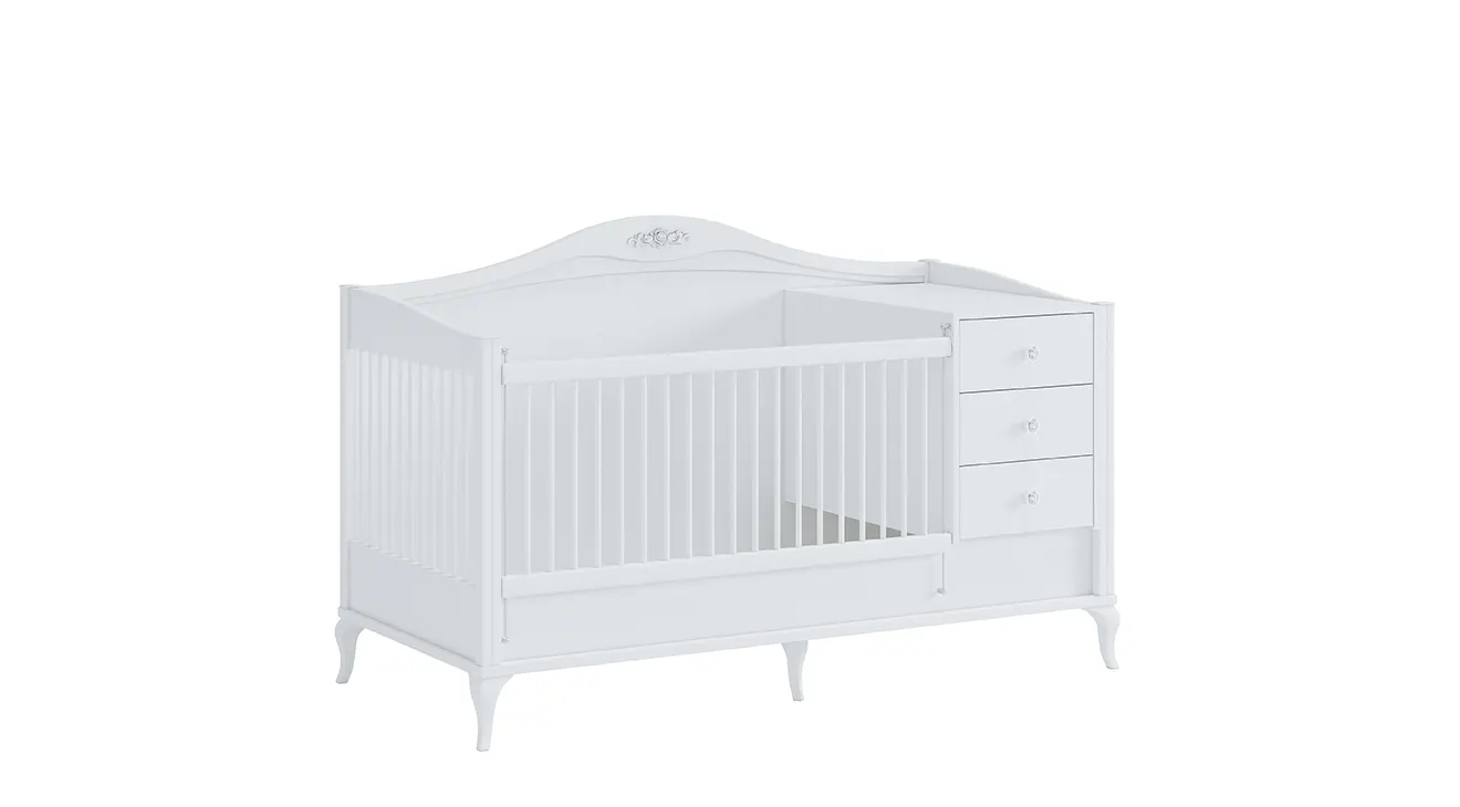 Jasmine Bebek Odası Takımı, yumuşak hatlı klasik modern çizgileriyle bebeğinizin odasına ferah ve zarif bir atmosfer getirir. Beyaz yüzeyler, detaylı ayaklar ve kullanışlı depolama çözümleri (gardırop, şifonyer, entegre beşik) sayesinde hem estetik hem de pratik. Yeni doğan ve büyüyen çocuklar için uzun ömürlü bir tercih.