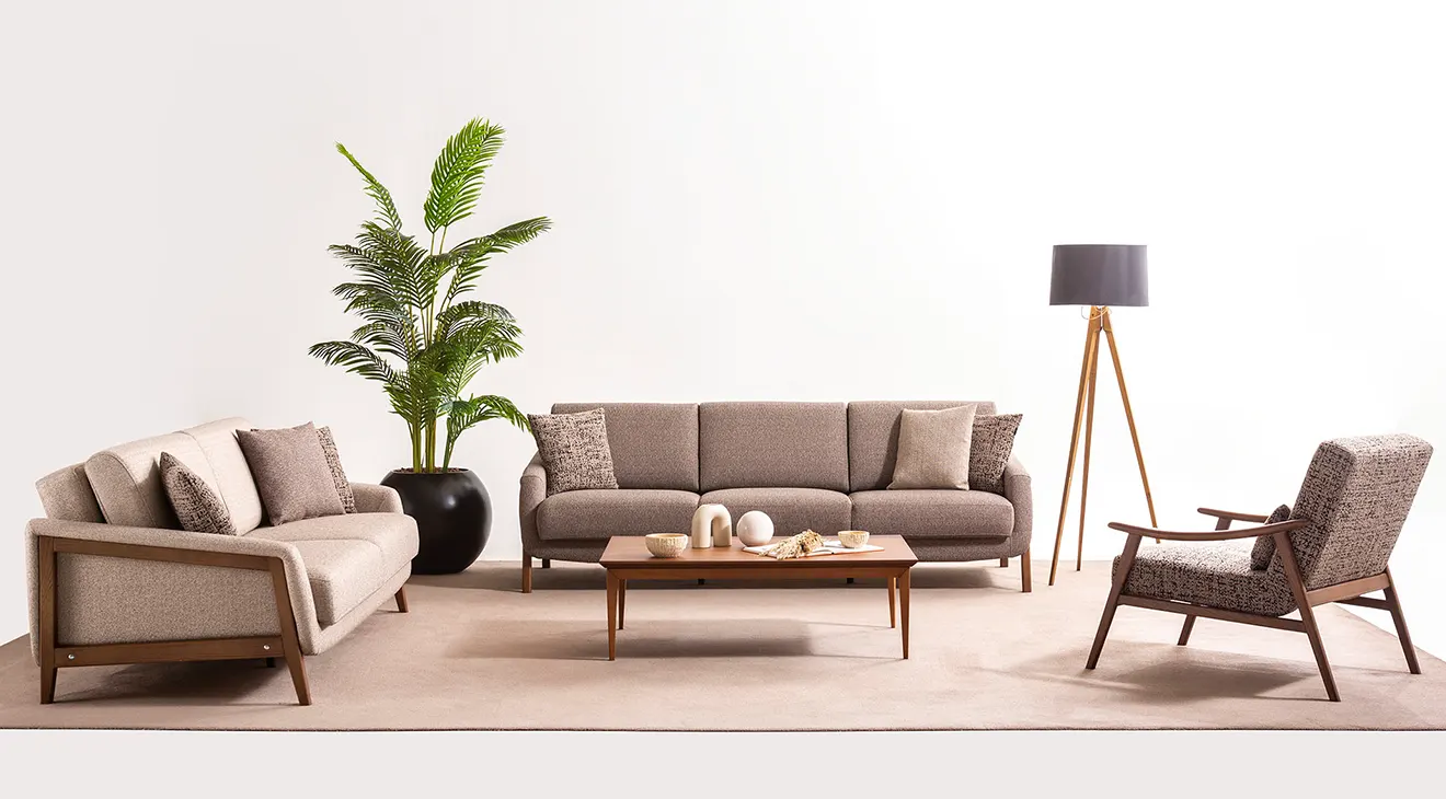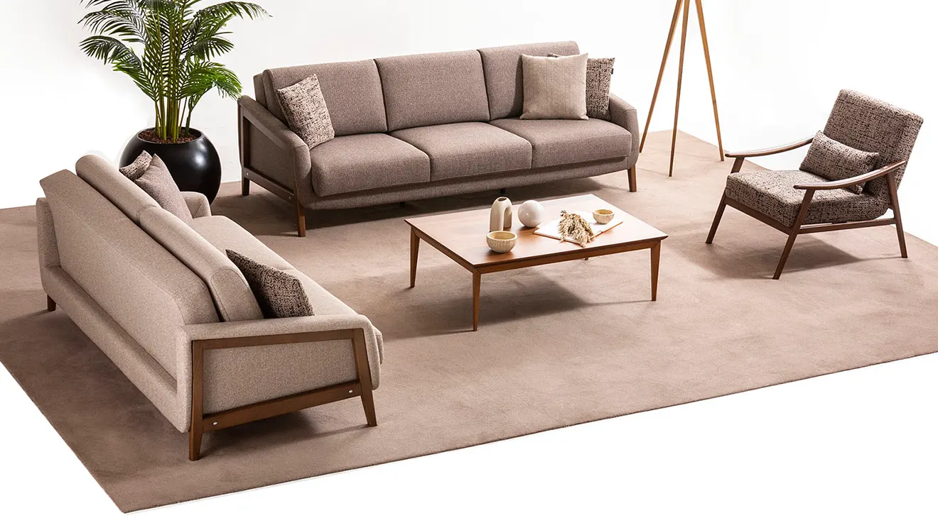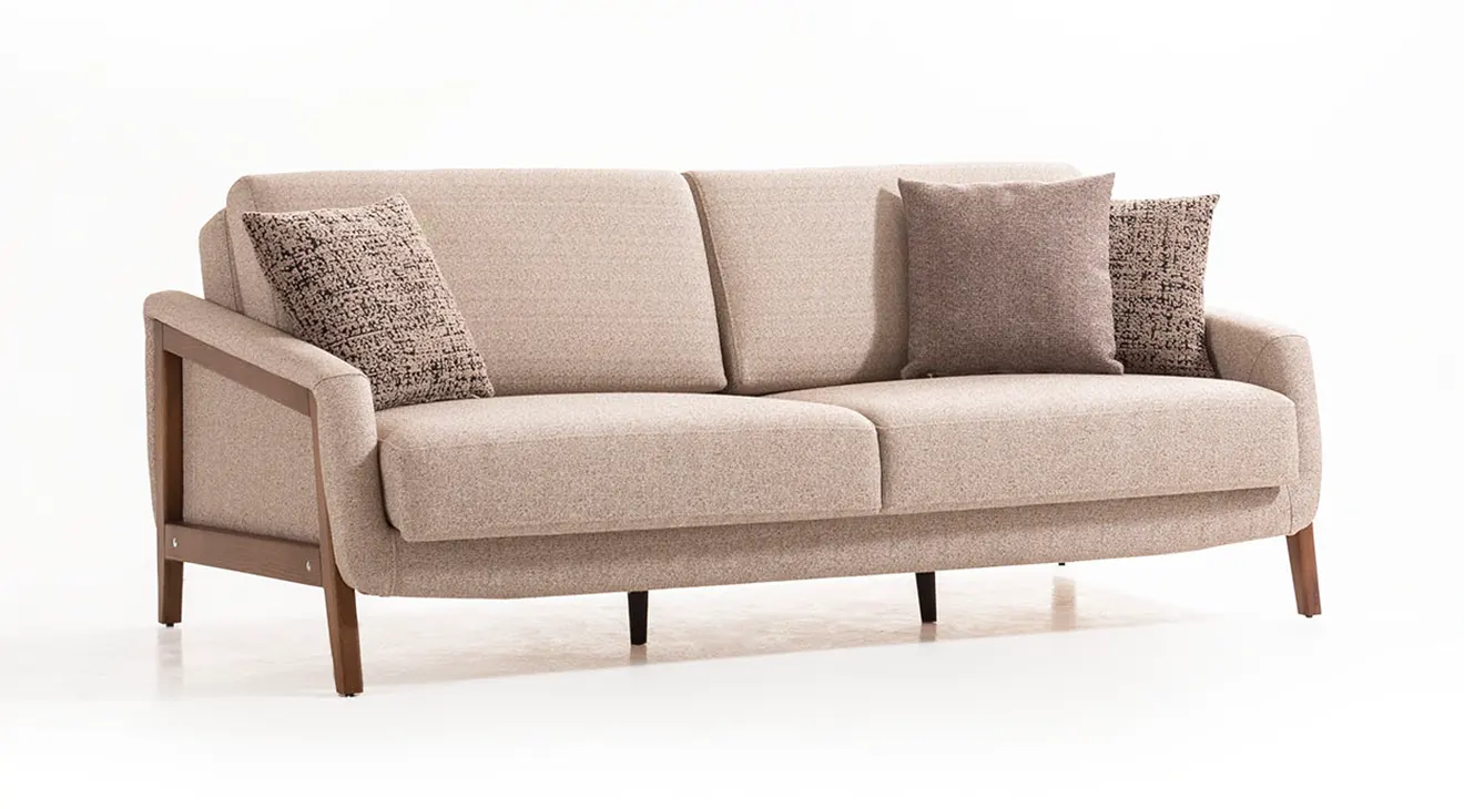 Kent Yataklı Modern Koltuk Takımı, şık tasarımı ve yatak olma özelliğiyle yaşam alanınıza fonksiyonellik katıyor. Ahşap detayları ve modern çizgileriyle hem estetik hem de konforlu bir kullanım sunar.