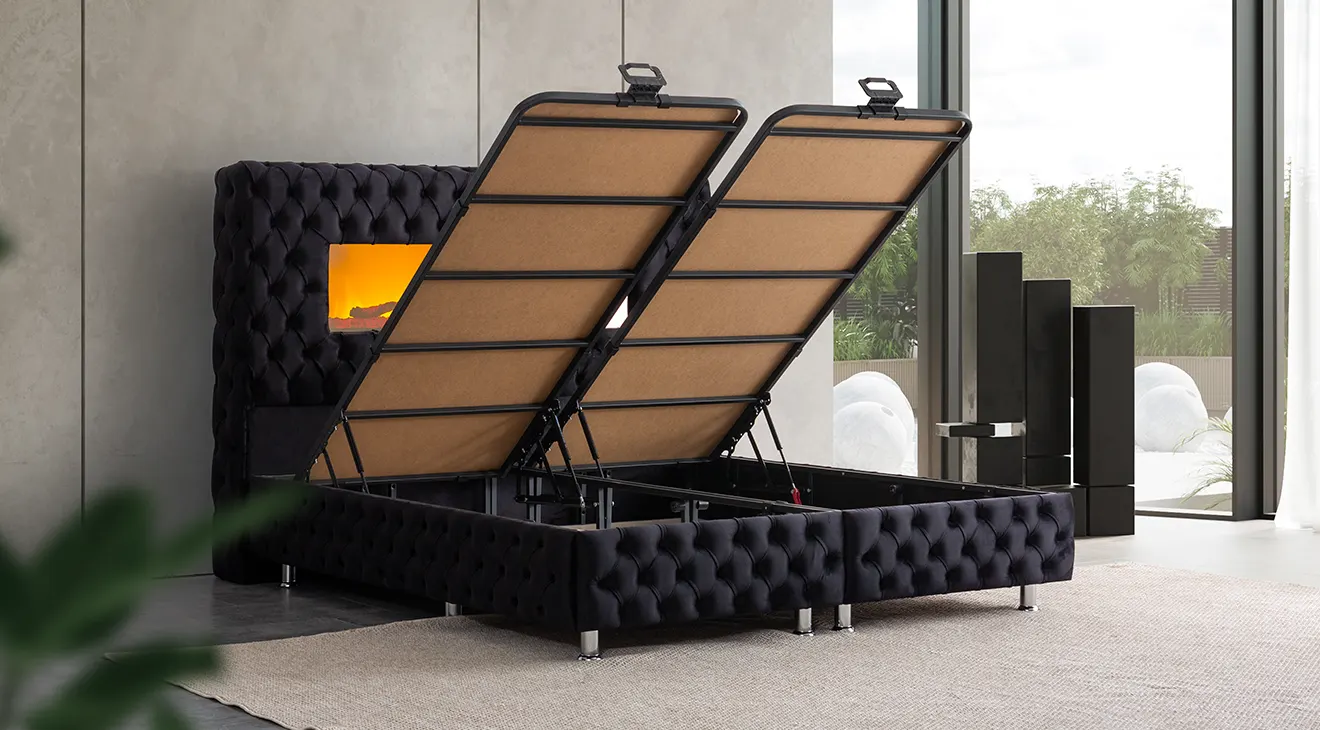 Takım içeriğindeki standart karyola bazalıdır.