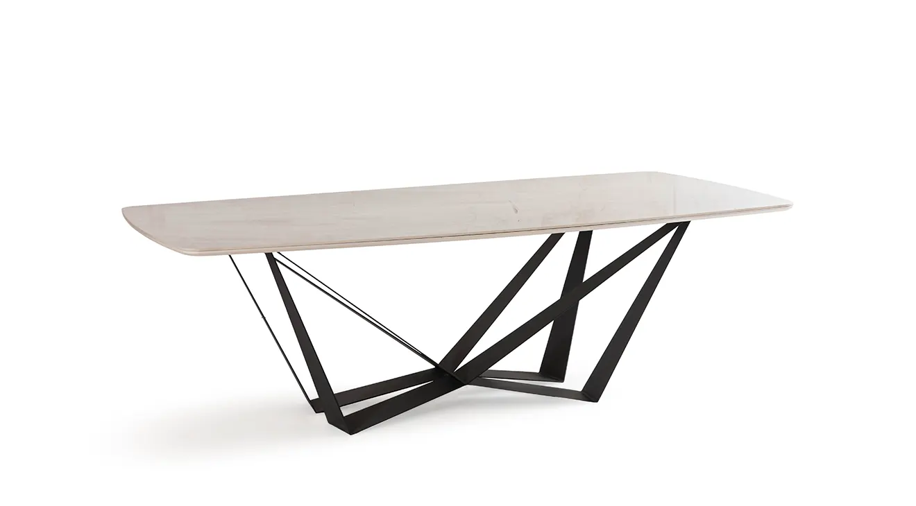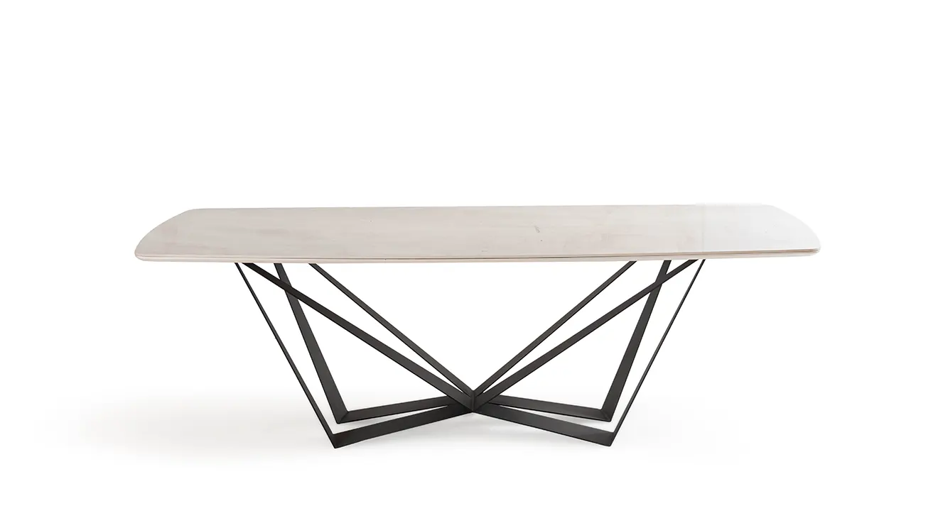 Lizza Metal Ayaklı Seramik Masa, ince geometrik metal ayakları ve açık seramik tablasıyla hafif bir görünüm, sağlam bir kullanım sunar.