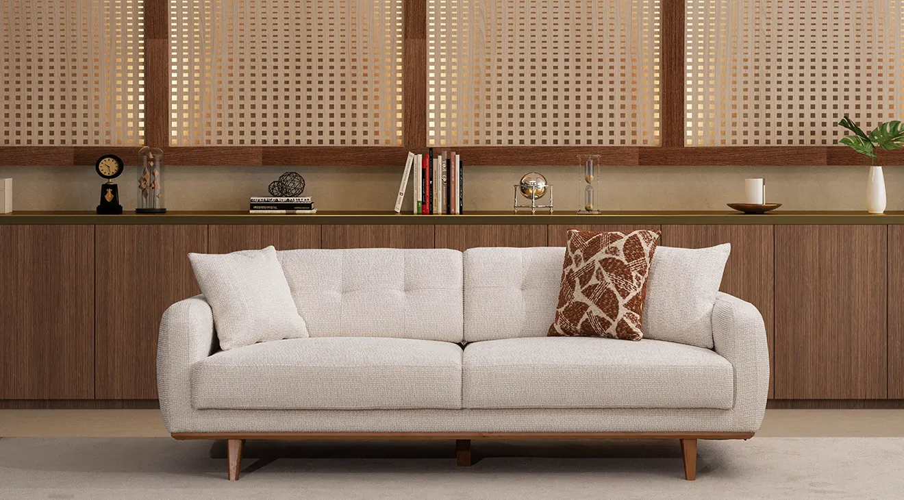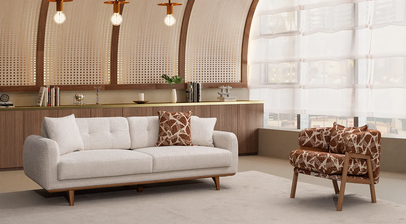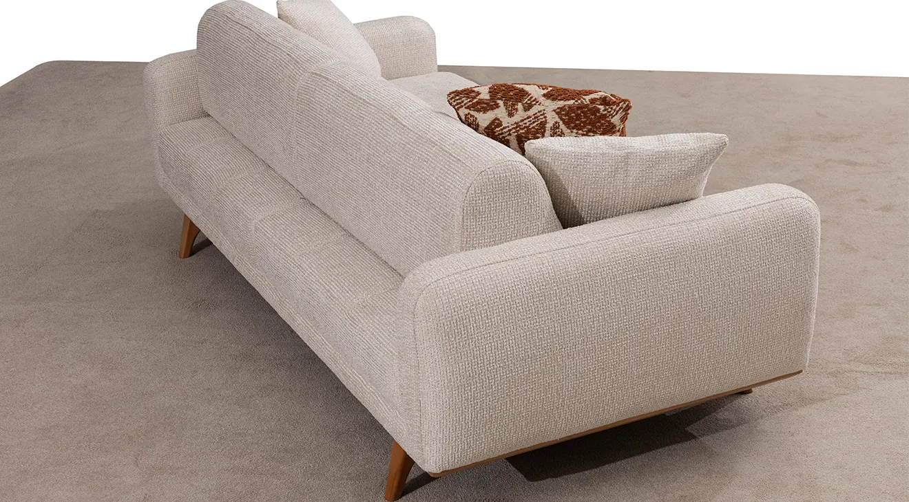 Loft Yataklı Ahşap Ayaklı Koltuk Takımı, yalın çizgileri ve doğal ahşap ayaklarıyla sıcak, modern bir salon atmosferi oluşturur. Yataklı mekanizması misafir ağırlamayı pratikleştirirken geniş oturum ve yumuşak dokulu kumaş günlük konforu artırır. Destekleyici sırt yastıkları ve dengeli sünger yapısı uzun süreli oturumlarda rahatlık sunar. İnegöl mobilya işçiliğiyle üretilen sağlam gövde ve kolay temizlenen yüzeyler, yıllarca ilk günkü görünümün korunmasına yardımcı olur.