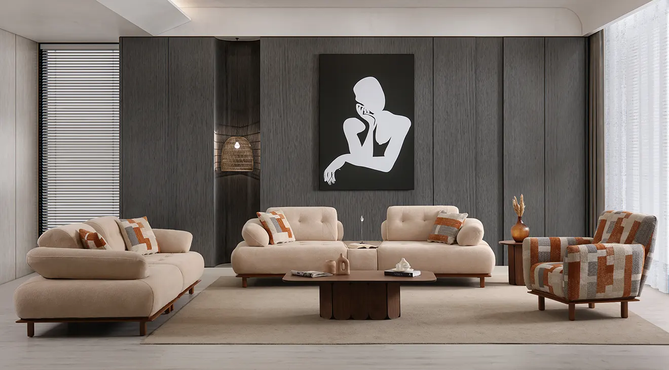 Lois ahşap ayaklı yataklı koltuk takımı; geniş oturum, kolay açılır yatak ve modern çizgiler sunar. Dayanıklı iskelet, yumuşak döşeme, uzun ömür.
