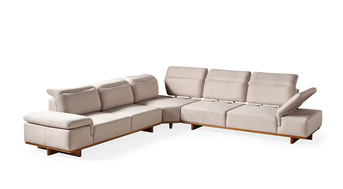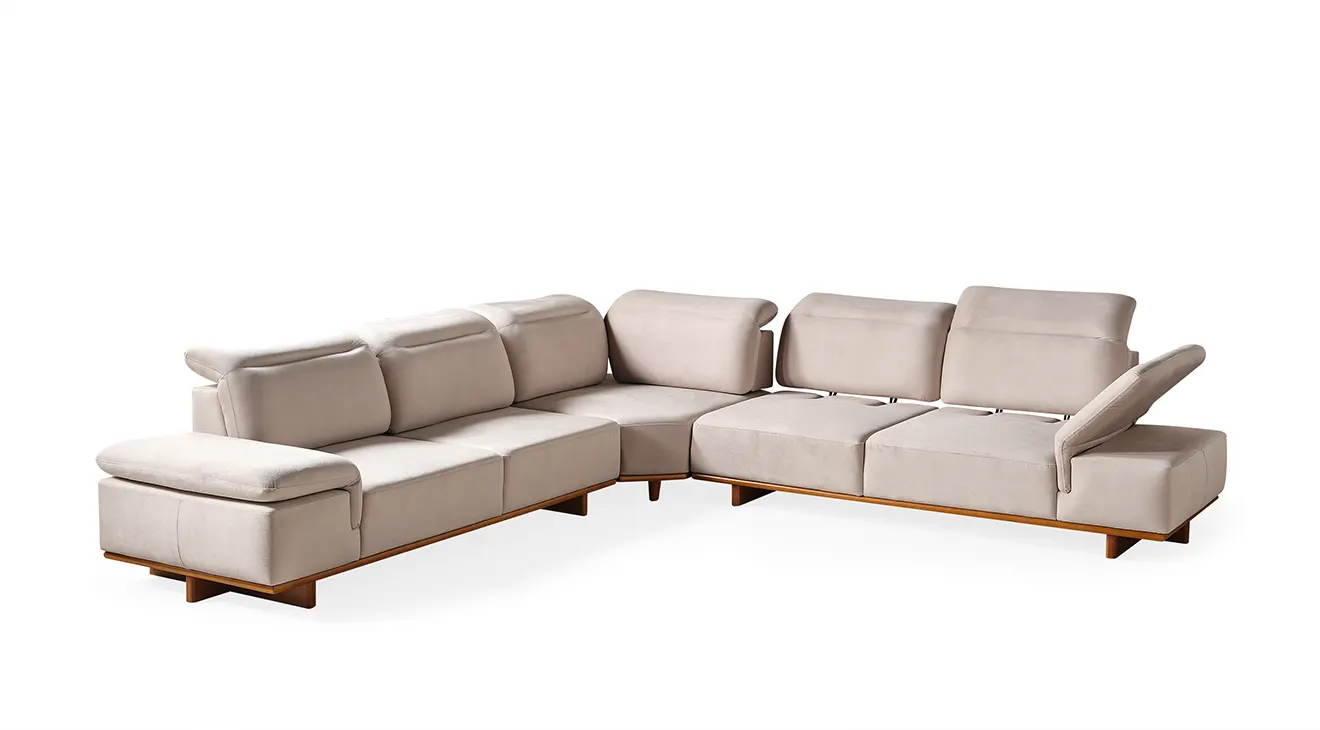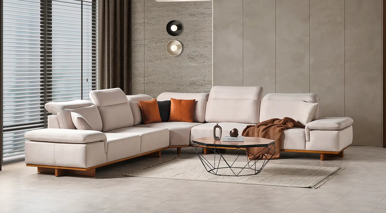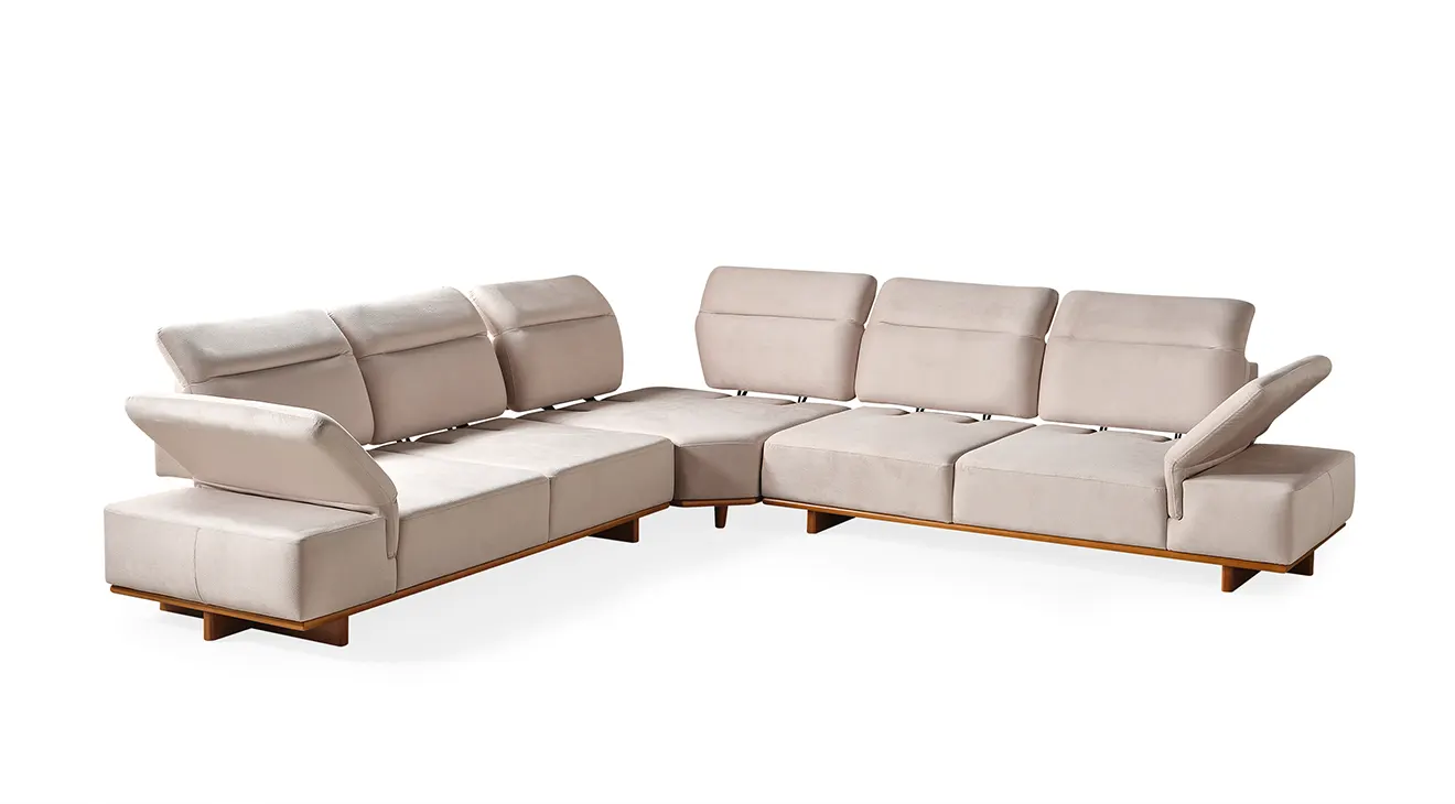 Lotus Modern Ahşap Ayaklı Köşe Koltuk Takımı: Şık çizgiler, rahat oturuş ve doğal ahşap detaylarla modern oturma odalarına sıcaklık katın.