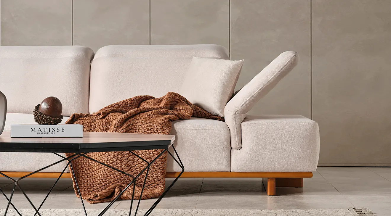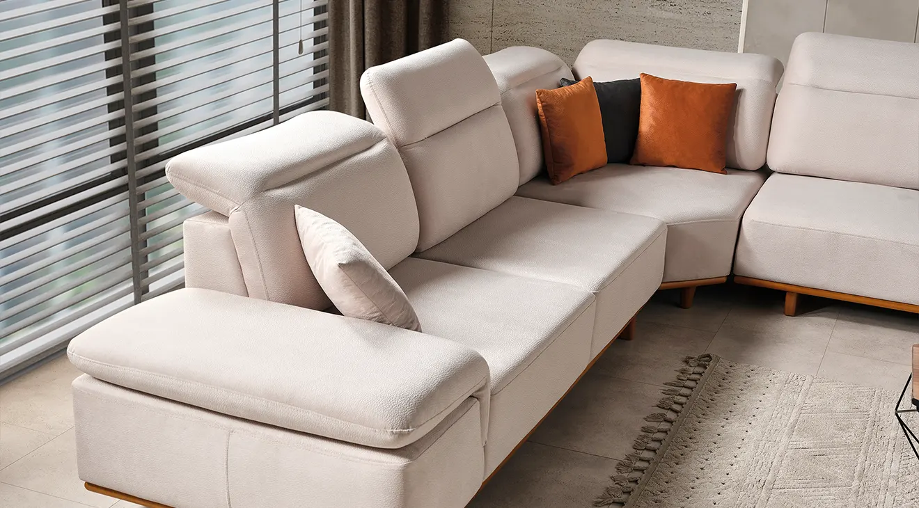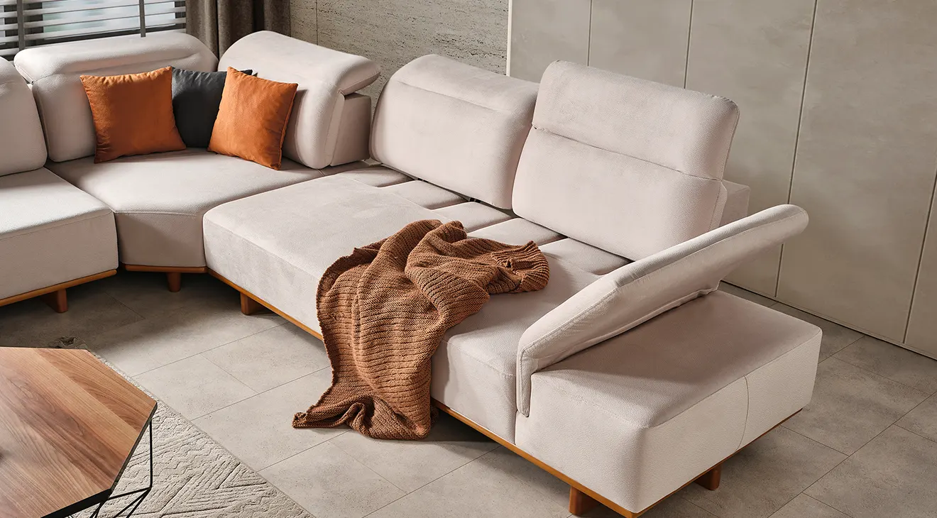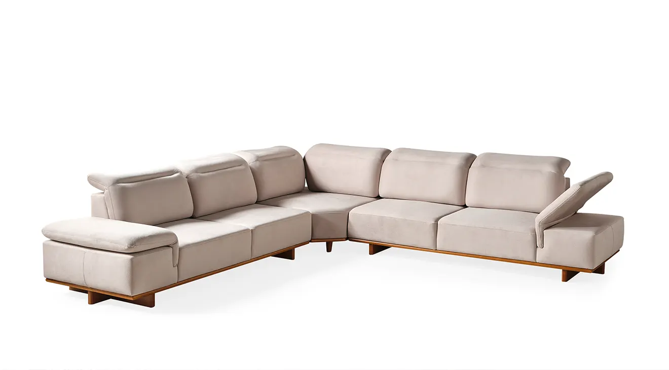 Lotus Modern Ahşap Ayaklı Köşe Koltuk Takımı: Şık çizgiler, rahat oturuş ve doğal ahşap detaylarla modern oturma odalarına sıcaklık katın.