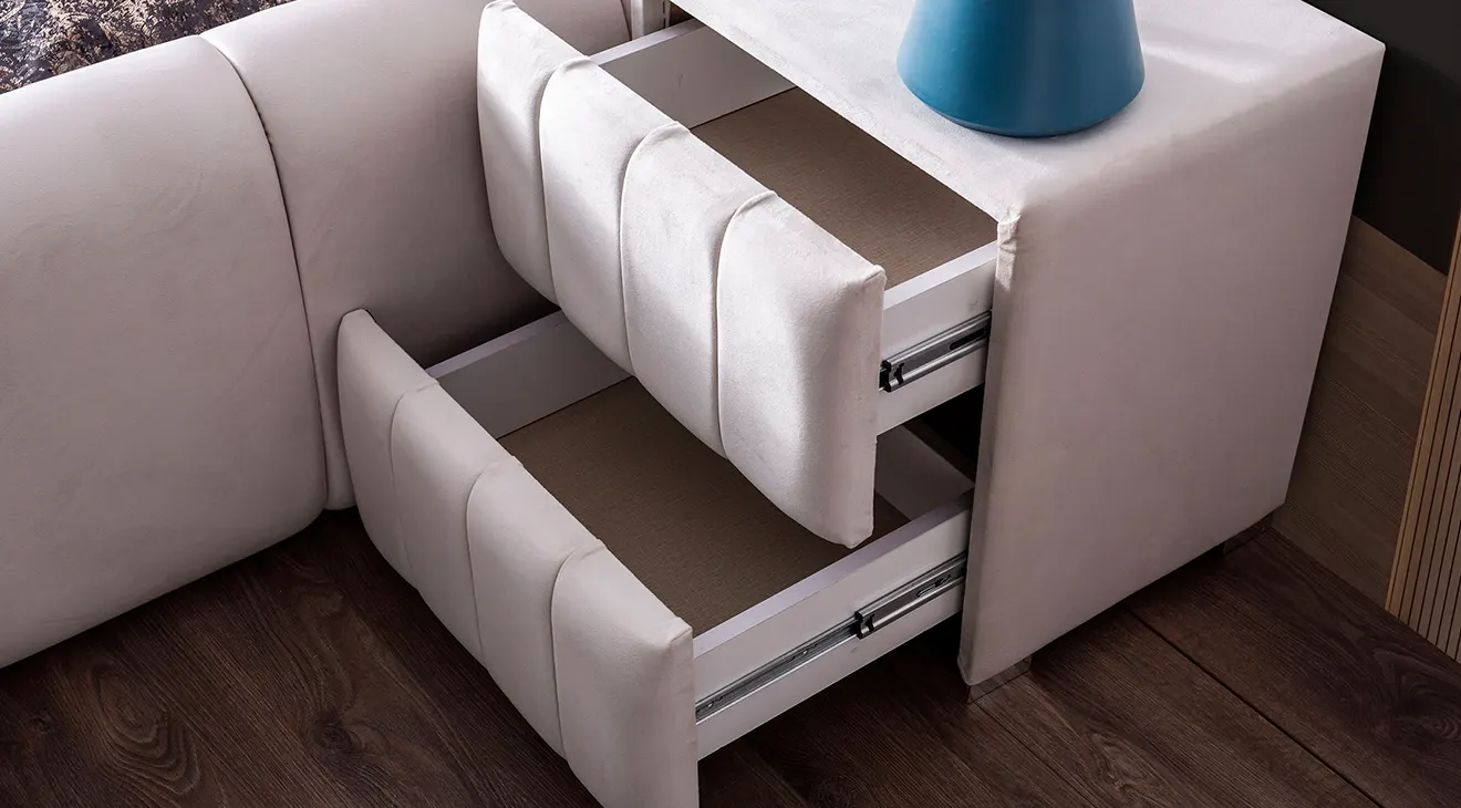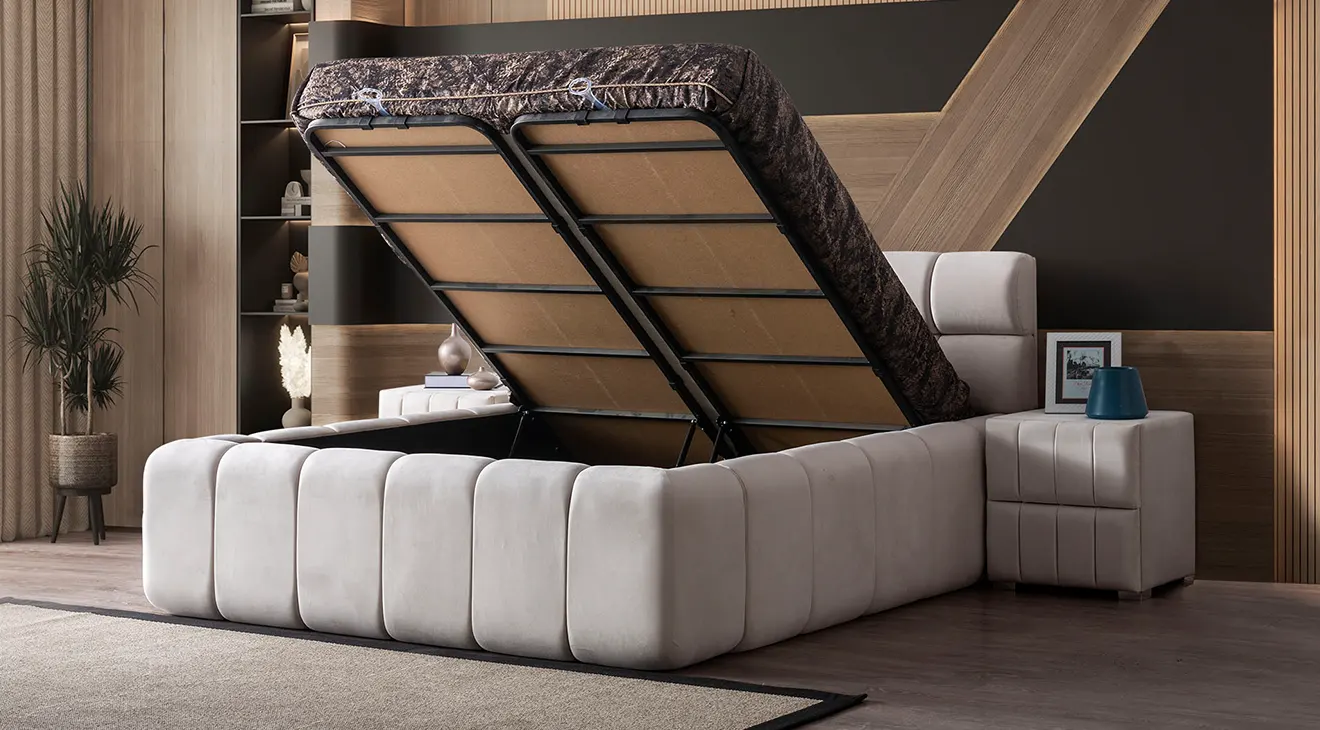 Takım içeriğindeki standart karyola bazalıdır.