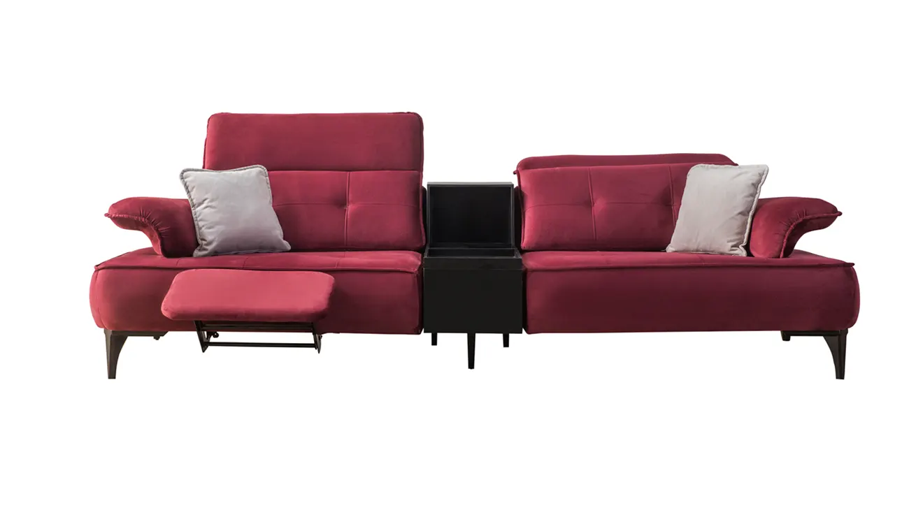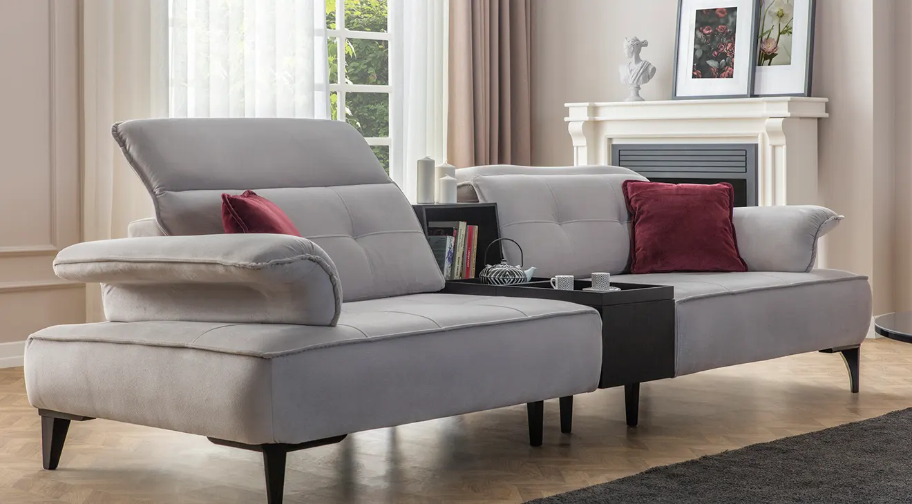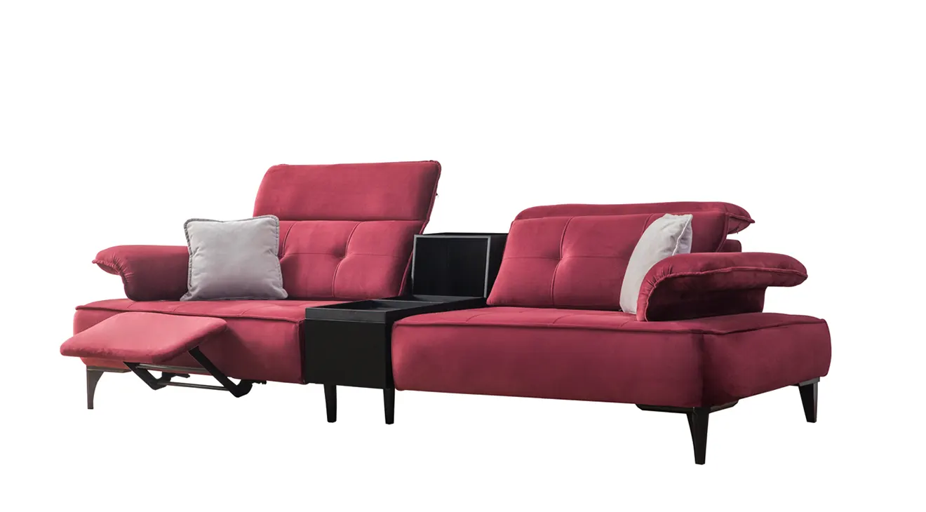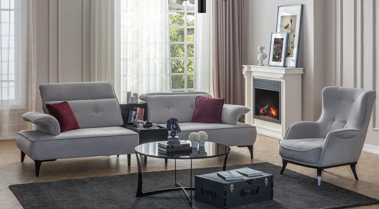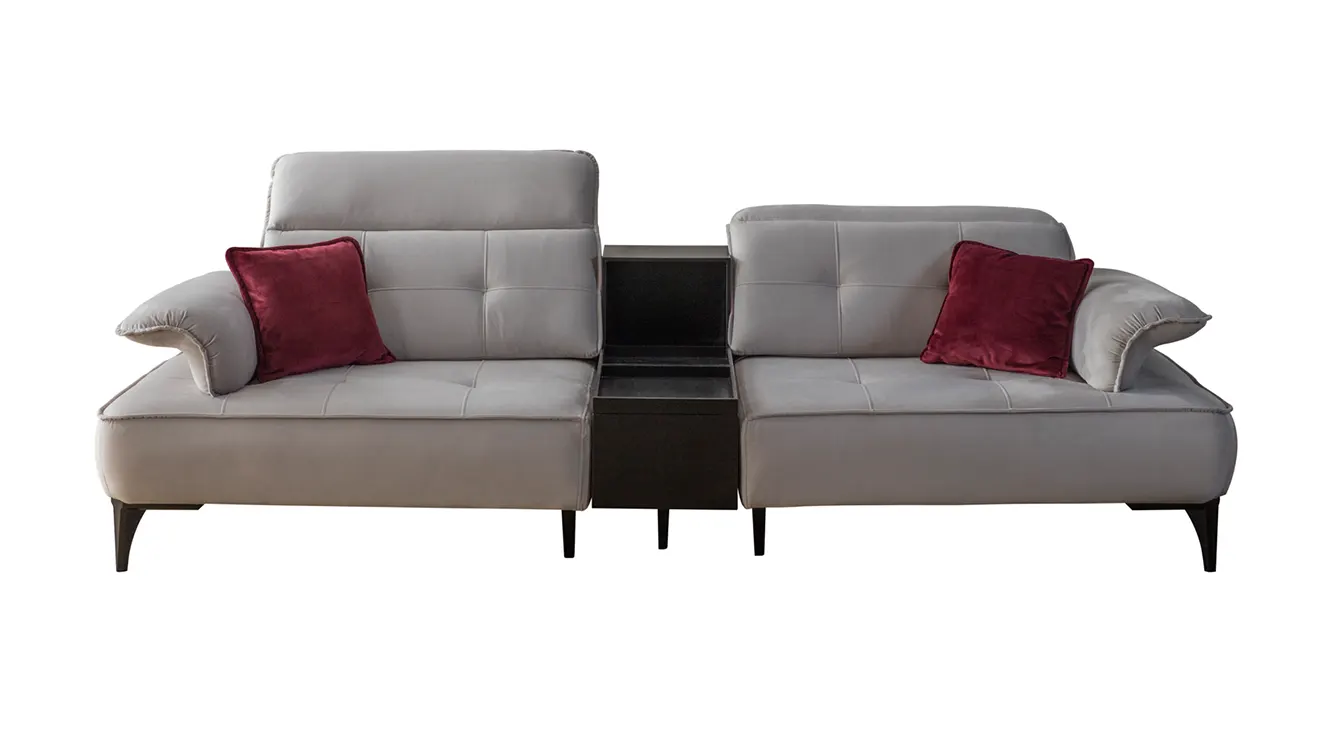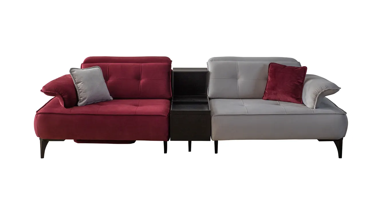Milano Modern Koltuk Takımı, gri ve bordo renk kombinasyonuyla salonunuza zenginlik katar. Ayarlanabilir başlıklar, derin oturma minderi ve yumuşak dokunuşlu kumaşıyla kişiye özel rahatlık sağlarken, ortadaki pratik sehpa modülü kitap ve atıştırmalıklar için ideal bir saklama alanı sunar. İnce metal ayaklar, havadarlık hissi verir; canlı renk vurguları ise mekâna modern bir enerji katar. Milano, şıklığı ve işlevselliği bir araya getirerek evinizde sıcak ve çağdaş bir atmosfer oluşturur.