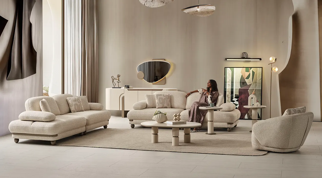 Mokka Yataklı Koltuk Takımı, yumuşak dokulu kumaşı ve yuvarlatılmış hatlarıyla salona sıcak, modern bir ifade kazandırır. Geniş oturum derinliği ve destekleyici sırt minderleri günlük konforu artırırken, tek hamlede açılan yatak mekanizması misafirler için pratik bir uyku alanı sunar. İkili-modüler gövde farklı yerleşimlere uyum sağlar; kompakt ölçüleriyle küçük/orta ölçekli yaşam alanlarında da rahatça kullanılır. Dayanıklı iskelet yapısı, heykelsi yuvarlak ayaklar ve uzun ömürlü sünger formu sayesinde yıllarca ilk günkü görünümünü korur. Renk ve kumaş alternatifleriyle kişiselleştirilebilir.