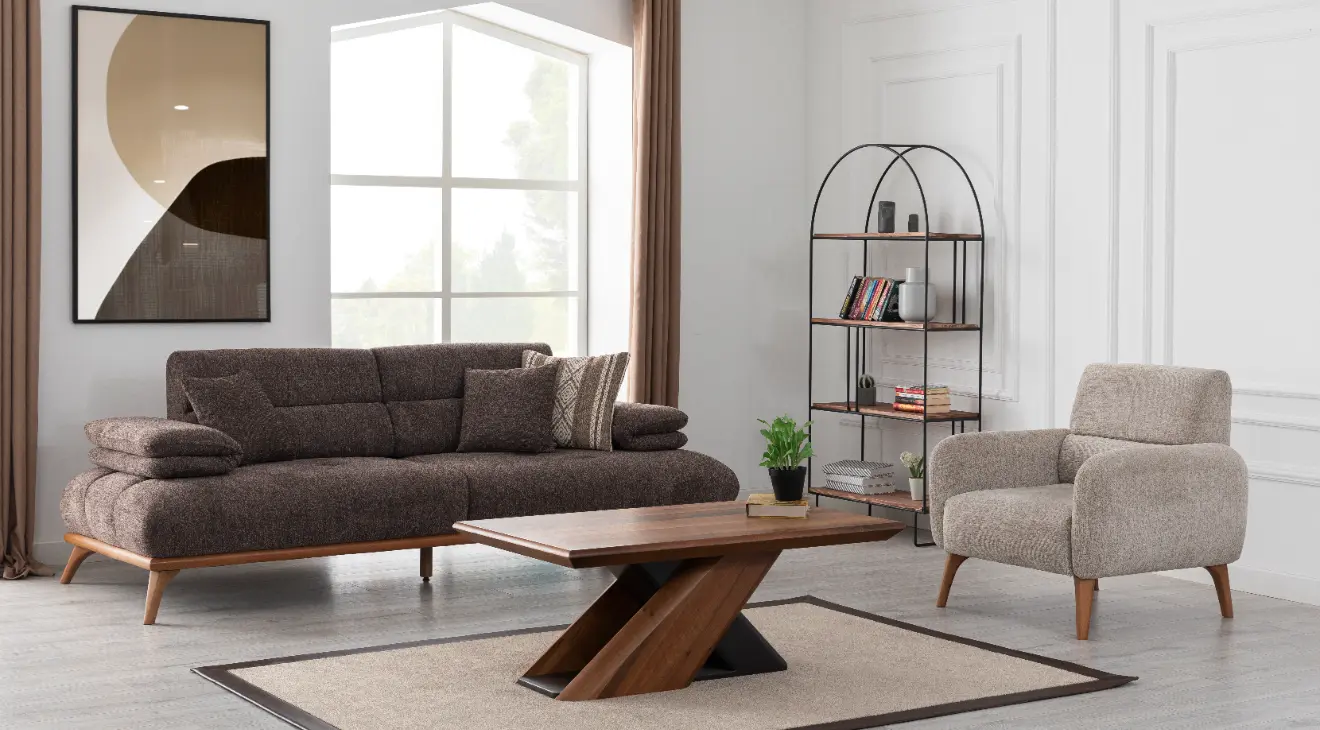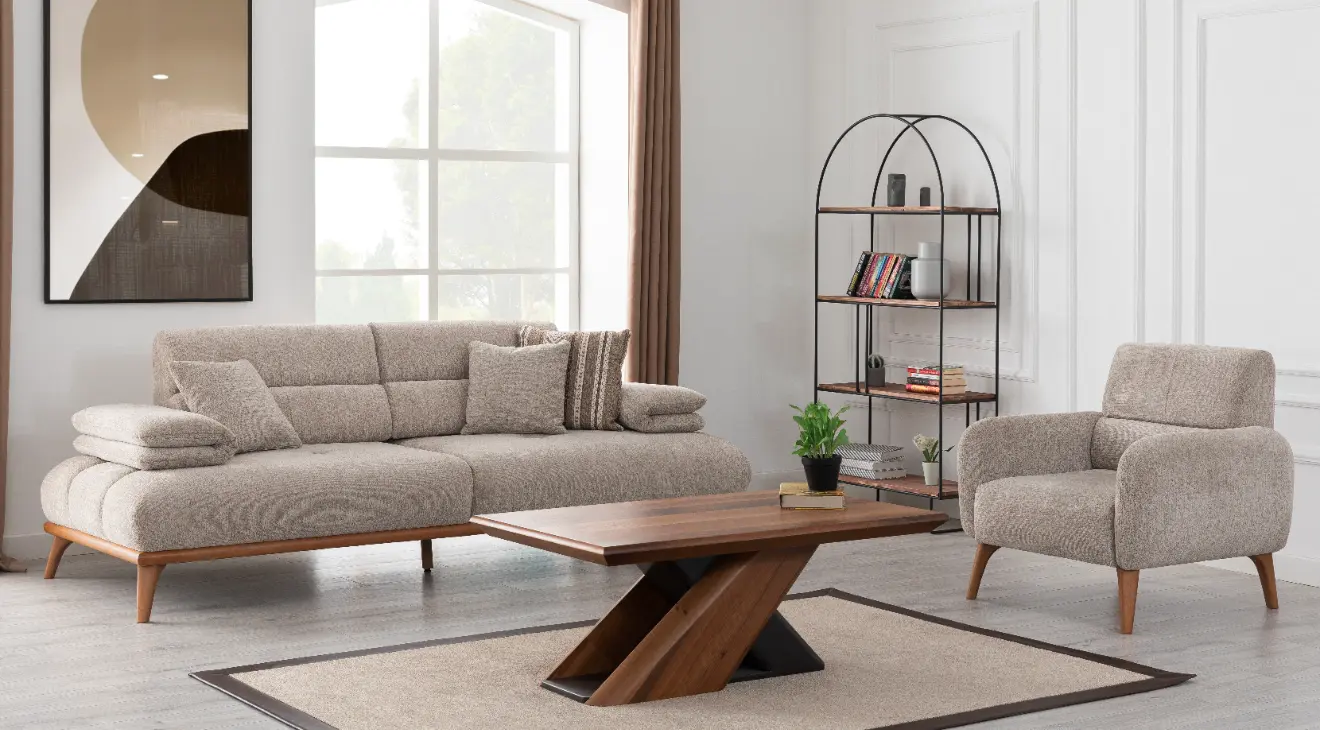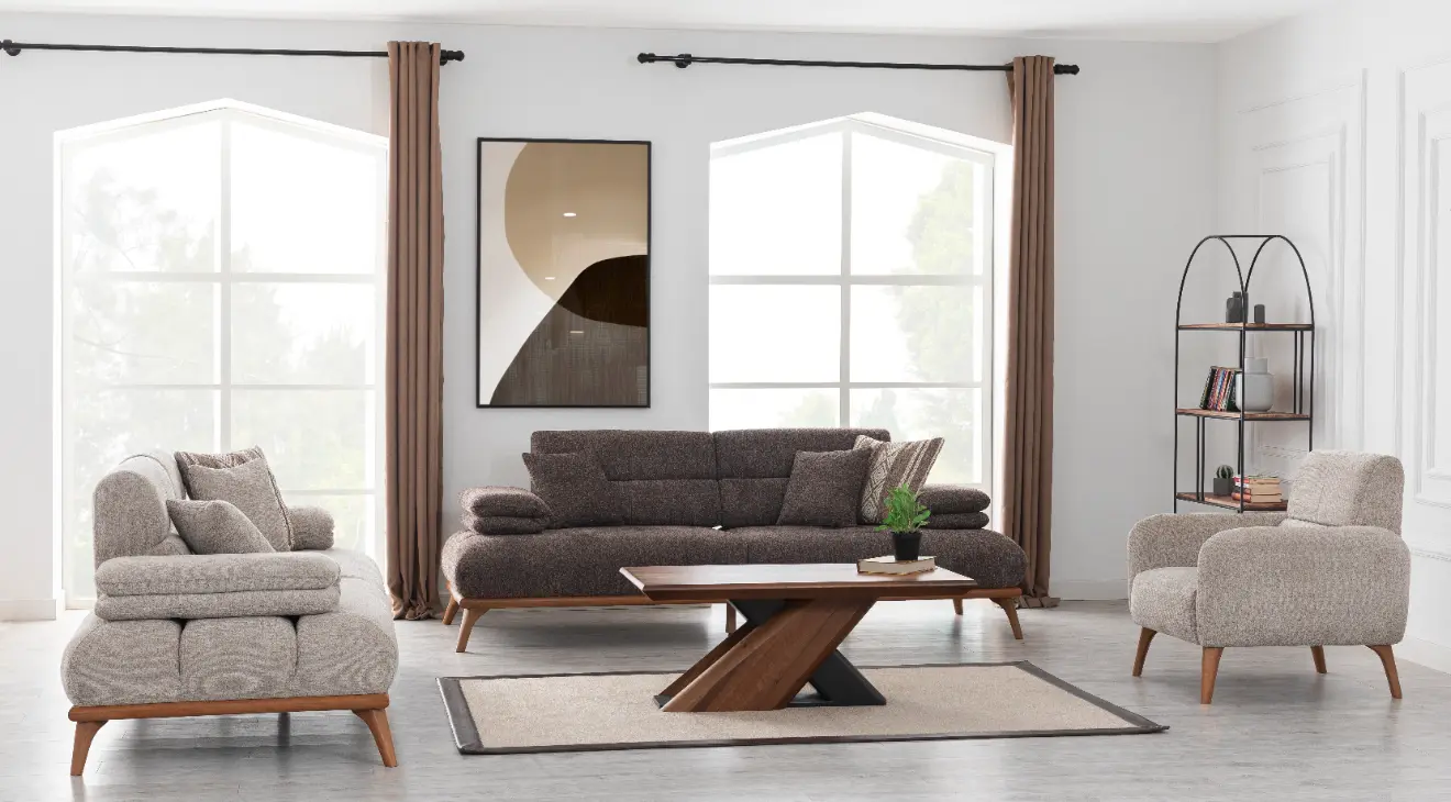 Monza Ahşap Ayaklı Yataklı Koltuk Takımı