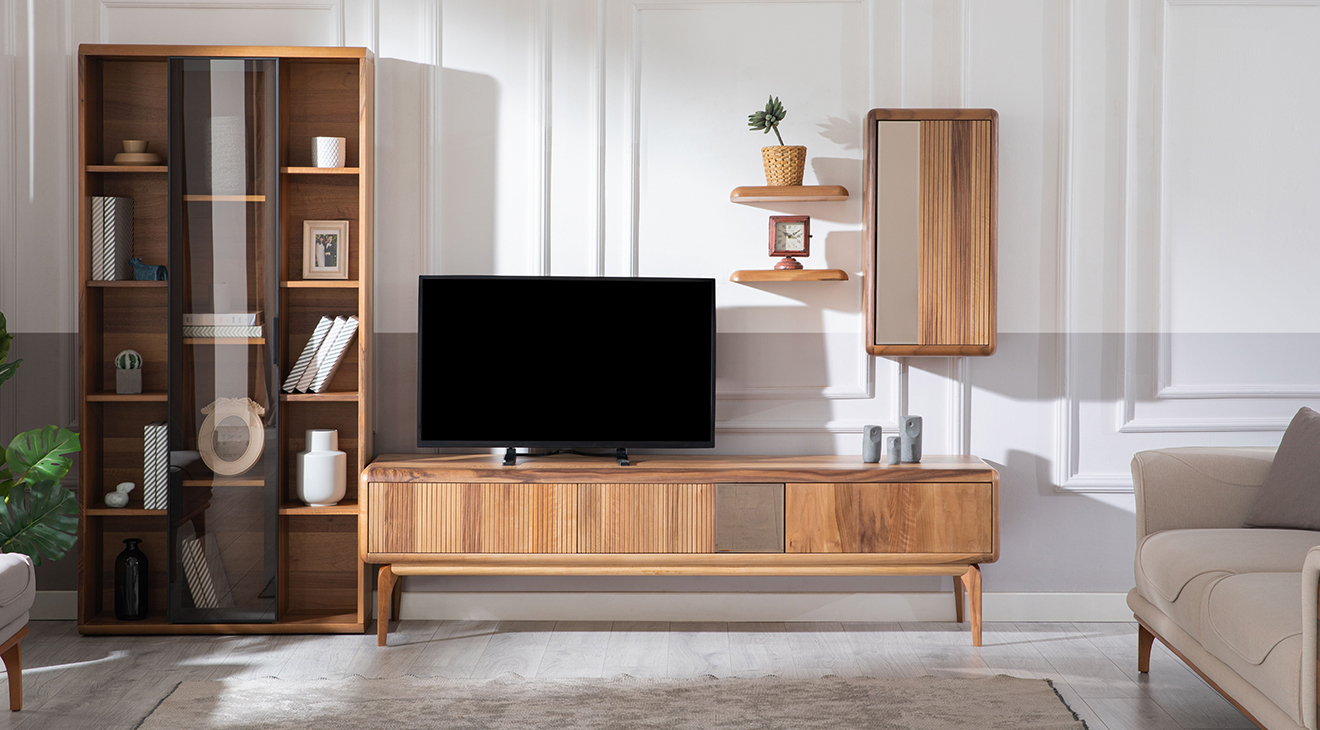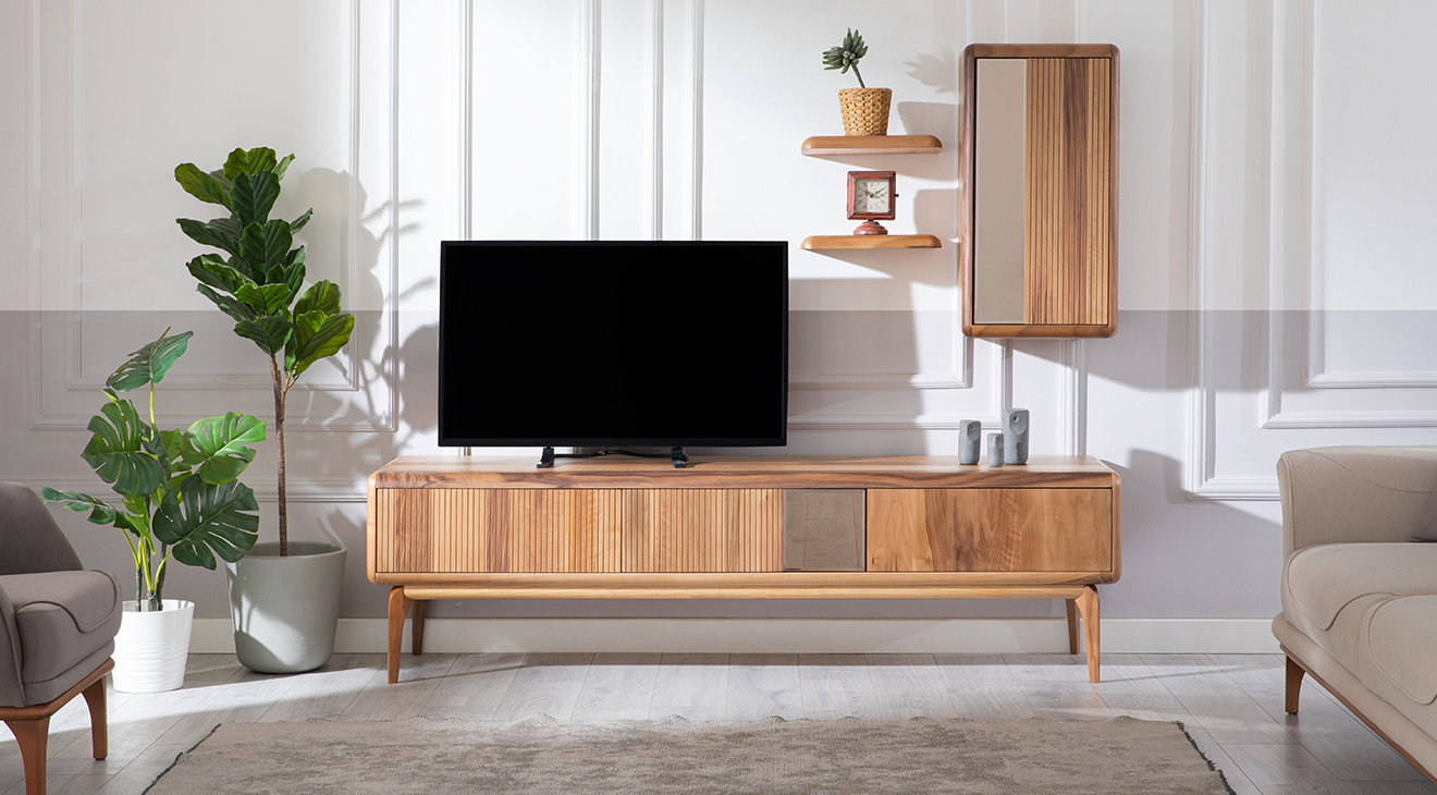 Mos Ceviz Ahşap Ayaklı Tv Ünitesi modern tasarımının yanı sıra ahşap modeli ile dikkatleri üzerine çekmektedir. Sizlere bu tasarımı mobilyamevime de!