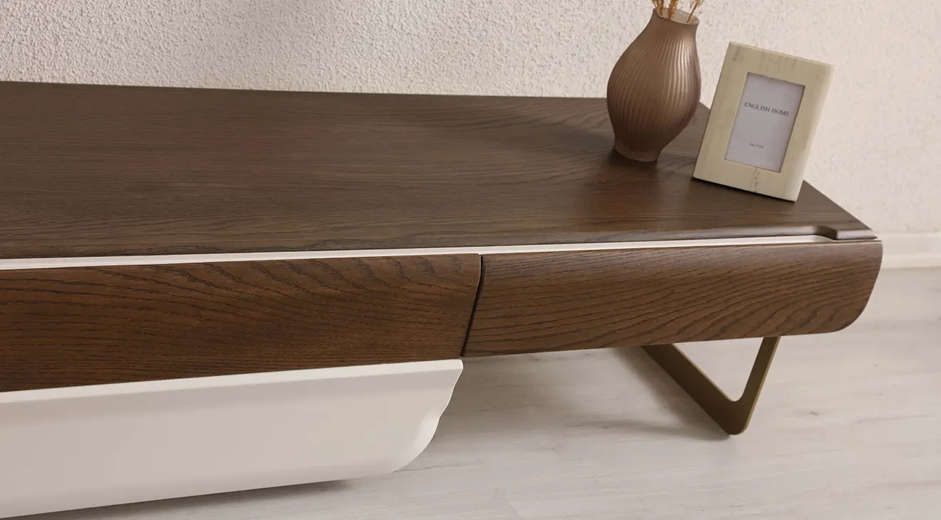 Nairobi Modern Ceviz TV Ünitesi, doğal ceviz dokusu ile zarif krem yüzeyleri buluşturarak salonunuzda sıcak ve modern bir TV alanı oluşturur. Yuvarlatılmış hatlara sahip geniş TV sehpası, kapaklı depolama bölmeleri ve zarif metal ayak detayıyla hem estetik hem de işlevsel bir çözüm sunar. Duvar panellerine entegre raf sistemi, kitaplarınızı ve dekoratif objelerinizi sergileyebileceğiniz şık bir düzenleme alanı yaratır. İnce düşünülmüş çizgileri, gizli kulp detayları ve yumuşak geçişleriyle Nairobi, İnegöl mobilya kalitesi sayesinde uzun yıllar konforlu ve düzenli bir kullanım vaat eder.