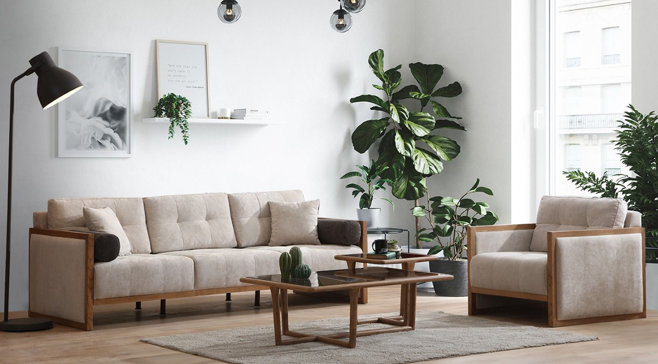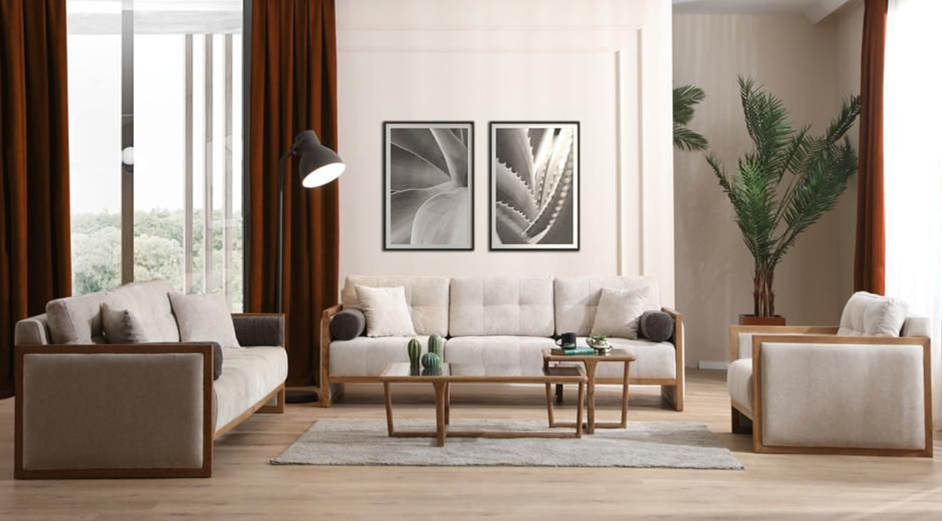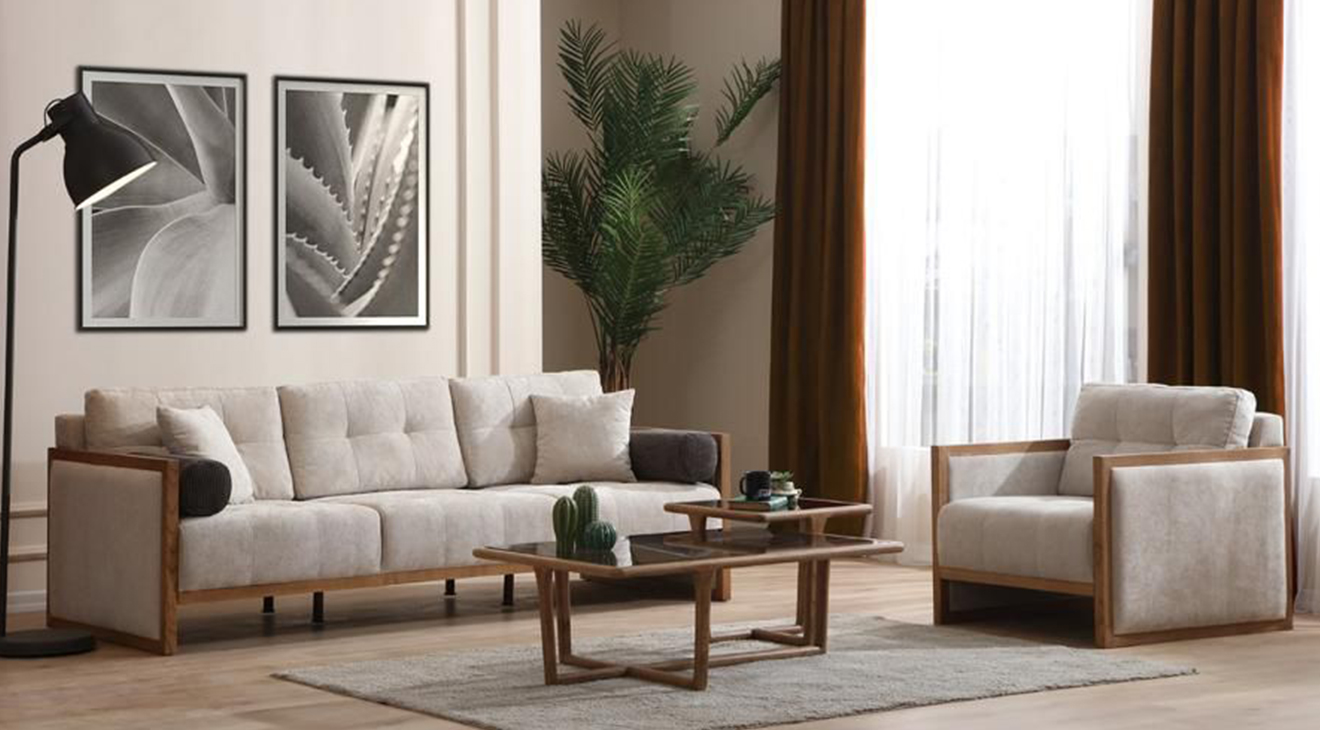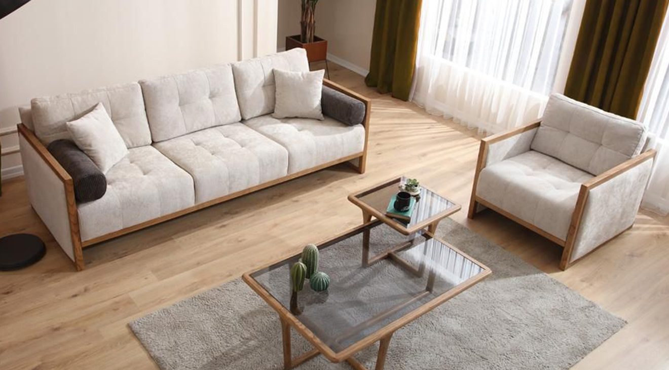 Naturel Modern Koltuk Takımı, krem renkleri, ahşap ayakları ve modern tasarımı ile mobilyamevime.com ve mobilyamevime de sizlere sunuyoruz