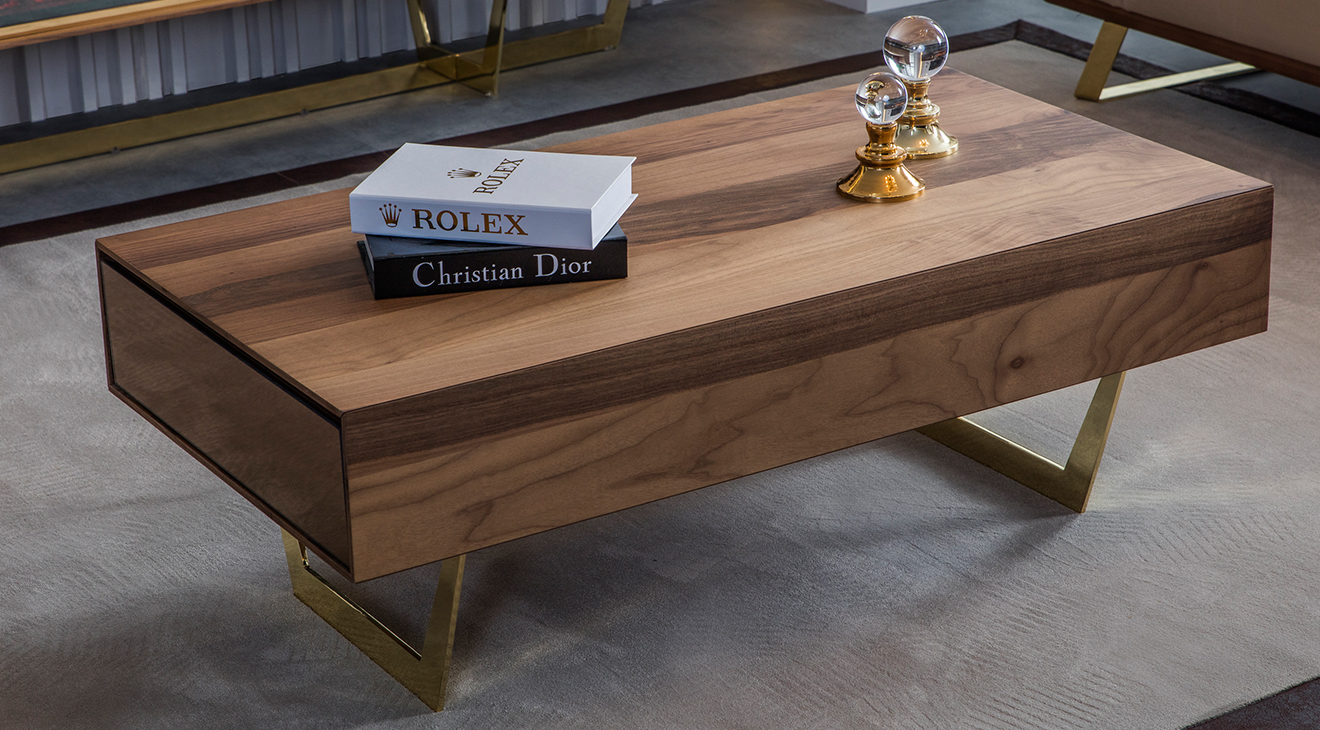 Ceviz ahşap malzemesi, çekmece modülü, gold metal ayakları ile modern hava yakalayan Nest Çekmeceli Gold Metal Ayaklı Orta Sehpa (Ceviz) mobilyamevime.com ve mobilyamevime mağazalarında sizlere sunuyoruz
