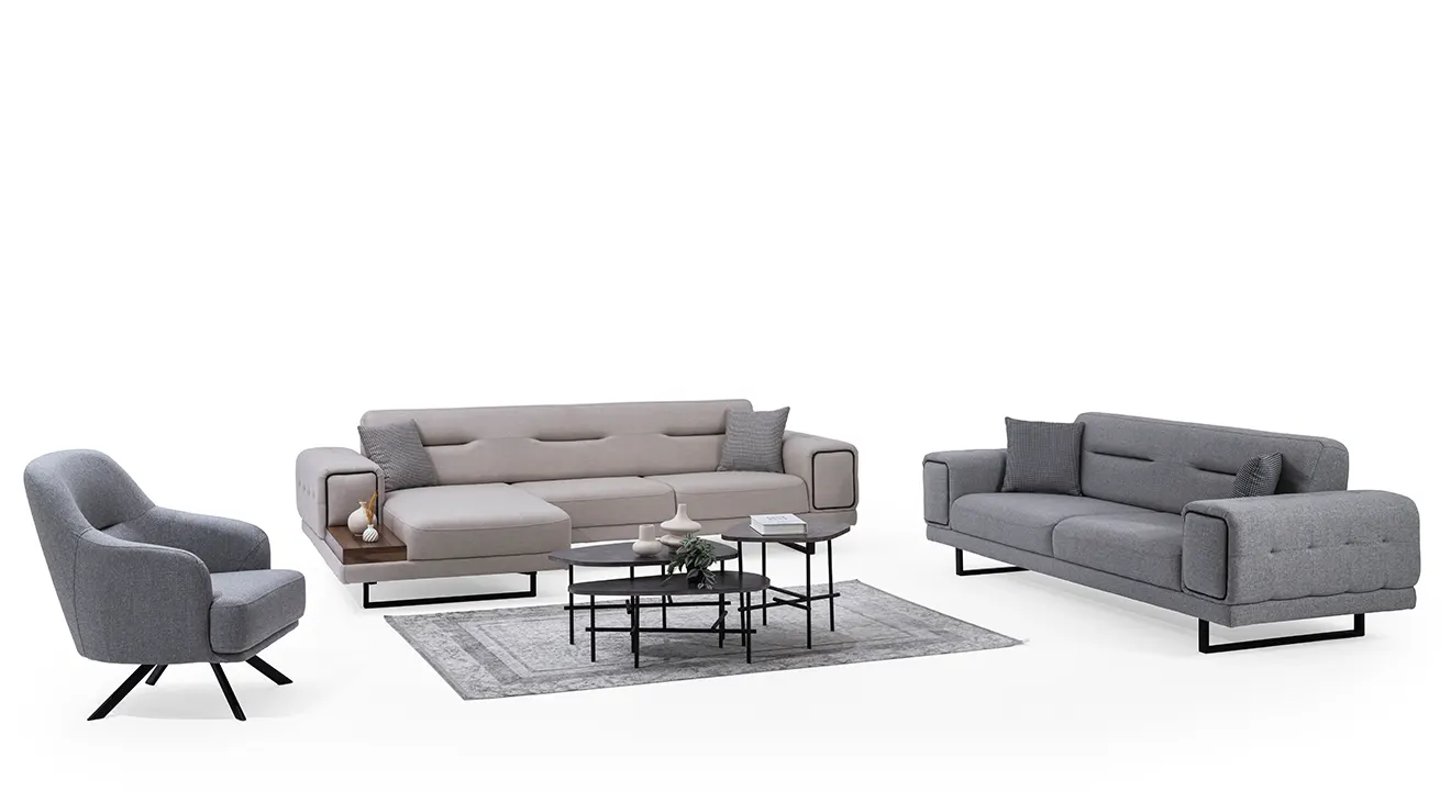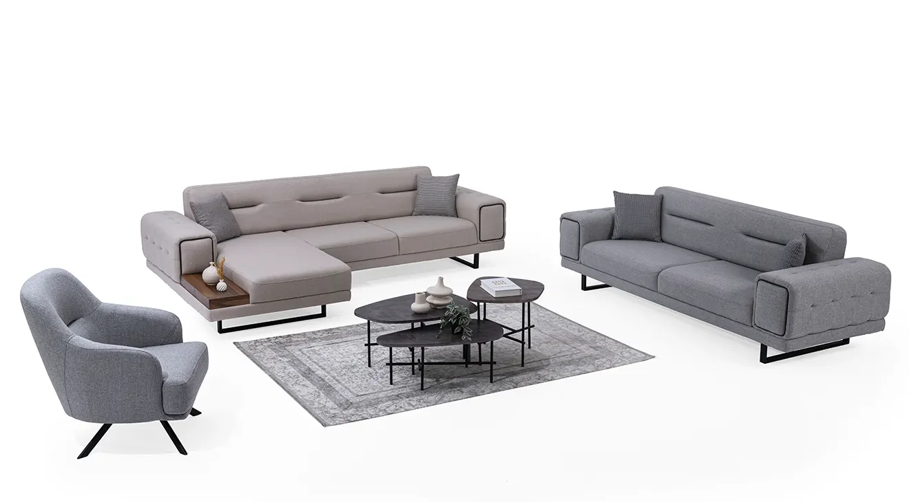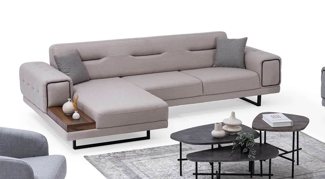 New Montana Kanepeli Köşe Koltuk Takımı, modern tasarımı ve fonksiyonel özellikleriyle yaşam alanınıza şıklık katıyor. Rahat oturum sunan ergonomik yapısı ve kaliteli kumaşıyla uzun yıllar dayanıklılık sağlar. Geniş oturma alanı ve şık metal detaylarıyla hem estetik hem de kullanışlı bir tasarım sunar. İnegöl mobilya k