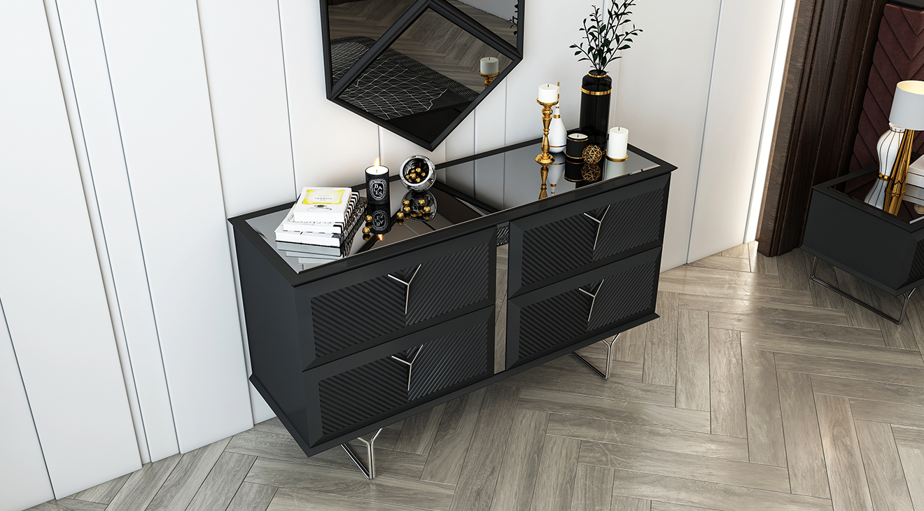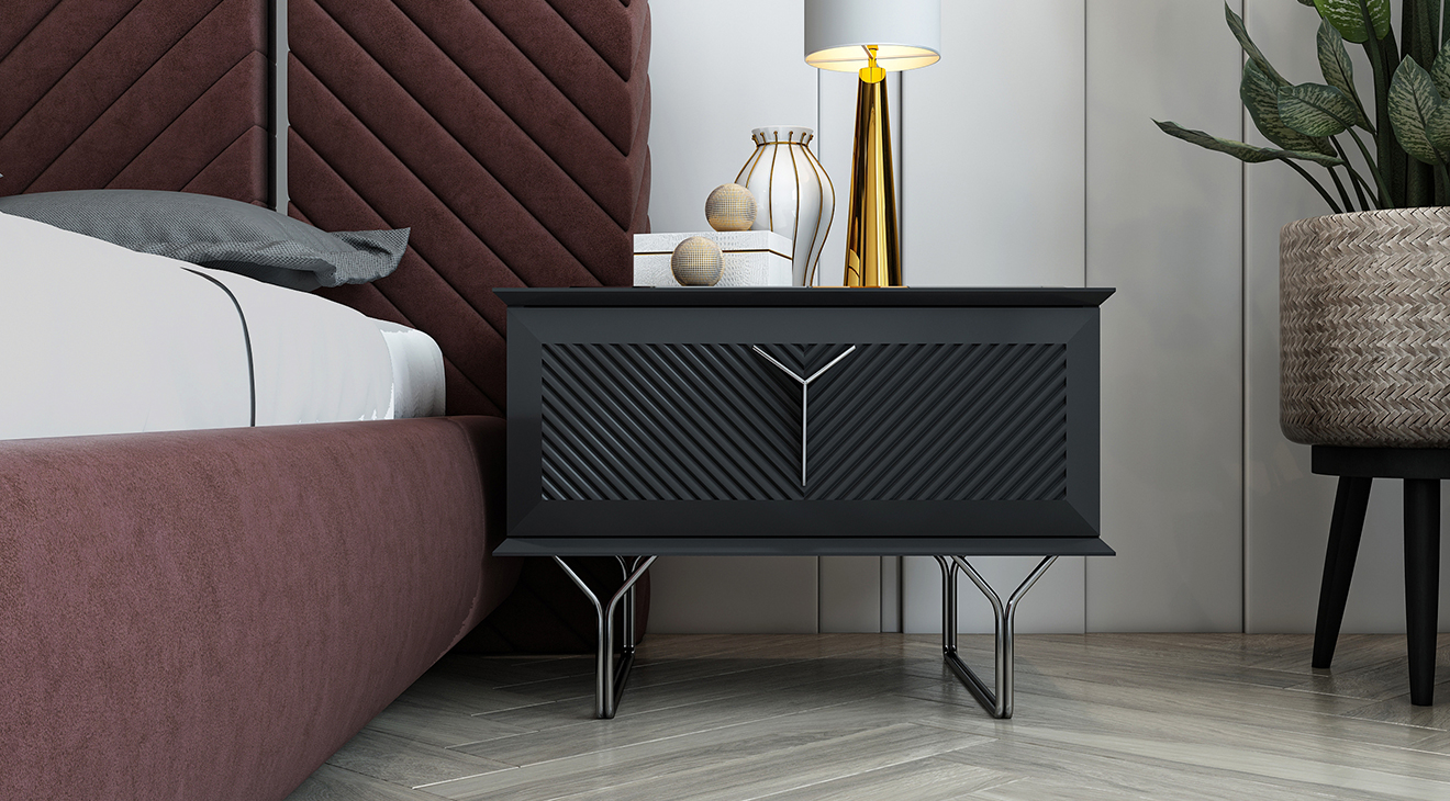 Nova Antrasit Yatak Odası Takımı, antrasit rengi, işlemeleri ve modern tasarımı ile mobilyamevime.com ve mobilyamevime mağazalarında sizlere sunuyoruz.