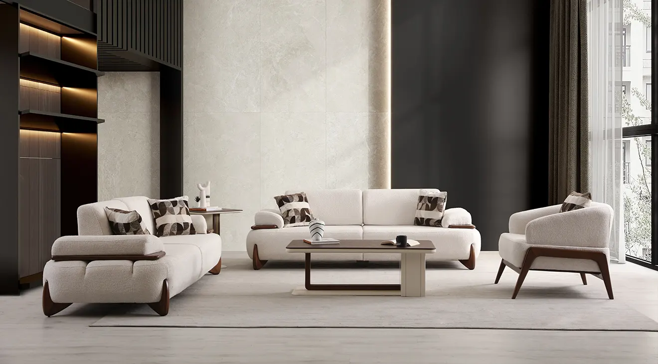 Panda Ahşap Ayaklı Yataklı Koltuk Takımı, kahverengi ve bryaz rengi, ahşap ayakları, yatak olma fonksiyonu ve modern tasarımı ile mobilyamevime'de