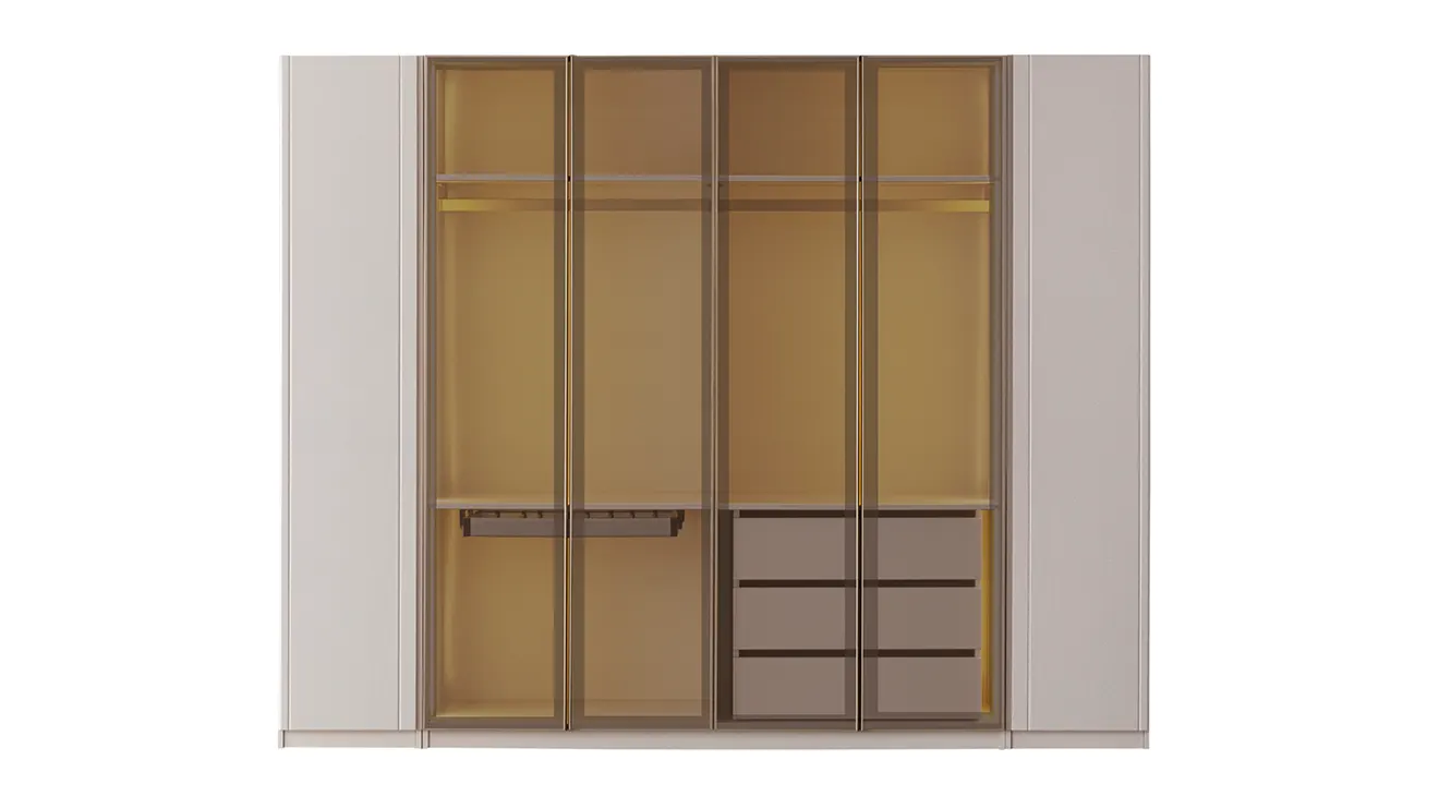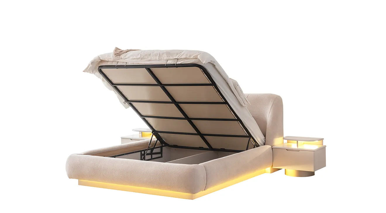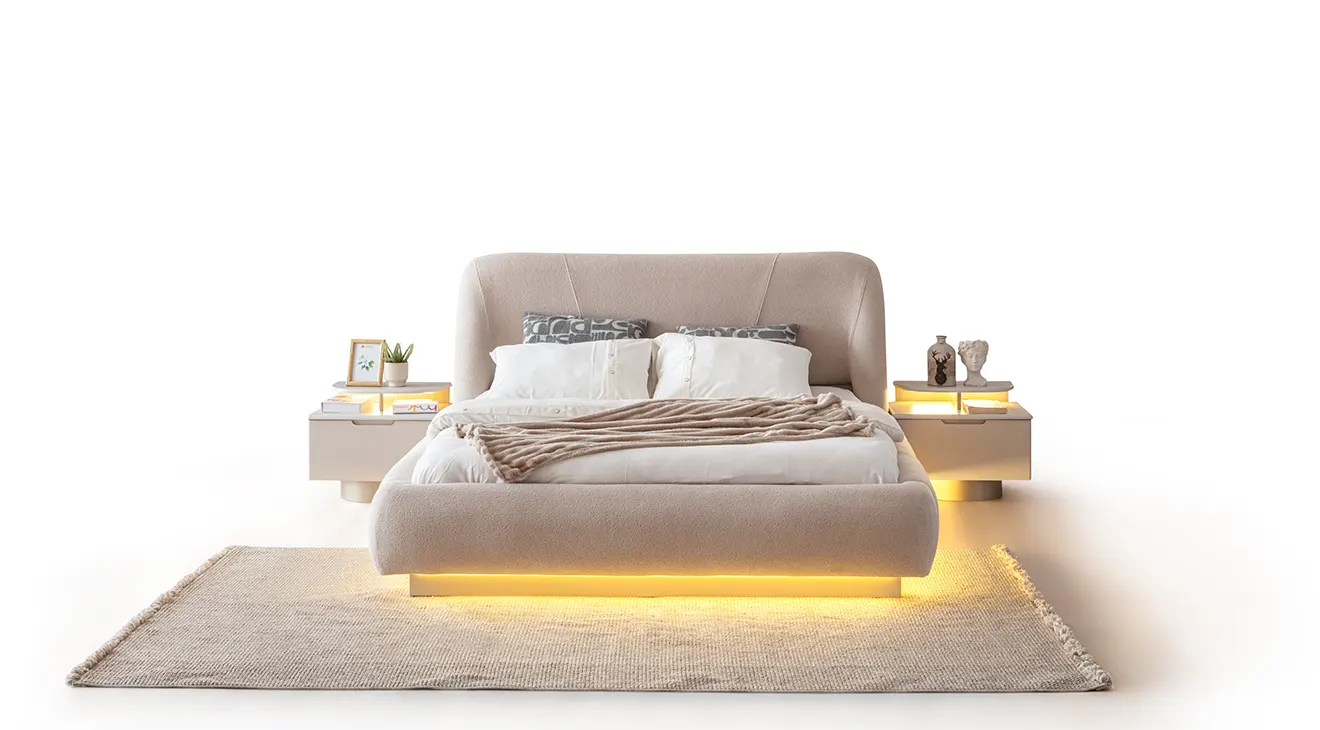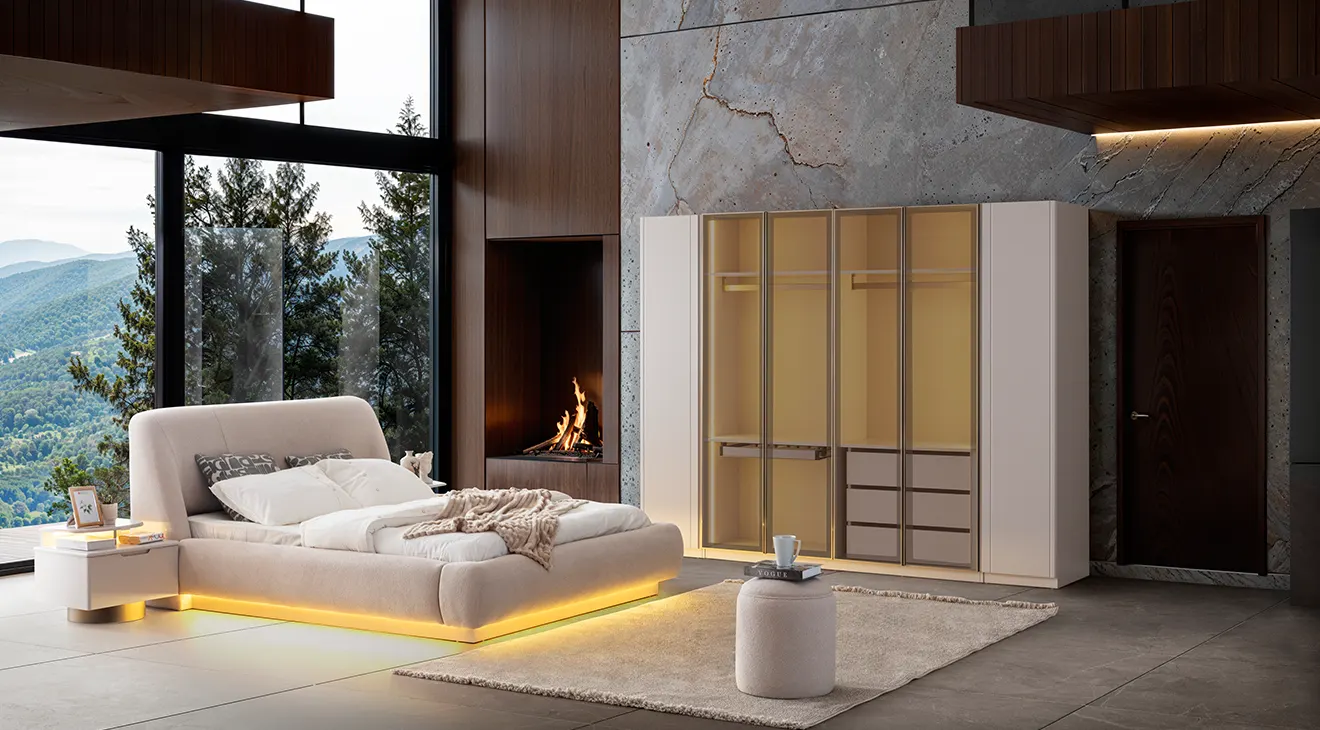 Paris 6 Kapaklı Modern Yatak Odası Takımı, sıcak bej tonları ve zarif aydınlatma detaylarıyla lüks otel konforunu evinize taşır. Yumuşak döşemeli karyola, yerden yüksek tasarımı ve geniş sandık alanı sayesinde hem şık hem de son derece fonksiyoneldir. Taban boyunca uzanan LED ışık şeridi, gece kullanımında yumuşak bir ambiyans sağlar. LED’li üst raflara sahip komodinler, çekmeceli yapısıyla günlük eşyalar için pratik depolama sunar. Koleksiyonun göz alıcı parçası olan 6 kapaklı gardırop; bronz cam panelleri, entegre iç aydınlatması, geniş askı bölümleri, çekmeceleri ve raflarıyla kıyafetlerinizi düzenli ve ulaşılabilir kılar. Paris yatak odası takımı, modern çizgileri ve İnegöl mobilya ustalığıyla uzun yıllar keyifle kullanabileceğiniz zamansız bir şıklık vadeder.