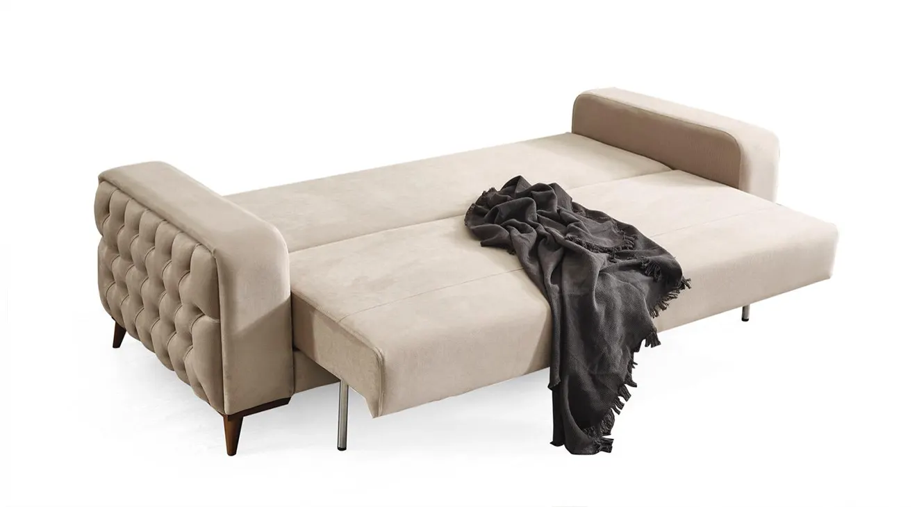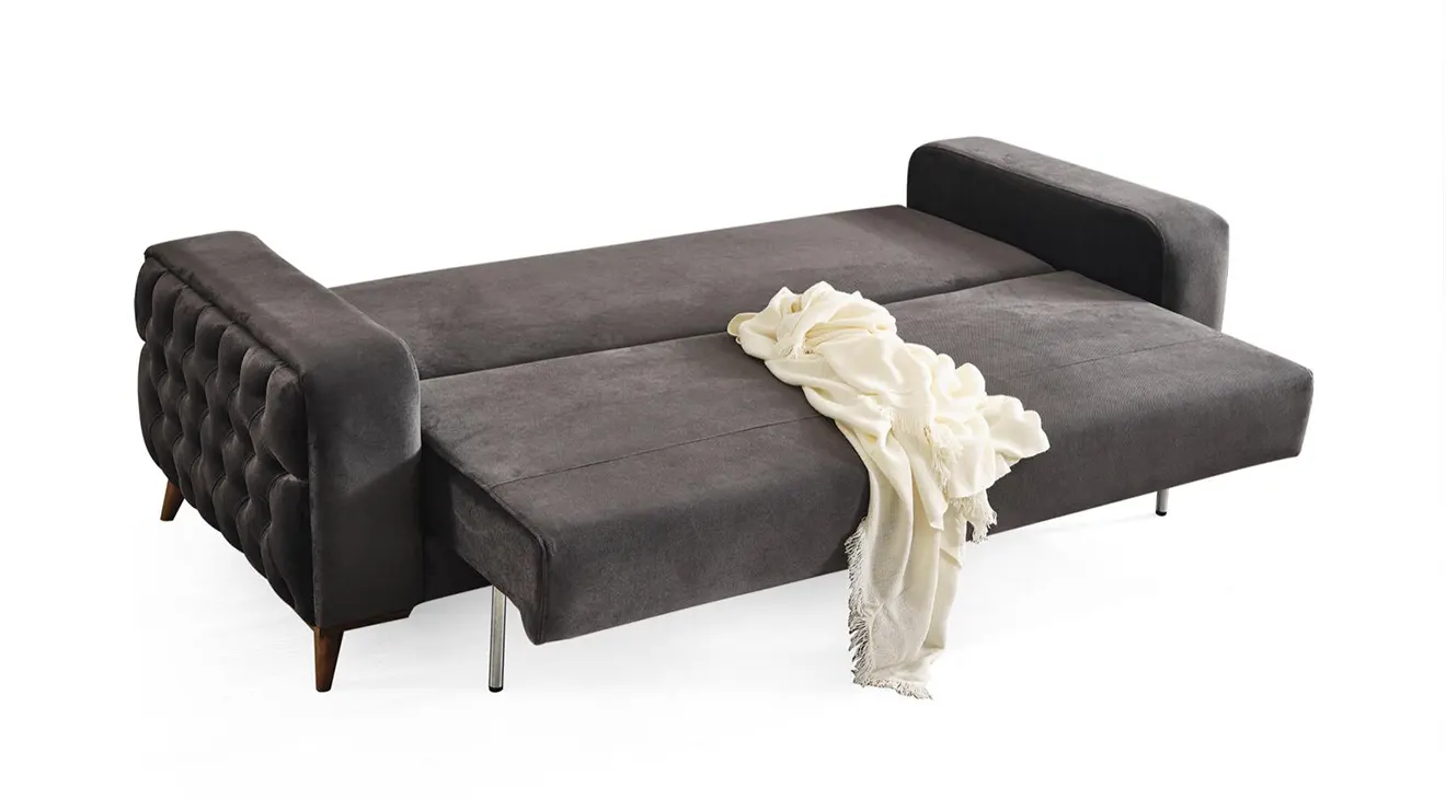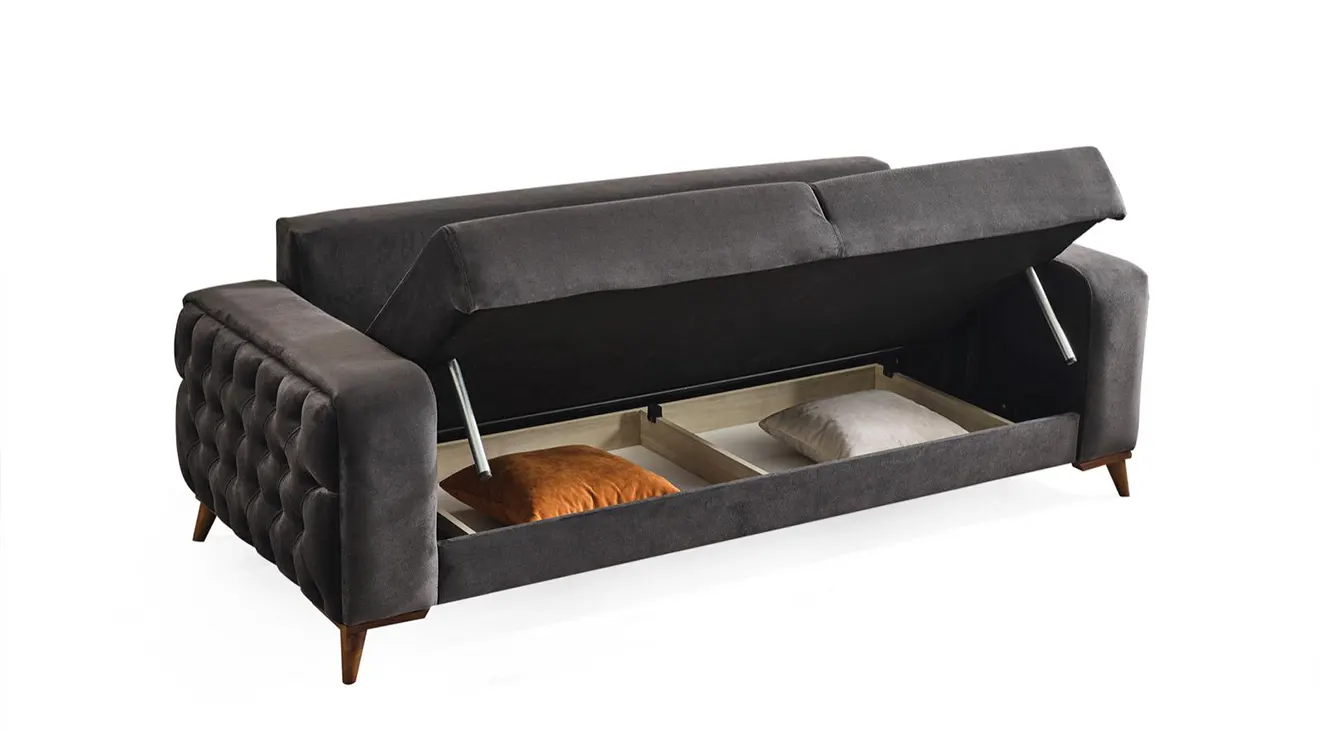 Paris yataklı ve sandıklı oturma odası takımı, modern çizgileriyle konforu depolama ile birleştiriyor. Günlük kullanımda rahat oturuş, misafir geldiğinde pratik yatak dönüşümü ve gizli depolama alanı sunar. Her mekana zarif dokunuş.