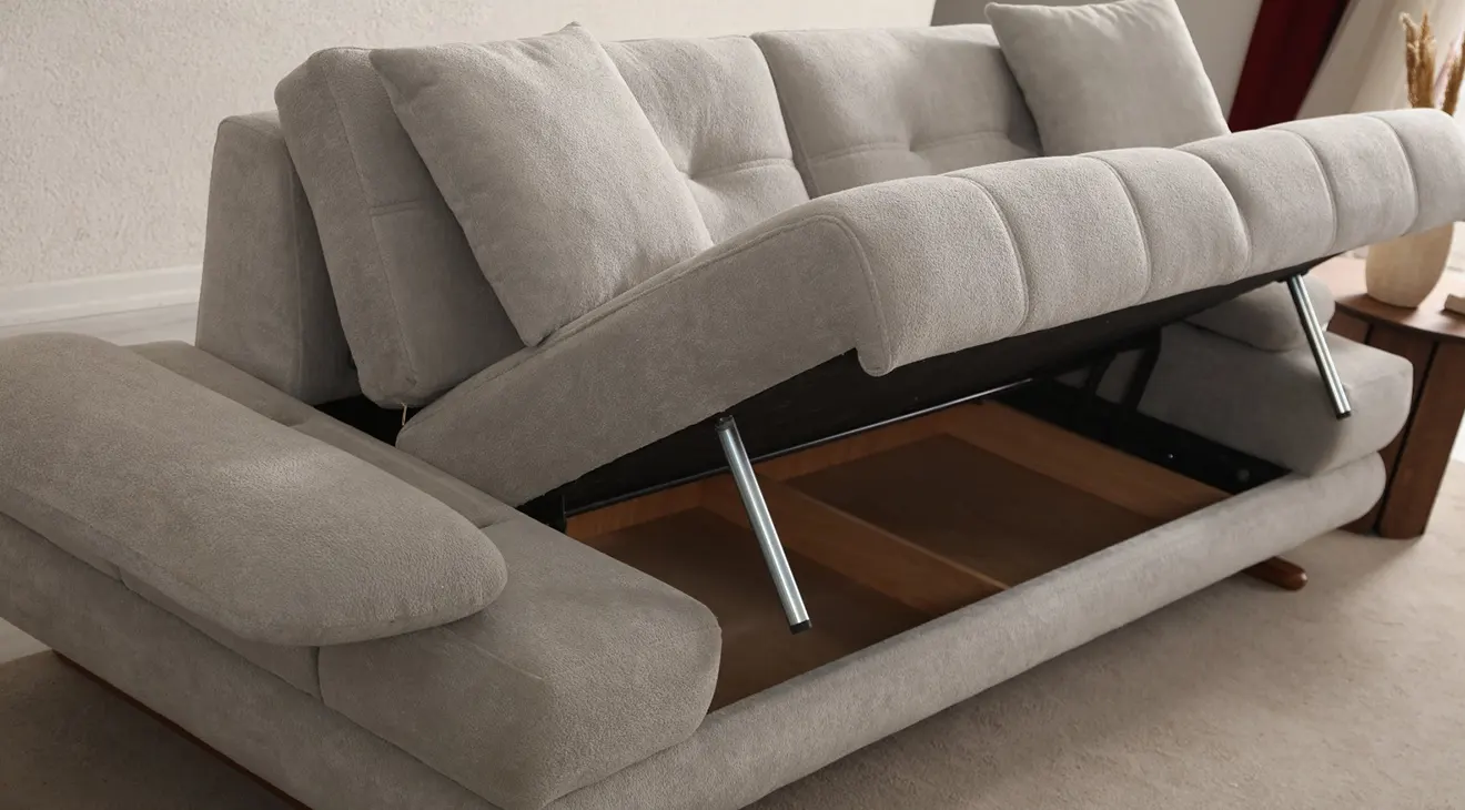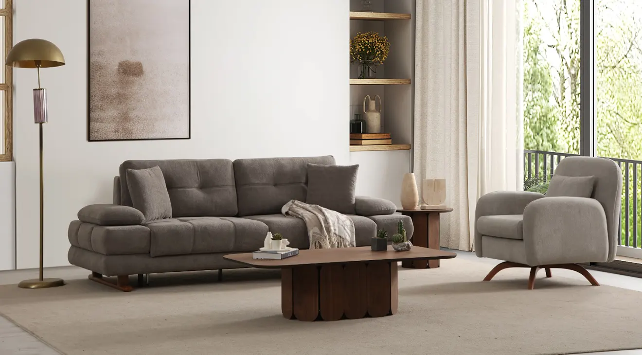 "Ahşap ayaklı Pera Takımı: şık dizayn, gizli sandık fonksiyonu ve konforlu oturuş sunar. Modern yaşam alanlarına sıcaklık katan çok yönlü oturma grubu."