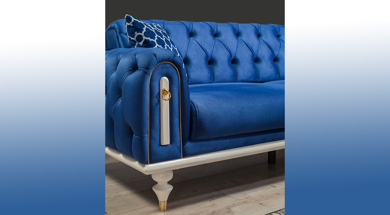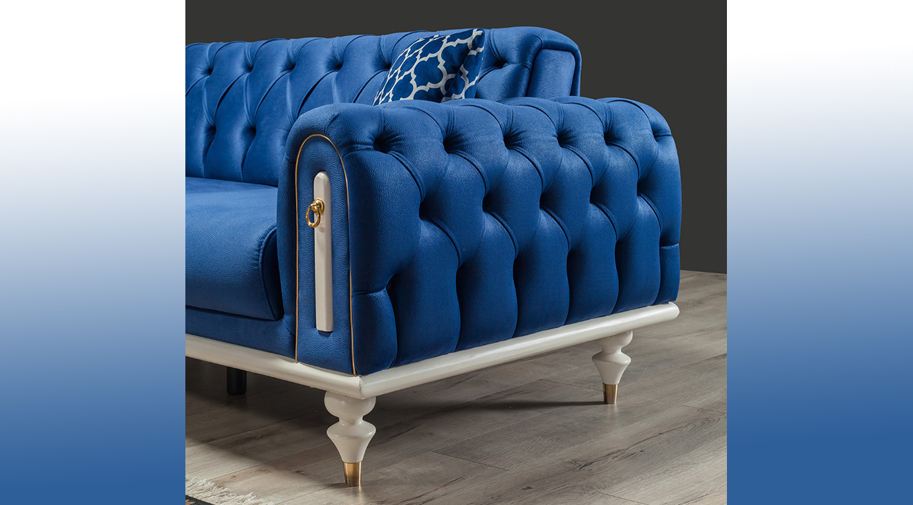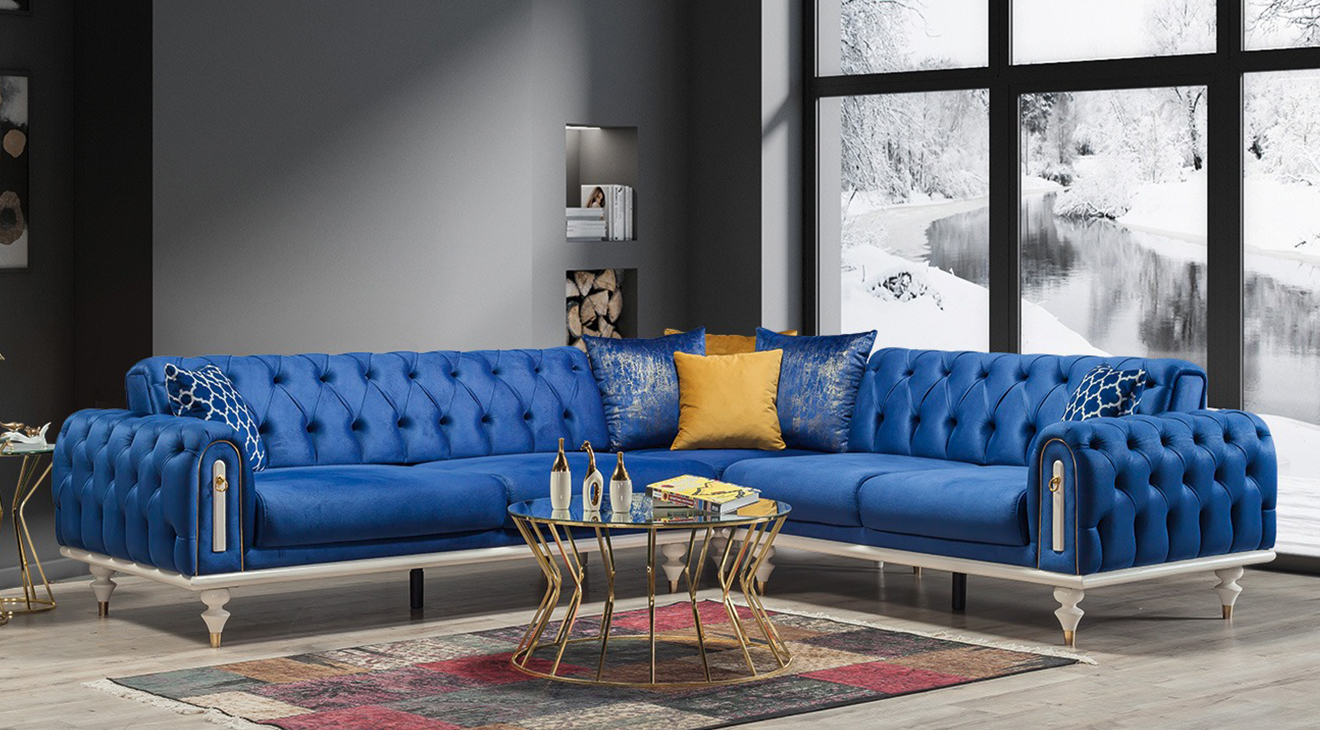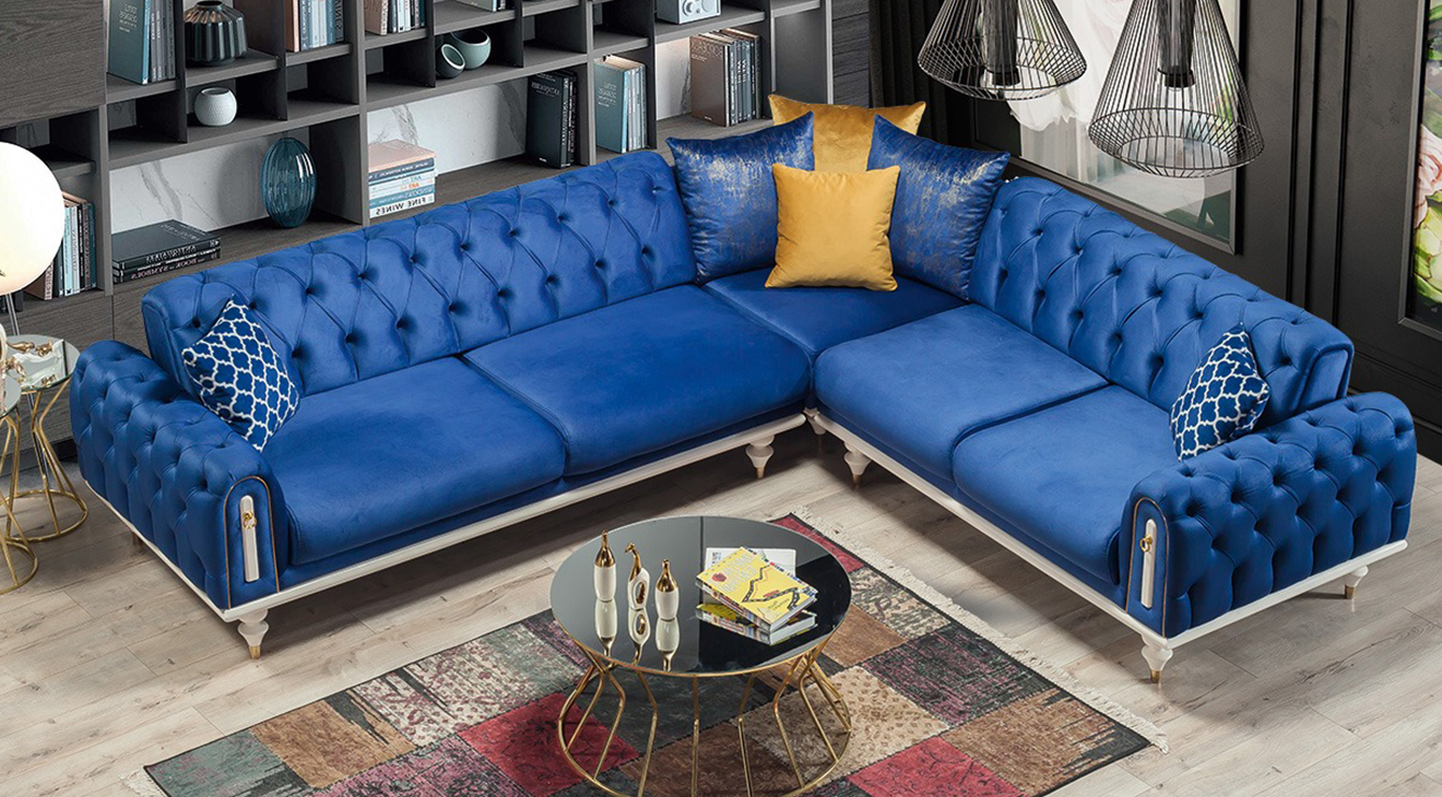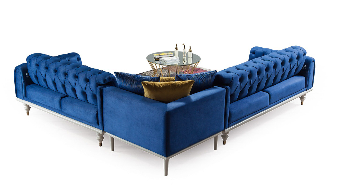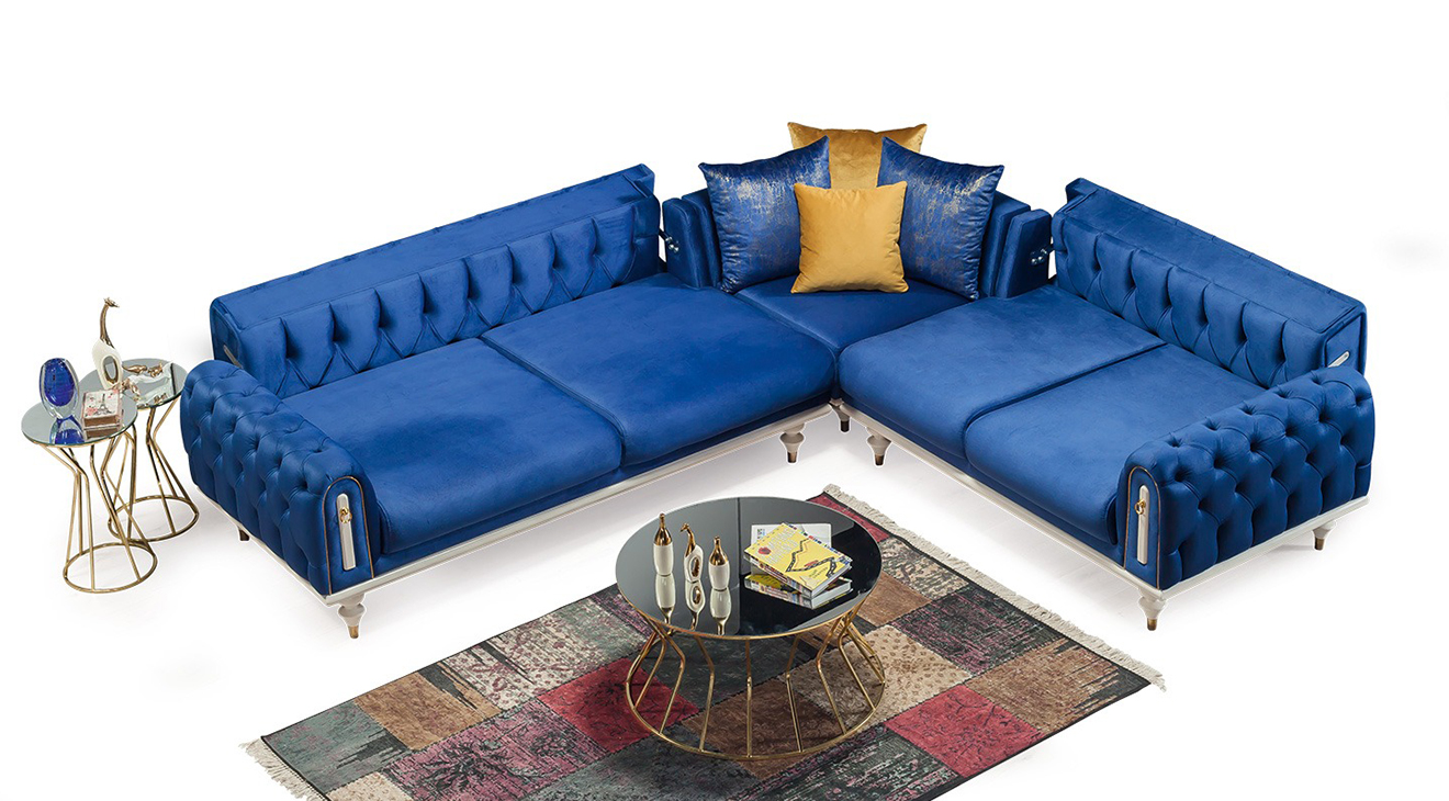 Picasso-A Yataklı Mavi Köşe Koltuk Takımı, chester köşe koltuk, yatak olma özelliği ve aytaşı ahşap ayakları ile mobilyamevime de sizlere sunuyoruz