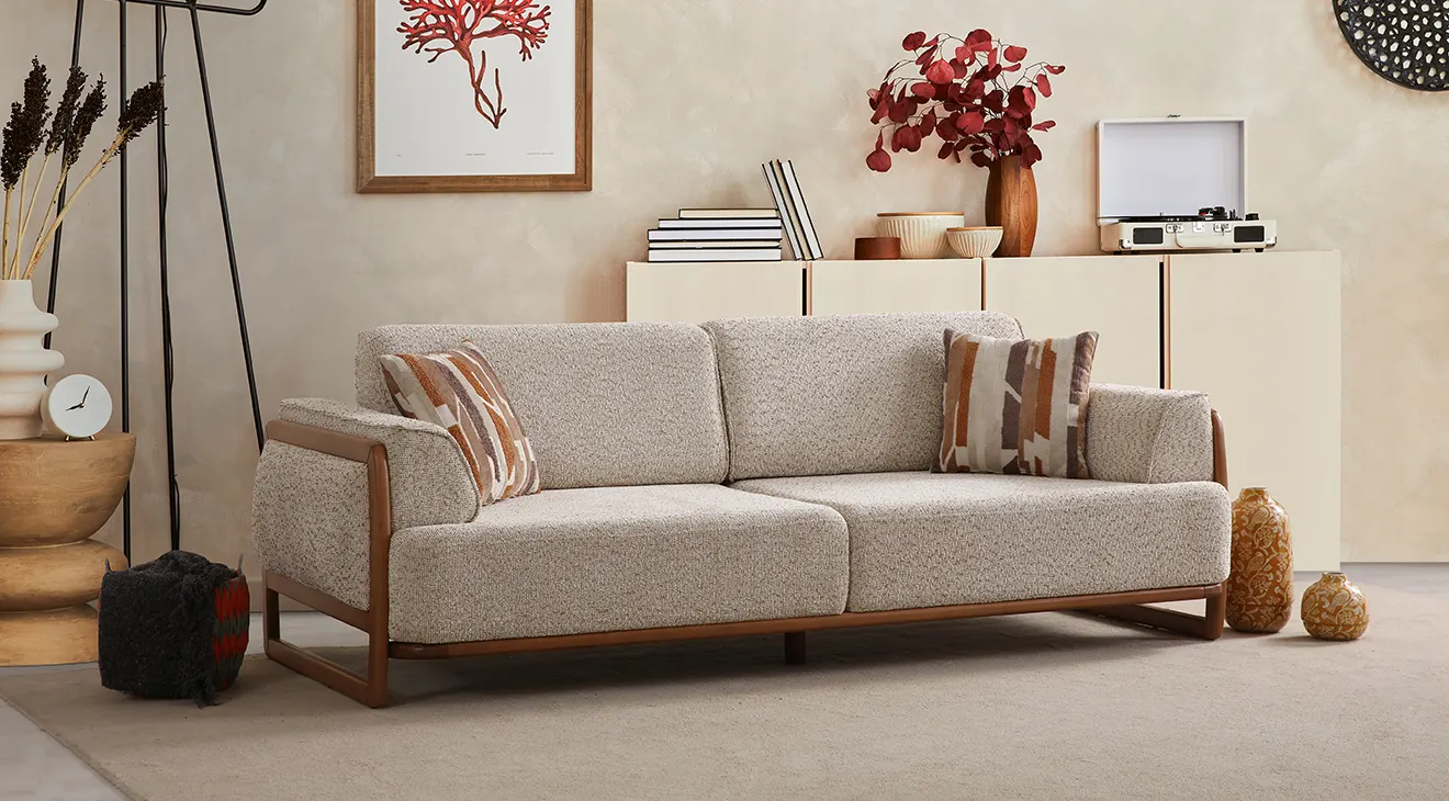 Poyraz Ahşap Ayaklı Yataklı Koltuk Takımı
