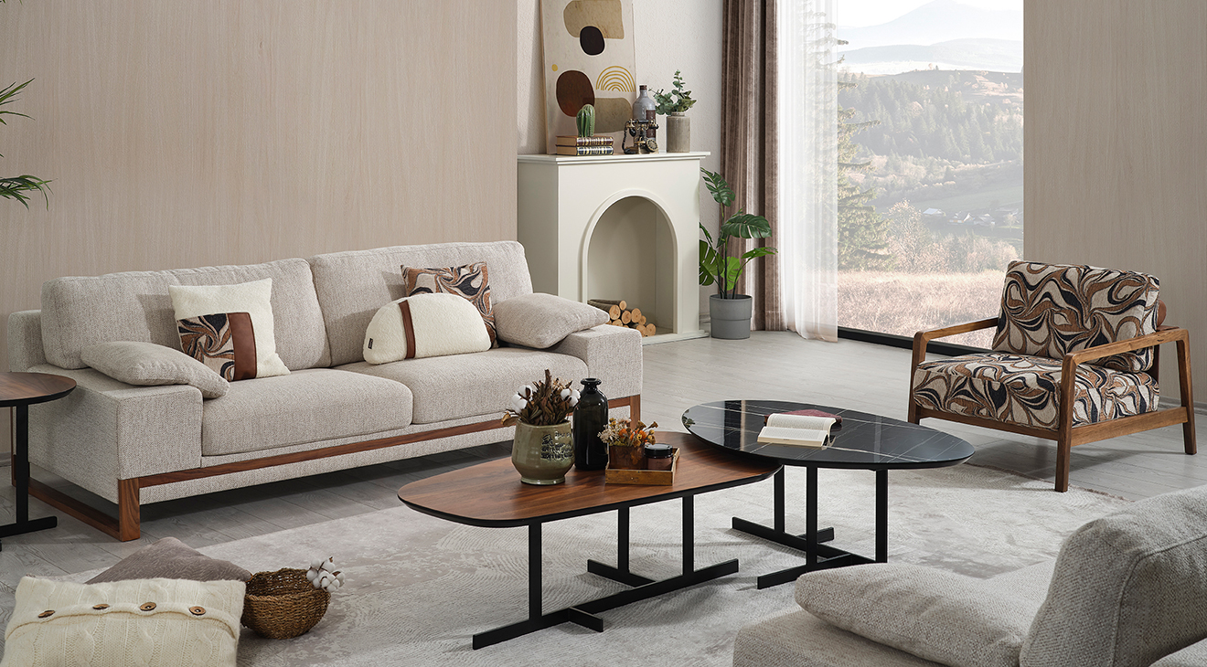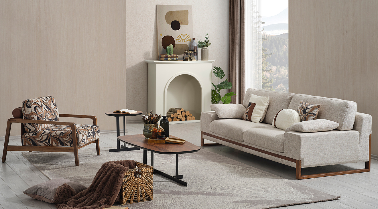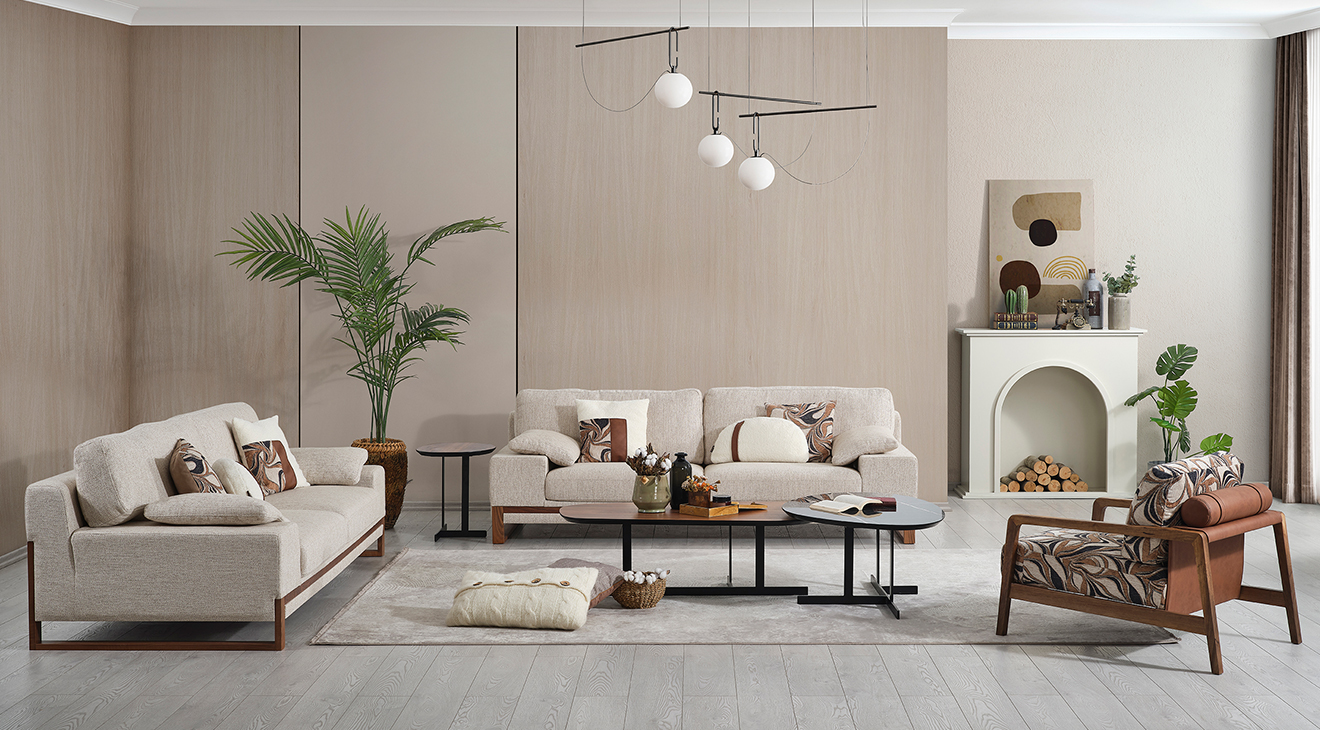 İnegöl mobilyasının özel üretimi olan Prime Koltuk Takımı, ceviz rengi ahşap ayakları ve krem renkli kanepeleriyle modern bir görünüm sunuyor. Mobilyamevime'de bulunan bu şık ve konforlu takımı hemen keşfedin!