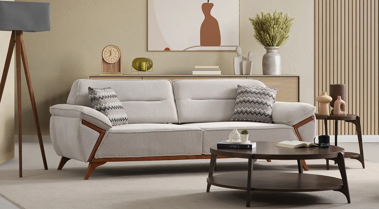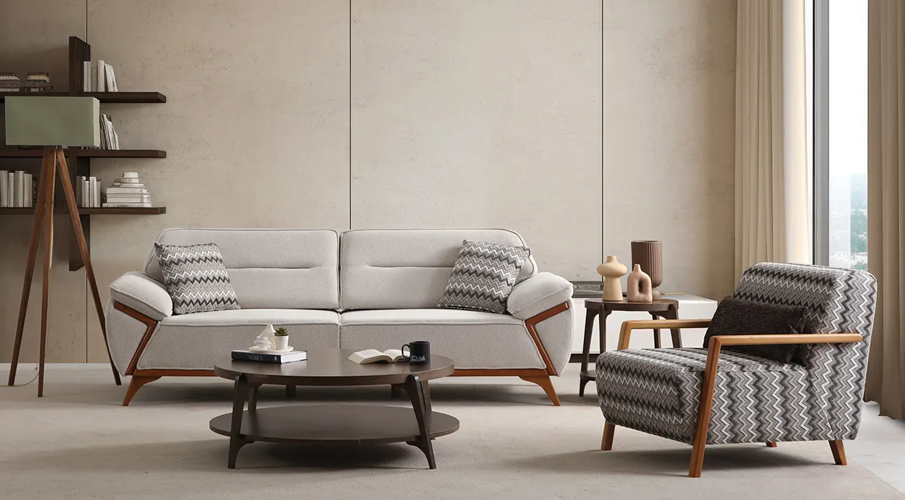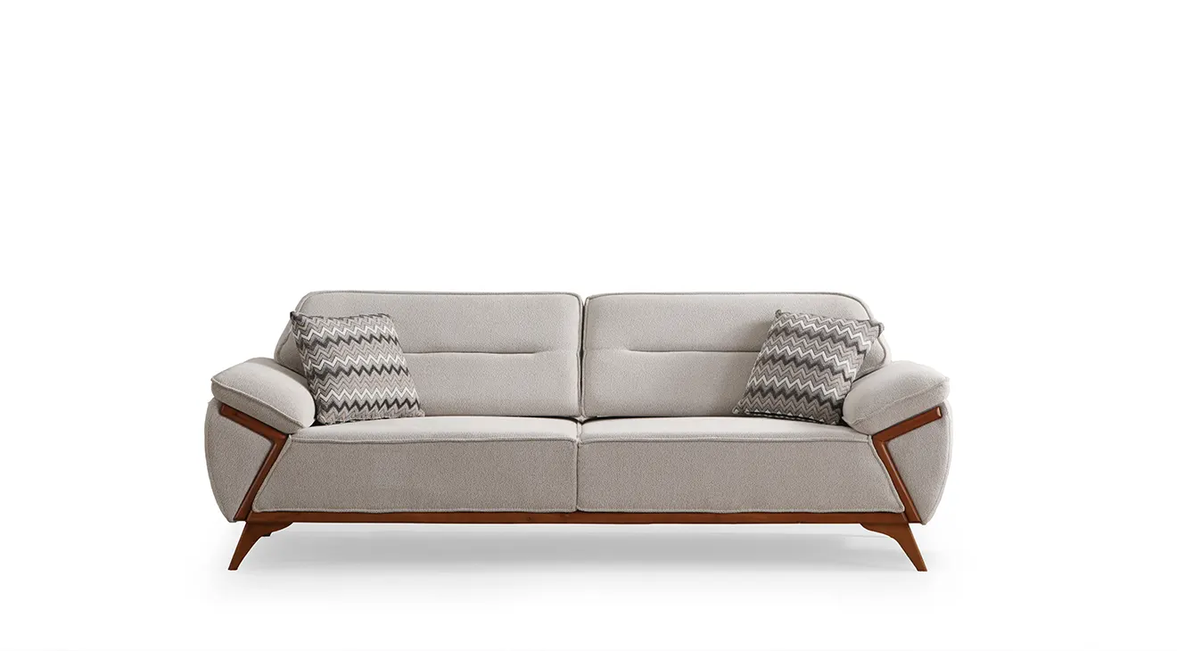 Rio Yataklı Koltuk Takımı, açık gri döşemesi ve ahşap detaylarıyla salonunuza ferah, modern bir hava katar. Kol bölümündeki ahşap şerit ve zarif hatlı ayak yapısı tasarıma sıcak bir karakter kazandırırken, geniş oturum alanı ve destekleyici sırt minderleri günlük kullanımda konforu artırır. Yatak olabilen mekanizması sayesinde misafir ağırlarken pratik bir çözüme dönüşür; düzenli formu ve güçlü duruşu ile hem küçük hem de büyük yaşam alanlarında dengeli bir görünüm sağlar. Desenli kırlent ve berjer uyumuyla takıma hareket katarak dekoru tamamlar.