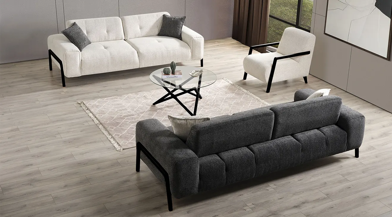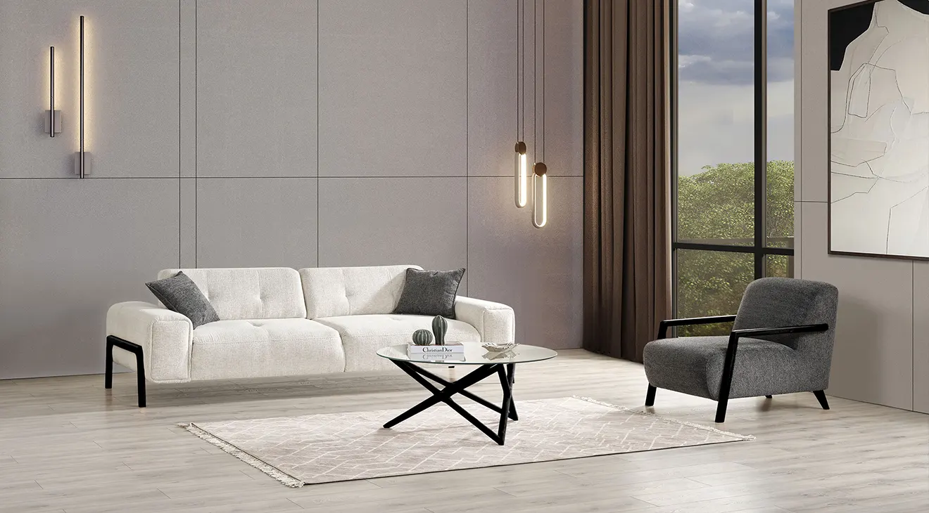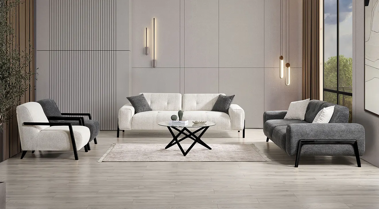 Rolex Yataklı Modern Koltuk Takımı, iki tonlu döşemesi ve siyah metal çerçeve detaylarıyla salona net, modern bir çizgi taşır. Geniş oturum minderleri ve yumuşak sırt yapısı günlük kullanımda konfor sunarken, üçlü koltuktaki yatak mekanizması misafirler için pratik bir uyku alanına dönüşür. Dayanıklı kumaş (leke tutmaya dirençli yapı) ve sağlam iskelet uzun ömürlü kullanım sağlar; yüksek yoğunluklu sünger ise formunu koruyan destekli bir oturuş verir. İnce ayak tasarımı zemine hafif bir görünüm kazandırır, koltuk–berjer kombinasyonu farklı renk yastıklarla kolayca kişiselleştirilebilir. Zamansız, düzenli ve ferah bir salon isteyenler için güvenli bir seçimdir.