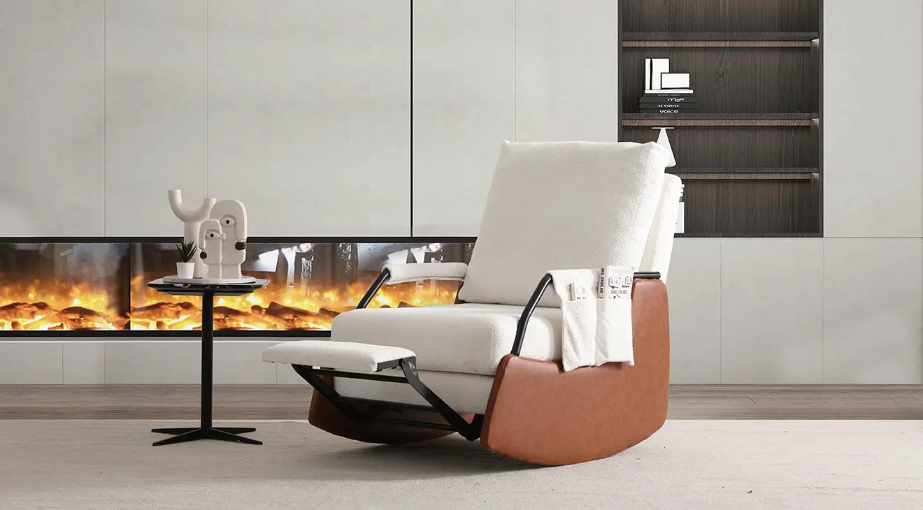 Rosenya Sallanır Berjer; modern, ayak uzatmalı recliner mekanizması, yüksek sırt ve destekleyici kolçaklarıyla gerçek bir “relax koltuk”. Yumuşak buklet döşeme, deri görünümlü yan paneller ve sağlam metal iskelet; salon, okuma köşesi ya da bebek/ebeveyn odası için şık bir çözüm. Sallanma + geri yaslanma fonksiyonu, yan cepli pratik tasarım ve zamansız krem tonu ile konforu ve tarzı bir araya getirir.