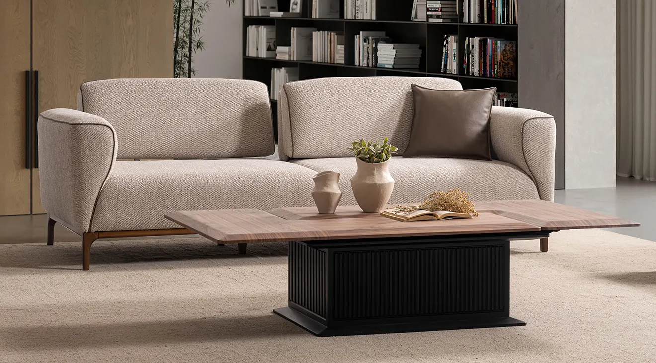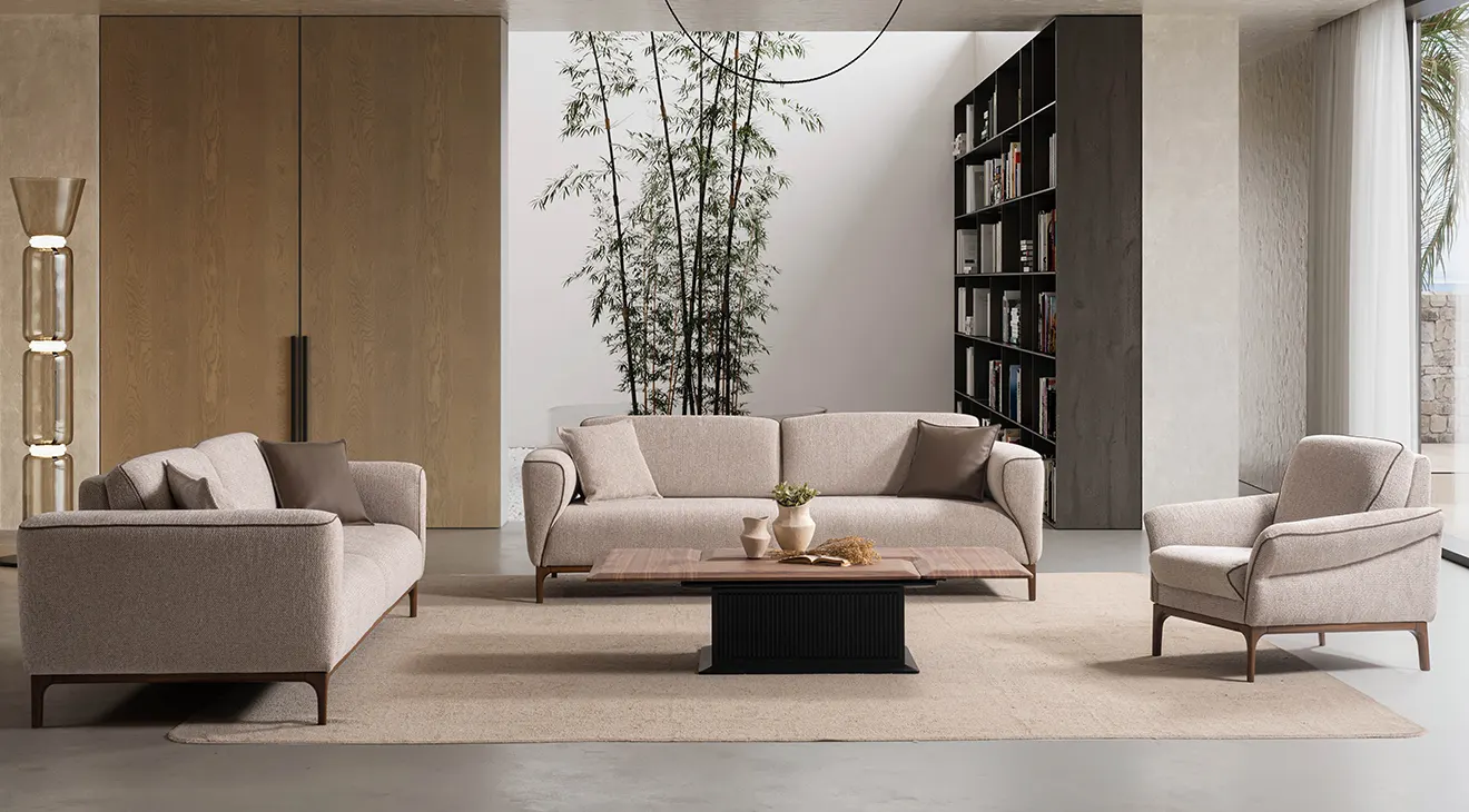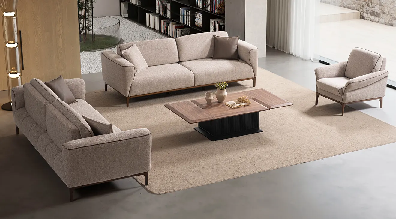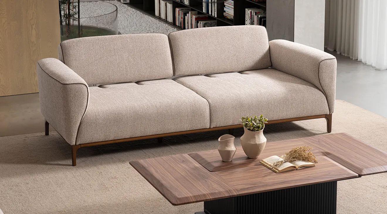 Smart Yataklı Koltuk Takımı; şık formu, rahat oturumu ve ahşap ayaklarıyla salonunuza sıcaklık katar. Kolay yatak mekanizmasıyla misafir için ideal.