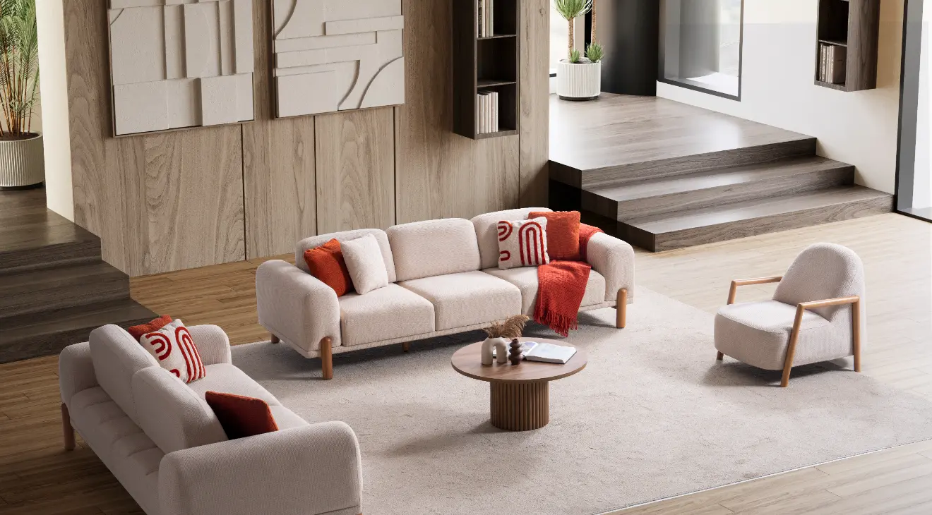 Sofa Ahşap Ayaklı Modern Koltuk Takımı