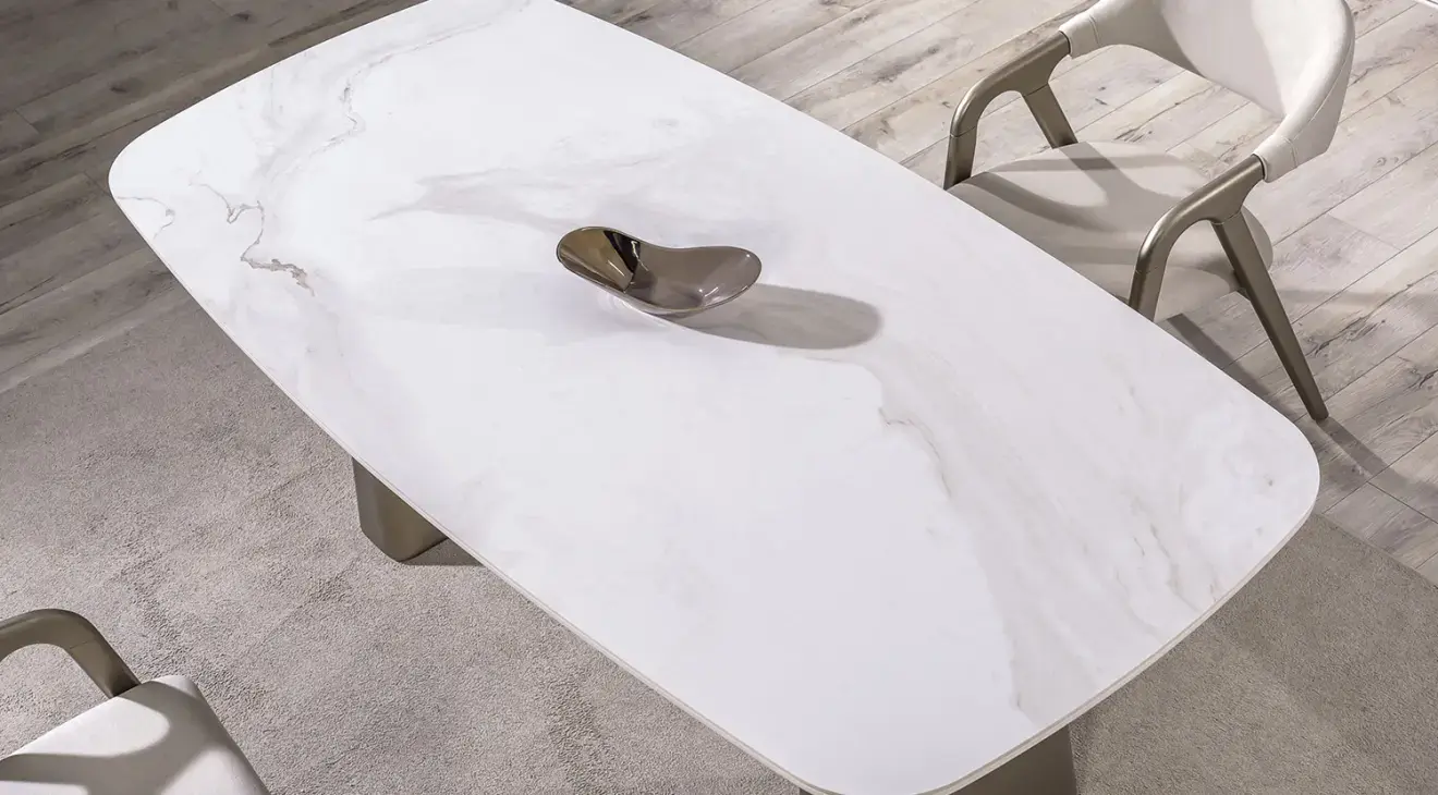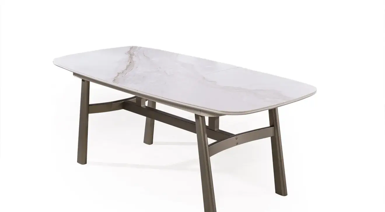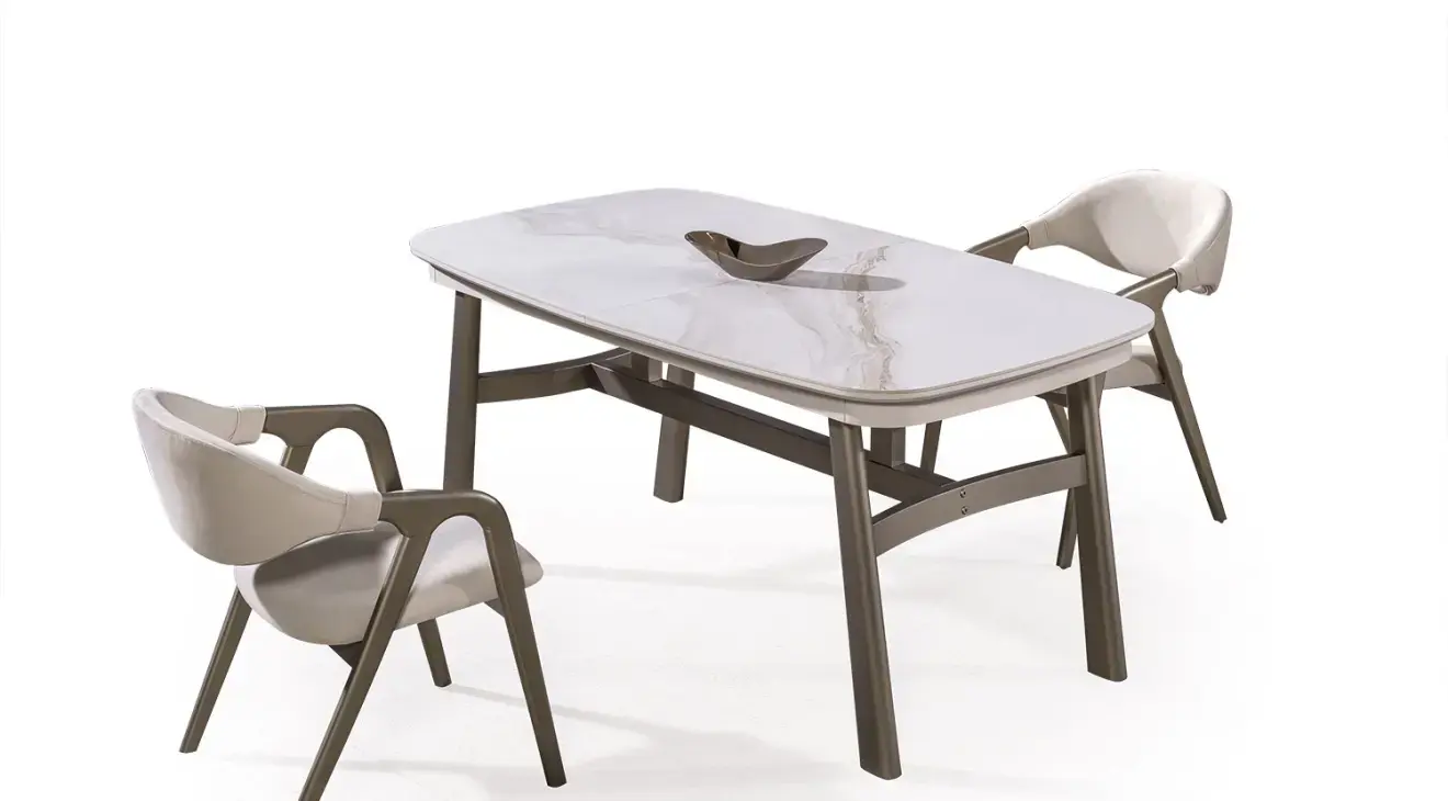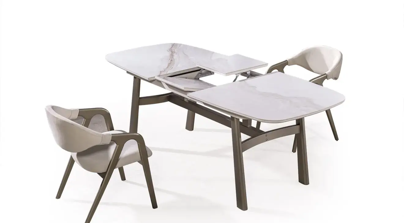 Sofia Modern Yemek Odası Takımı ile evinize zarafet katın. Aytaşı renk seramik açılır masası, şık konsolu ve 6 adet sandalyeden oluşur. MDF ve ahşap ayaklarla 1. sınıf kalite.