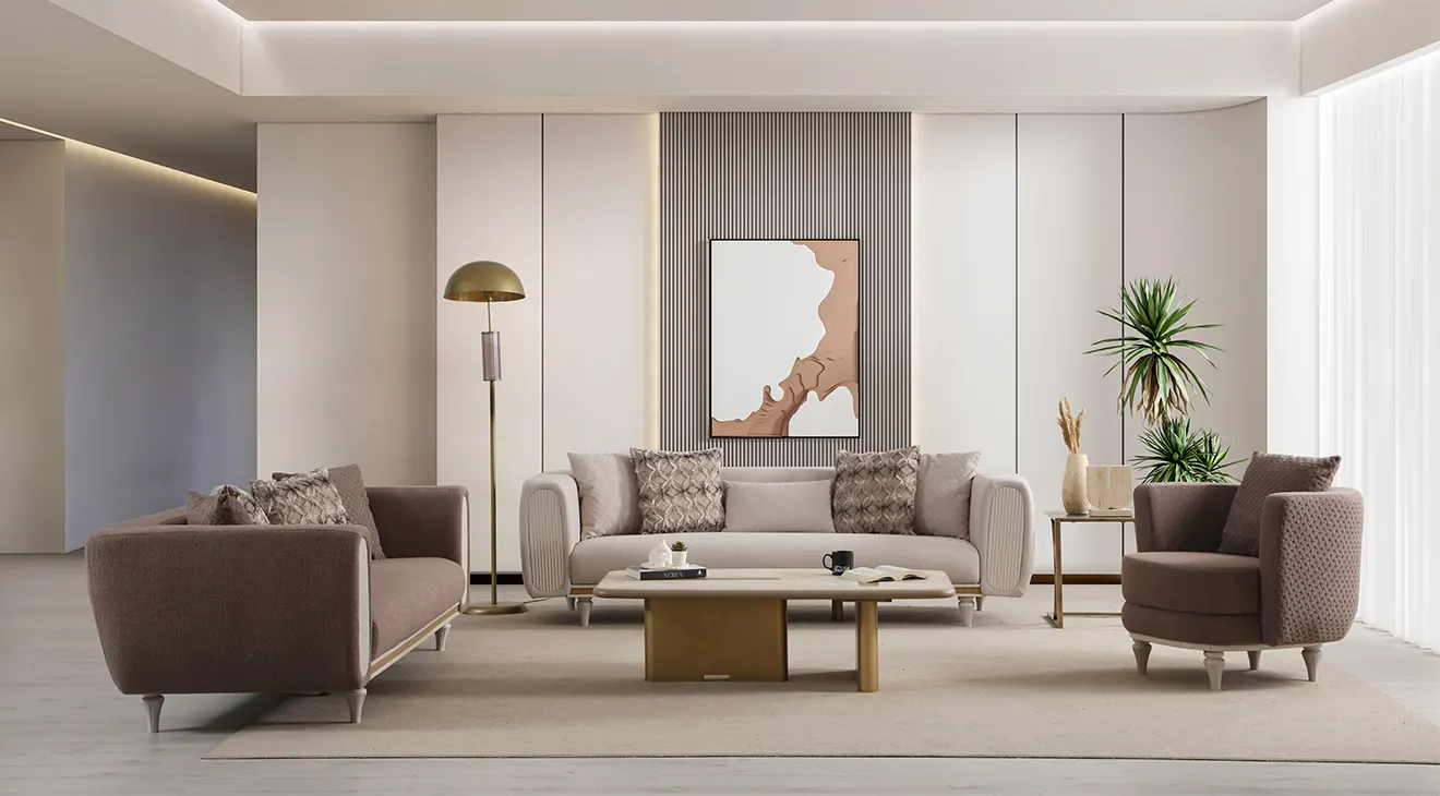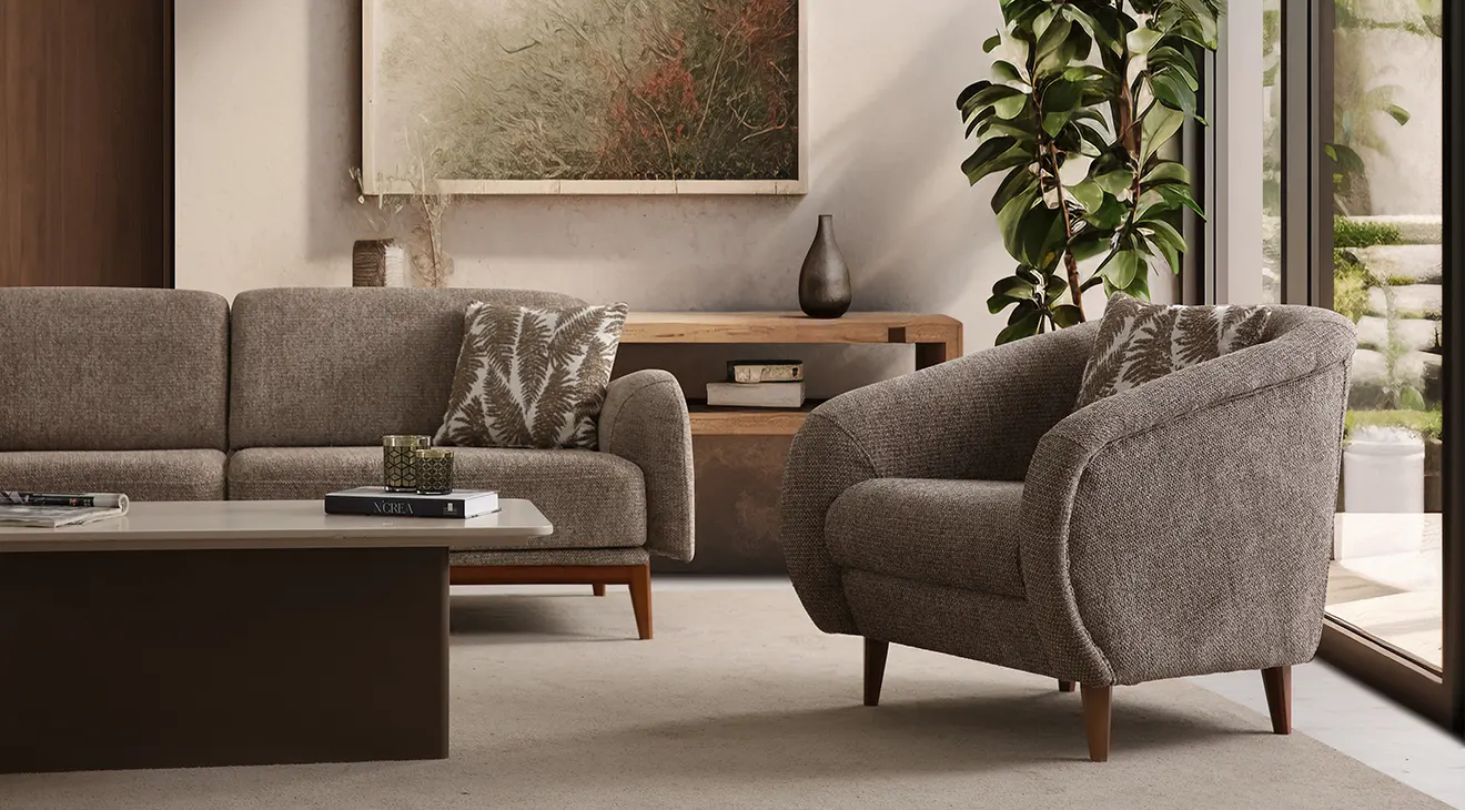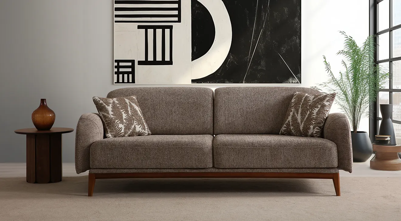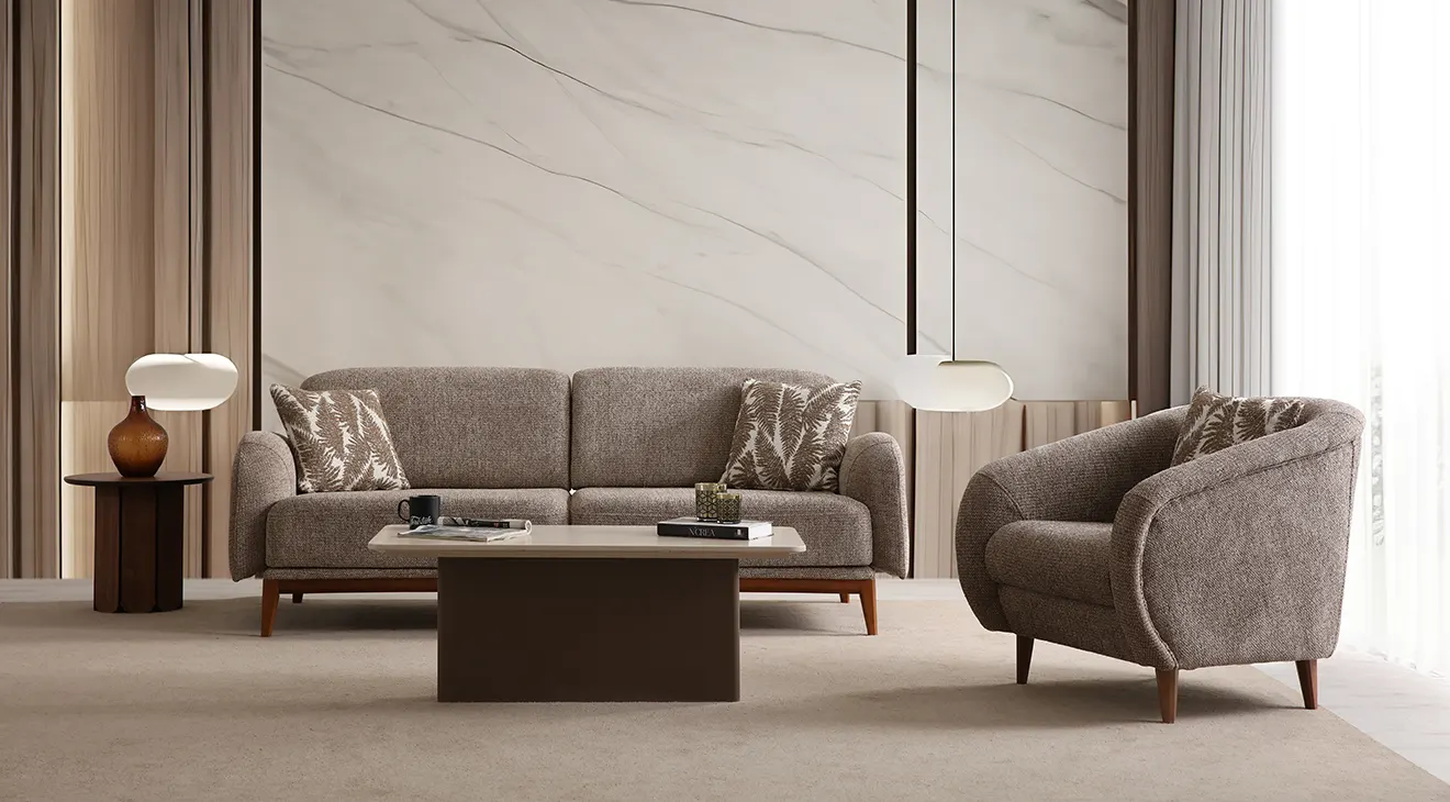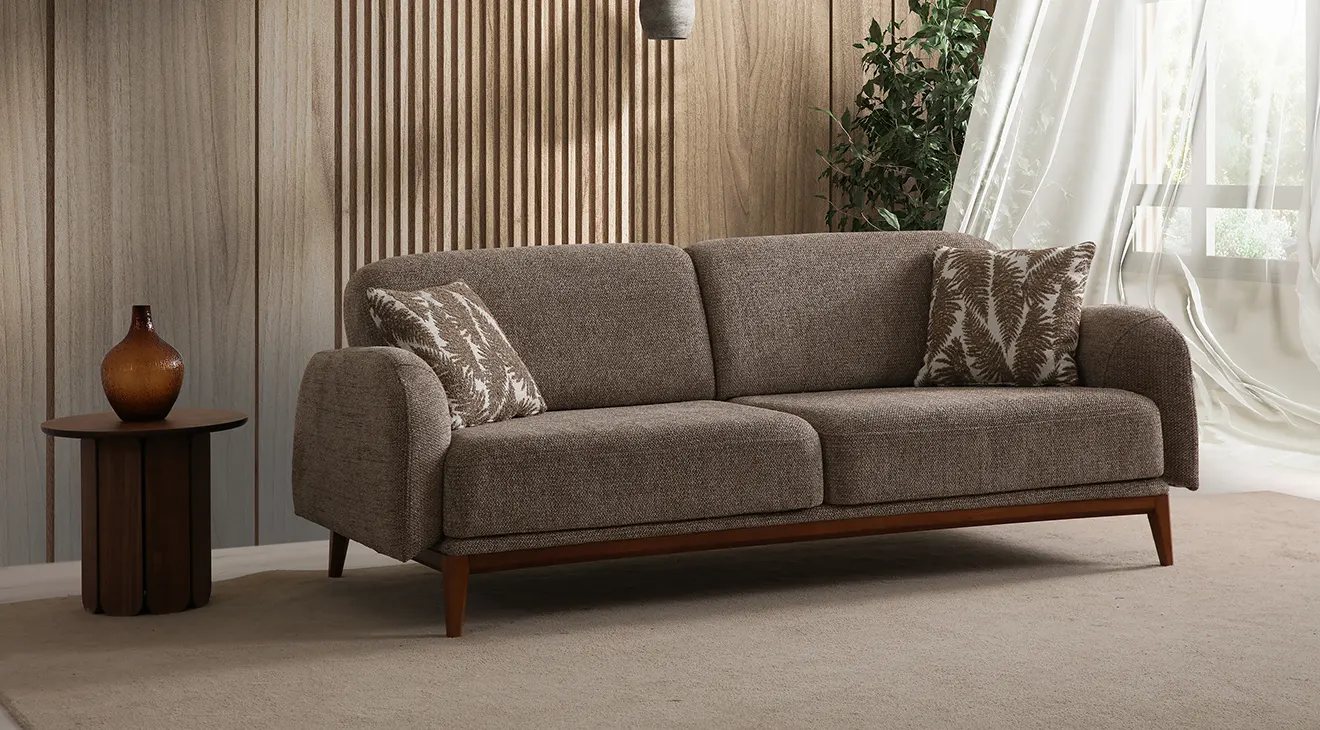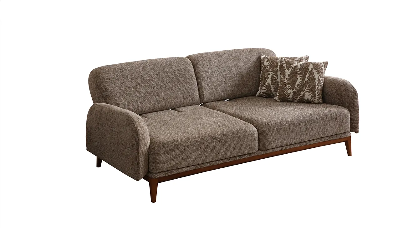 Tetra Ahşap Ayaklı Yataklı Koltuk Takımı, sıcak tonlu dokulu kumaşı ve zarif ahşap ayaklarıyla salona doğal bir modernlik katar. Rahat oturumu destekleyen dolgun minder yapısı, günlük kullanımı keyifli hale getirirken; pratik mekanizması sayesinde tek hamlede yatağa dönüşerek misafir ağırlamayı kolaylaştırır. Yumuşak hatlı kolları ve dengeli formu, hem şık hem de uzun ömürlü bir kullanım sunar.